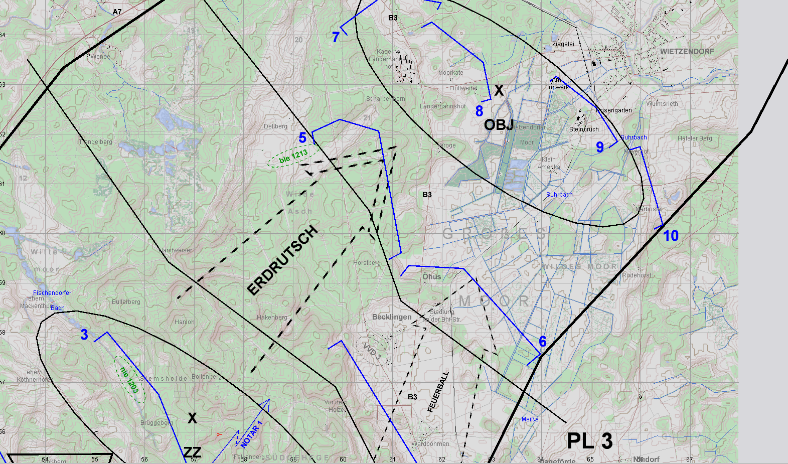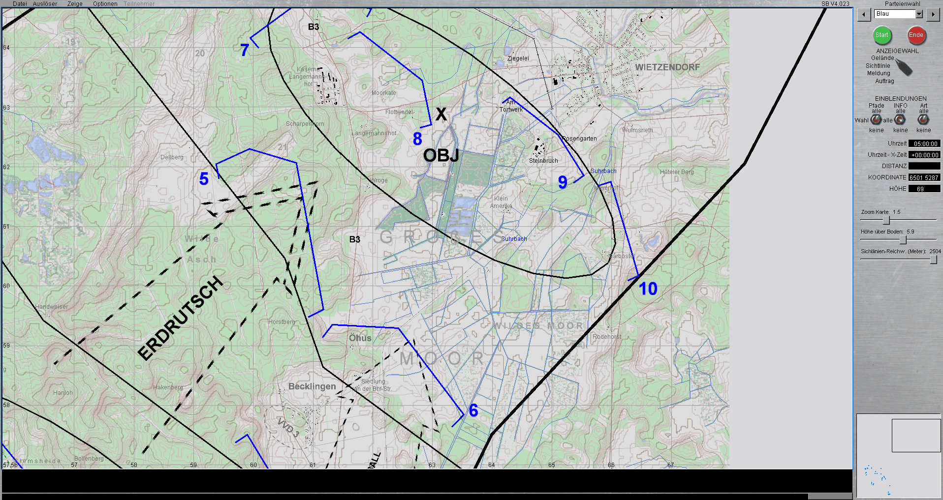 Nach nehmen des ZZ wird der Hauptstoß (ERDRUTSCH) auf die Mitte verlegt, sodass das PzGrenBtl hauptsächlich durch bewaldetes Gelände weiter bis zum OBJEKT vor stößt.