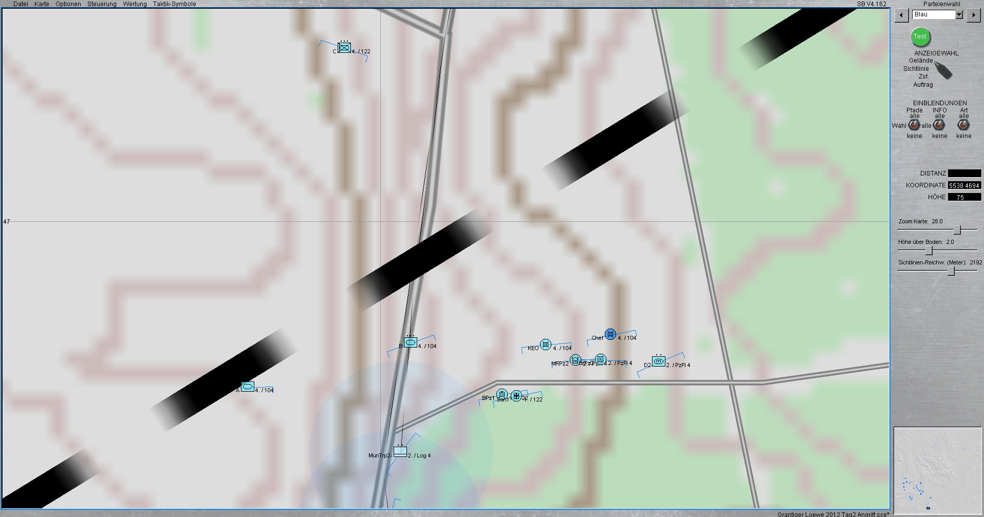 Am ersten Tag hatte das PzGrenBtl 112 angegriffen (hier jetzt in dem Fall ein verst. MechInf Btl BMP) und muss nun am 2. Tag mit einer verst. Kompanie verzögern.