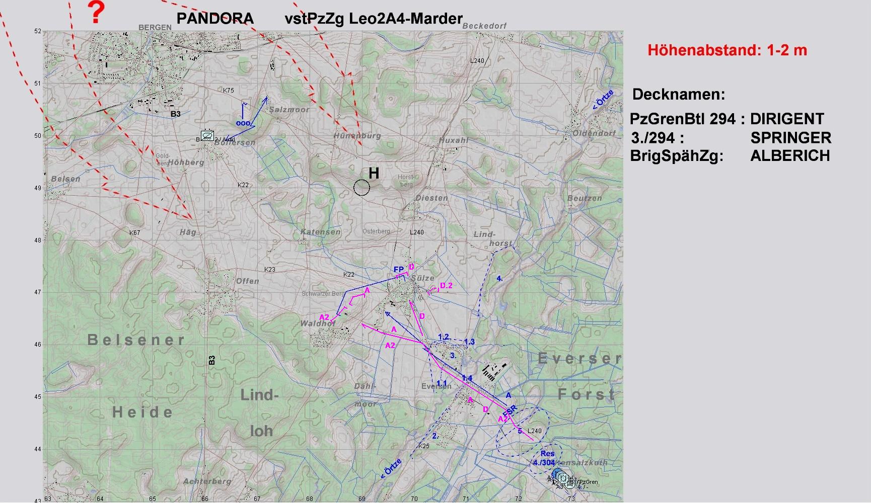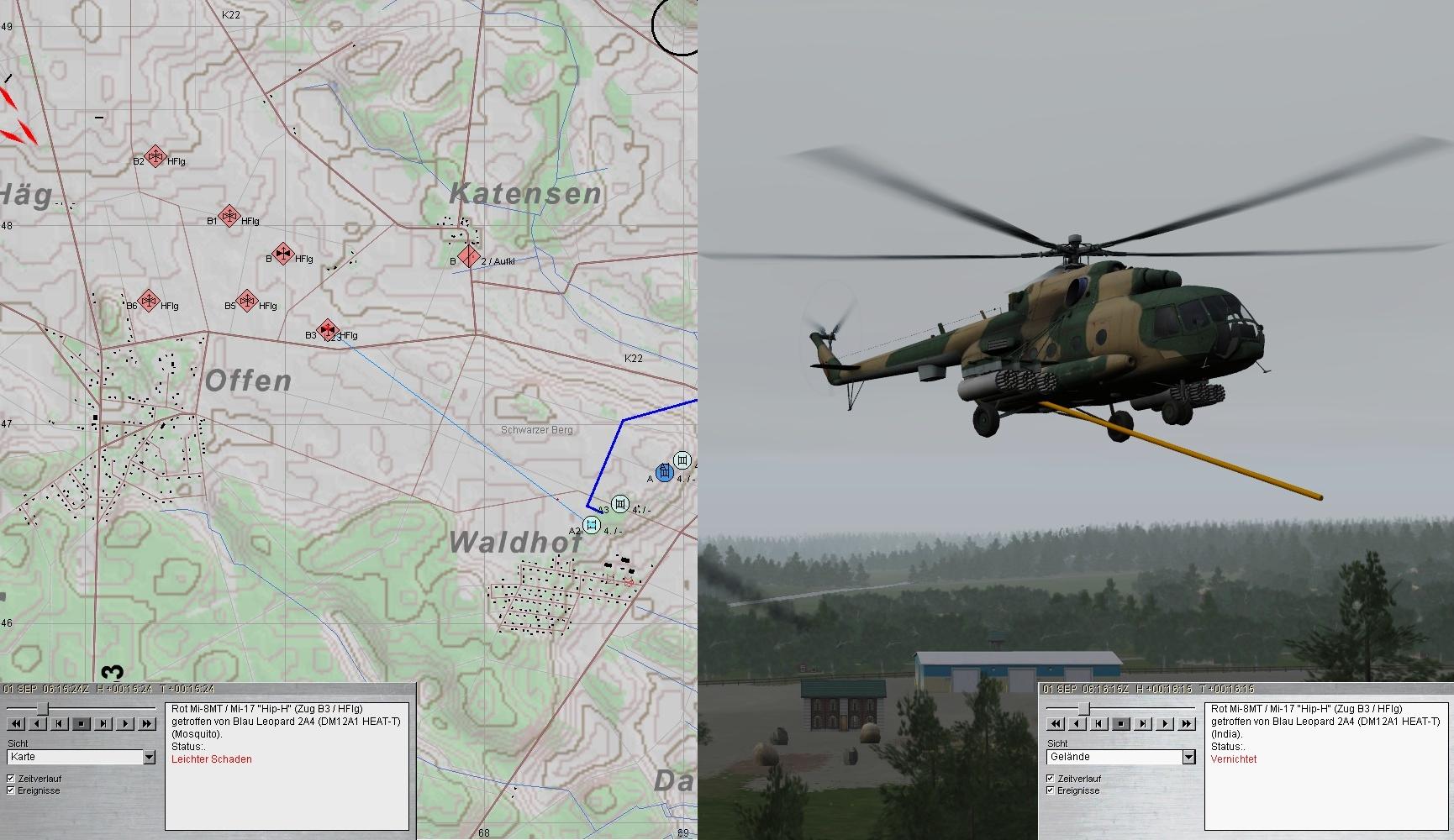Nachdem A und D die geplanten Stellungen erreichten, wurde ein weiterer SpähTrp erkannt, aber nicht bekämpft. Da wurden Feindhubschrauber gemeldet.