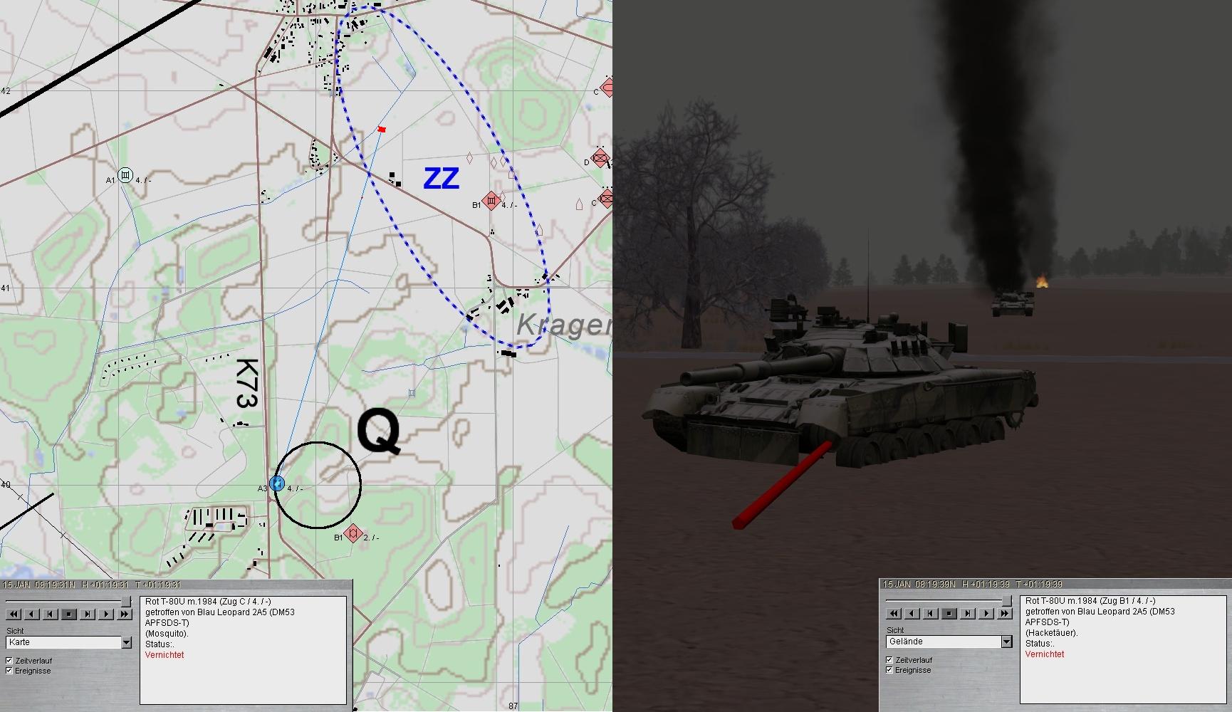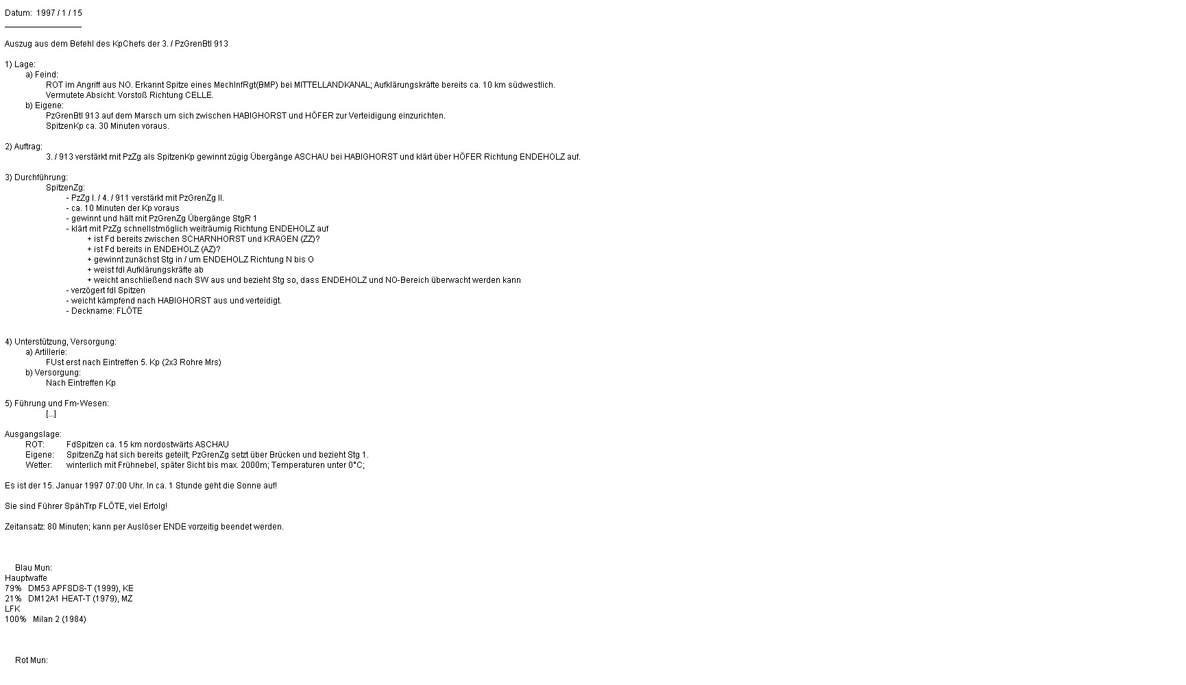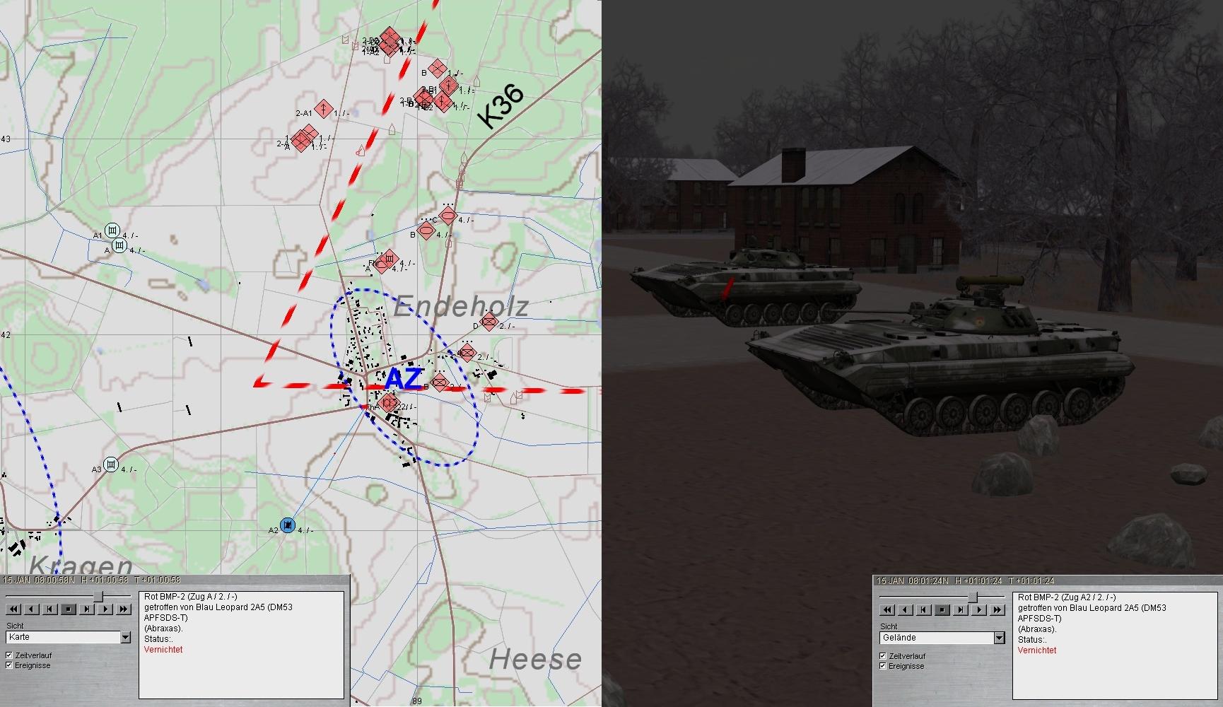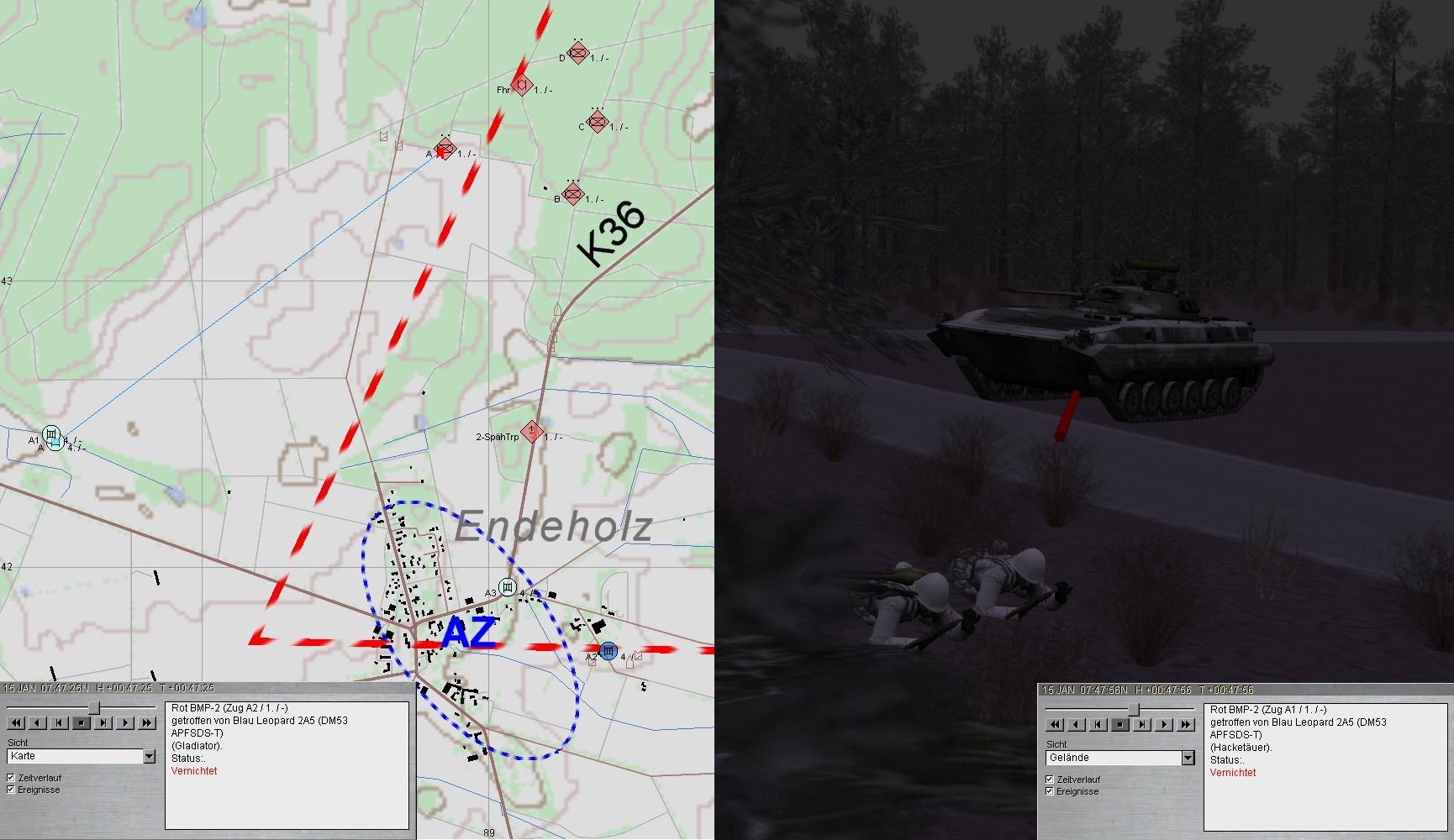 Nun kam es dicke: eine weitere BMP-Kp Südrand ENDEHOLZ und eine T-80-Kp hart nördlich der Ortschaft.