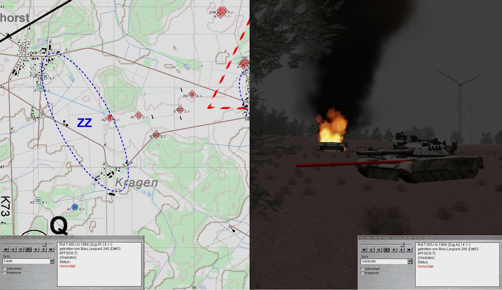 Nach einiger Zeit näherte sich feindliche GefAufklärung vor A3 auf der K36. Auch diese wurde vernichtet: