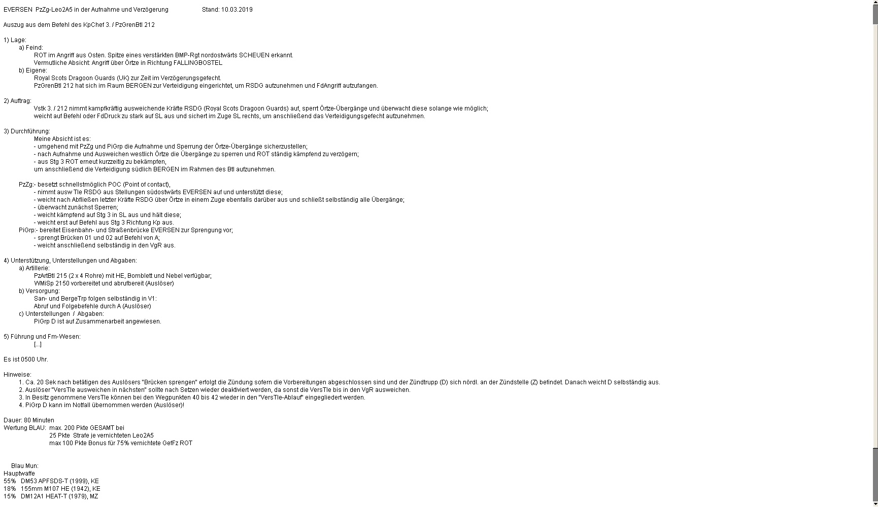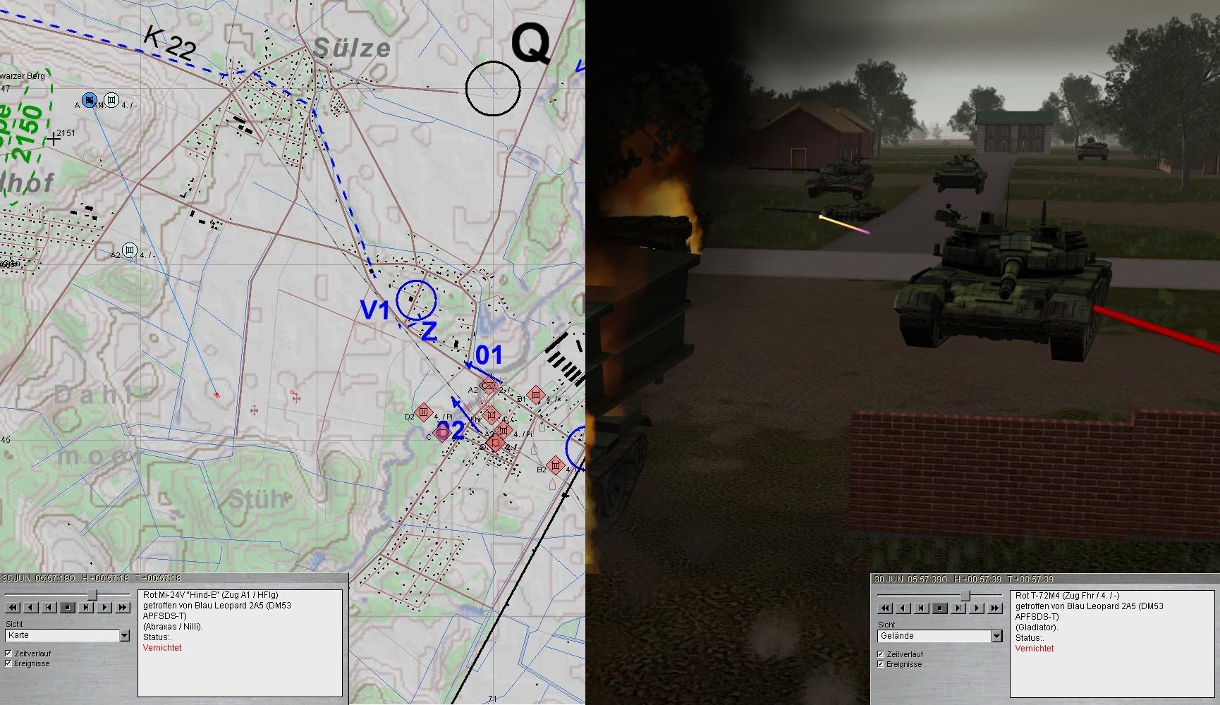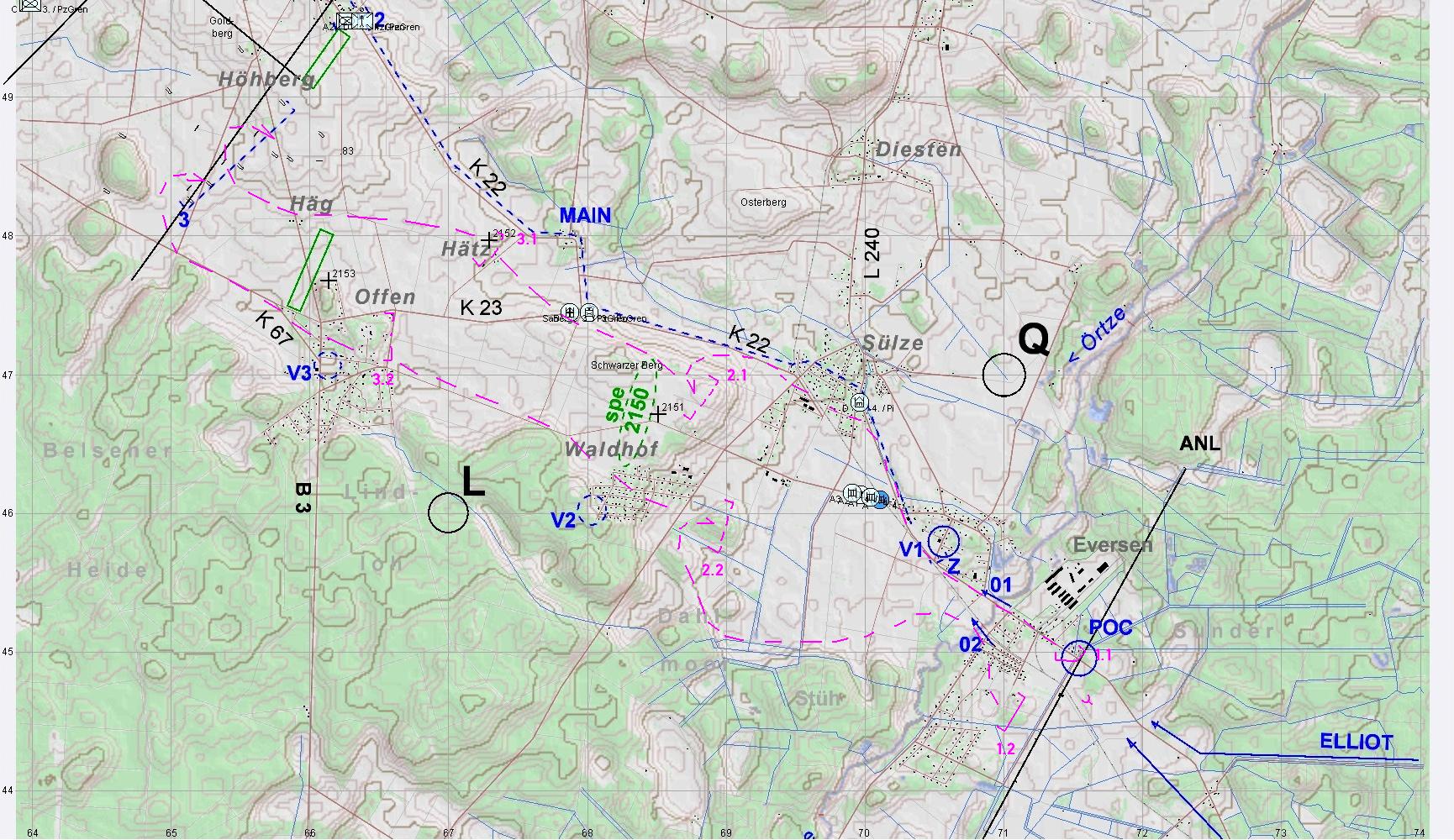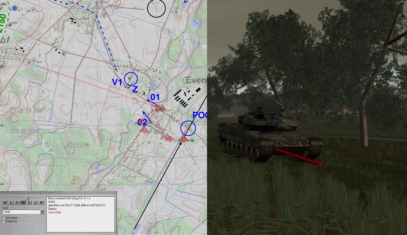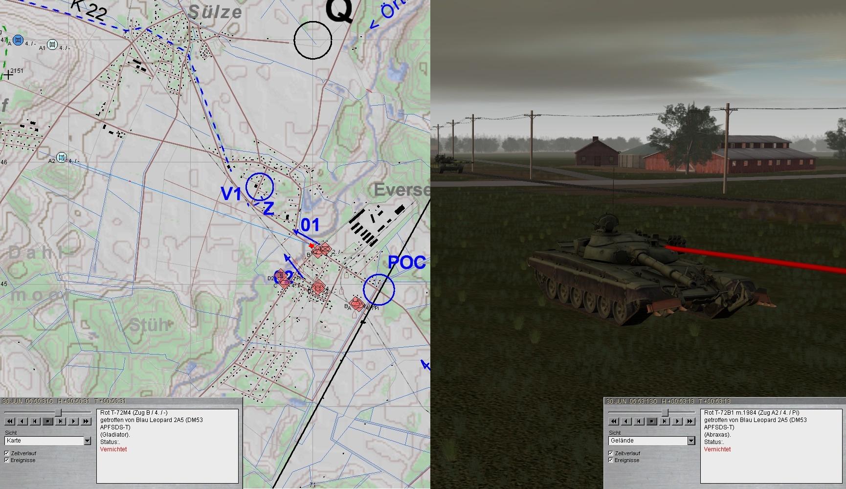 Leider konnte nördlich EVERSEN ein BRDM-2 bis zur Brücke 01 vordringen und erst unter Verlusten des dortigen PiTrp vernichtet werden. Das sollte sich rächen!