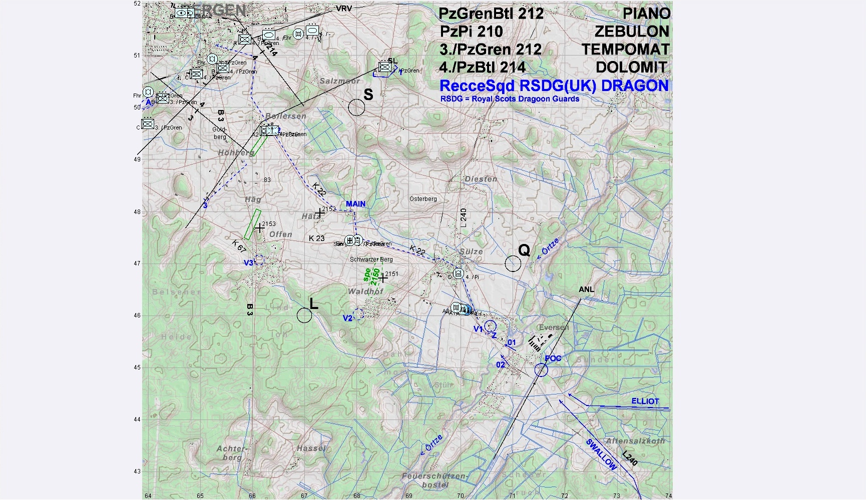 A-Zug erreichte planmäßig die Aufnahmestellungen. Während erste Kräfte der RSDG Verbindung aufnahmen, wurden fdl SpähTrps erkannt und das Feuer eröffnet.
