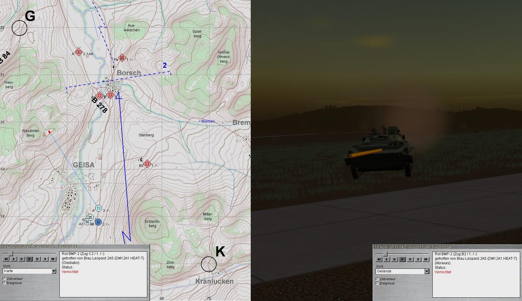 Nun erkannte A1 eine nachfolgende PzKp mit BMP-Verstärkung. Im Feuerkampf blieb der Feind verlustreich liegen: