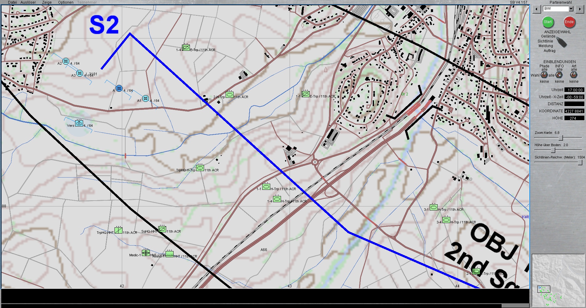 BLAU sind wir (BW / deutsch) mit Teilen der PzBrig 14 im Gefechtsstreifen der 2nd Sqn/11th ACR eingesetzt, (links 1st Sqn/11th ACR & rechts PzBrig 91)
