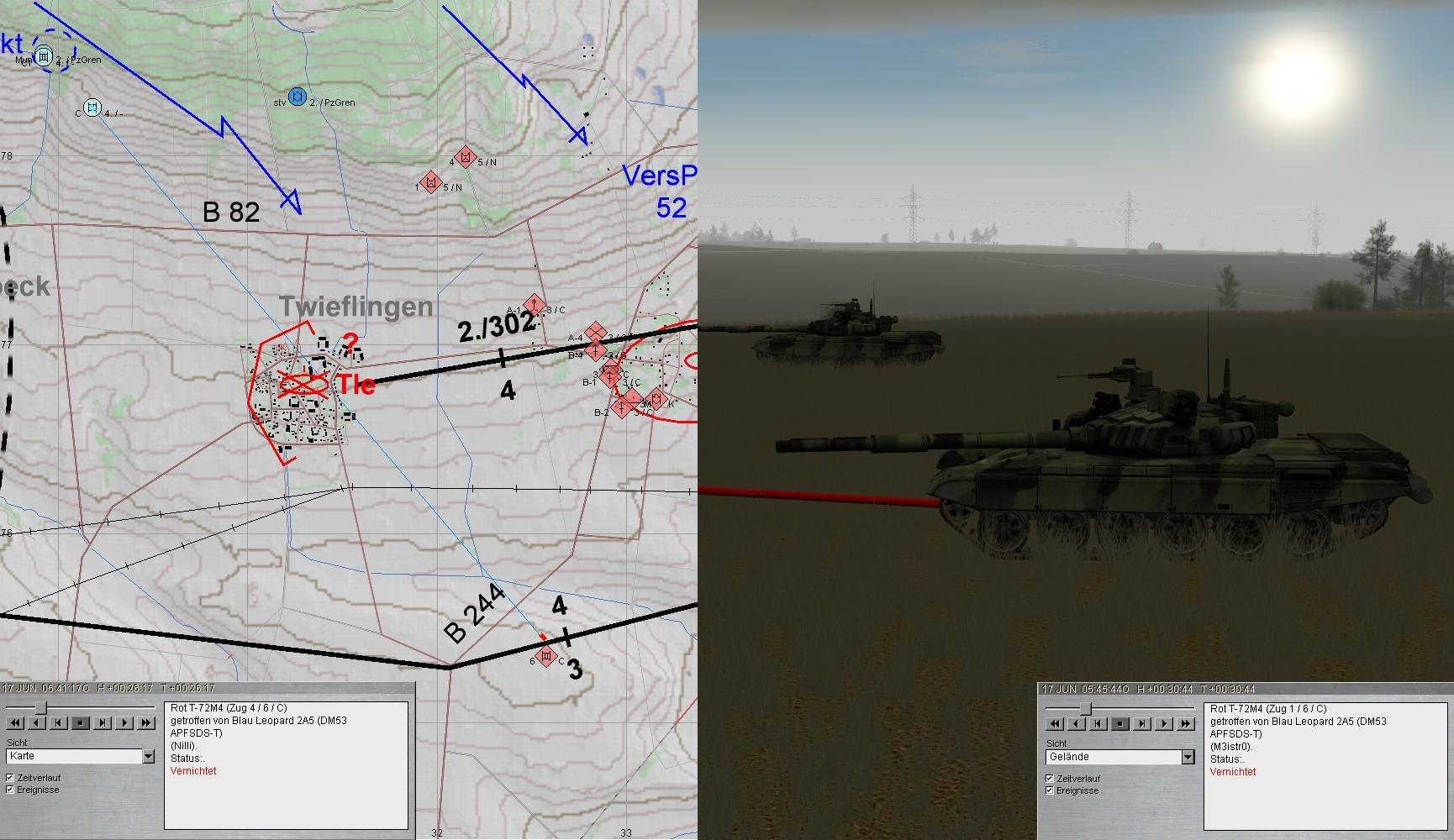 Dort wurden fdl MotSchtz und BMP in TWIEFLINGEN erkannt und bekämpft. Während der MunTrp am VersPkt 51 eintraf und C umschichtig versorgte wurden FdPz südostwärts der Vergabelung der B 244 erkannt und vernichtet: