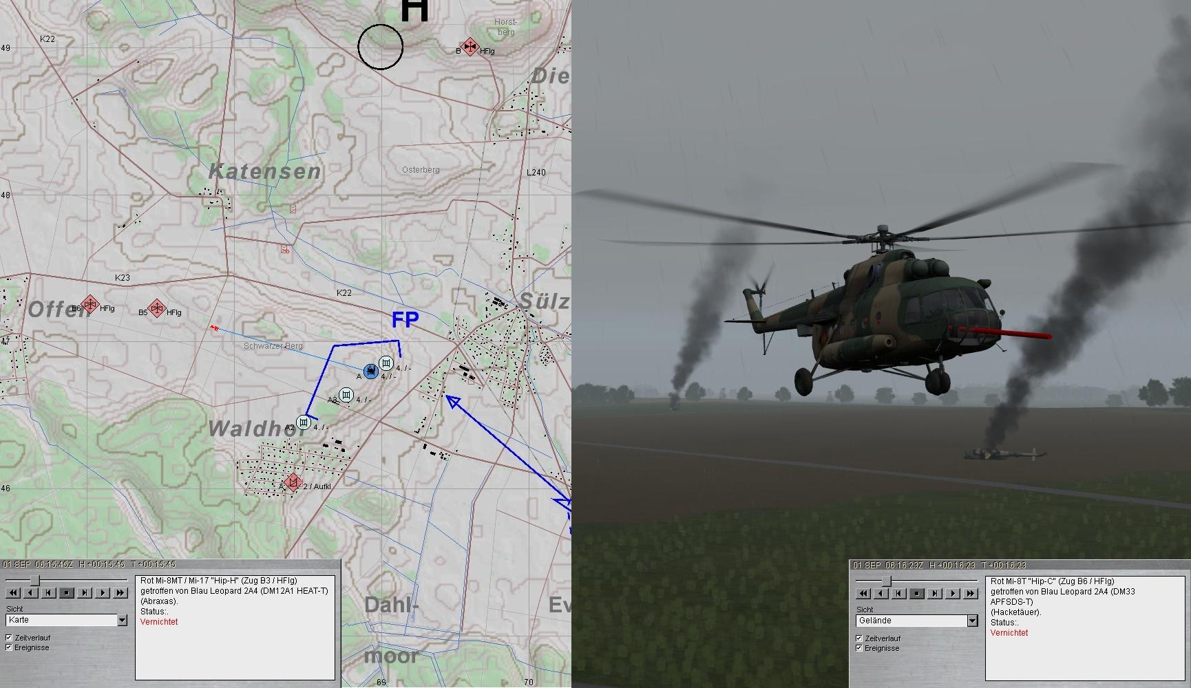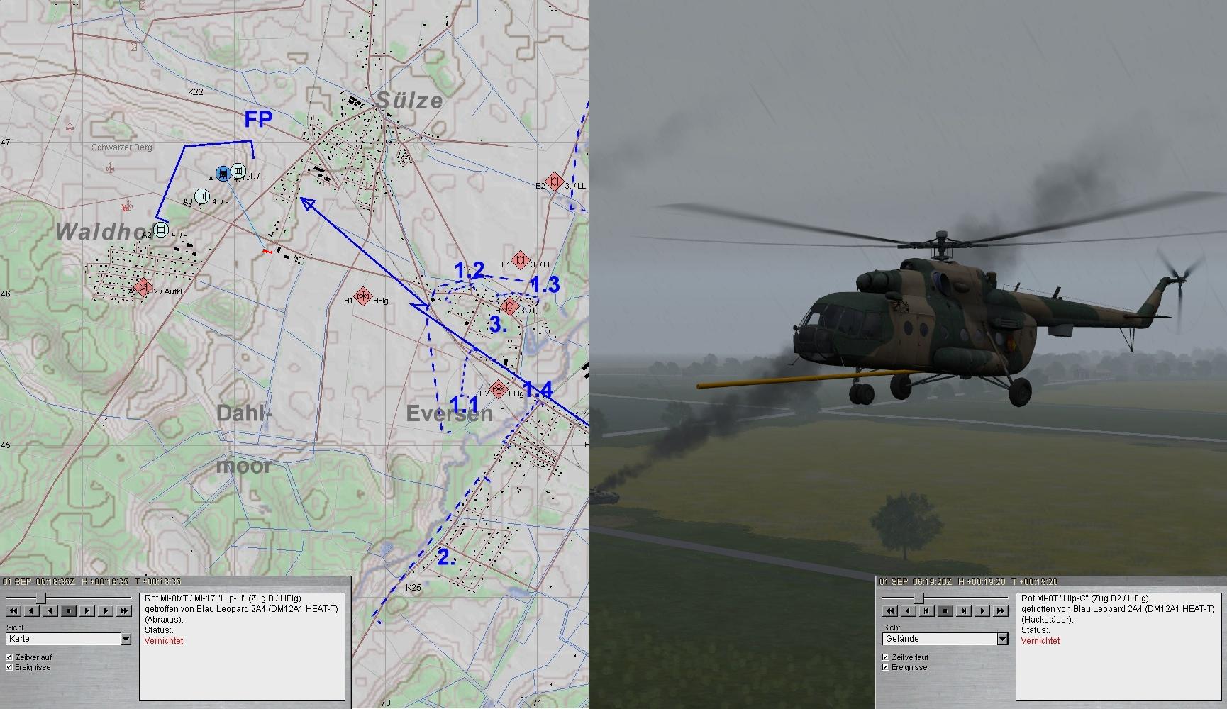 Sie konnten ihre BMD absetzen, die von der anrückenden PzGrenKp zum Glück vernichtet wurden. Die abfliegenden Helis wurden ein Opfer des A-Zuges: