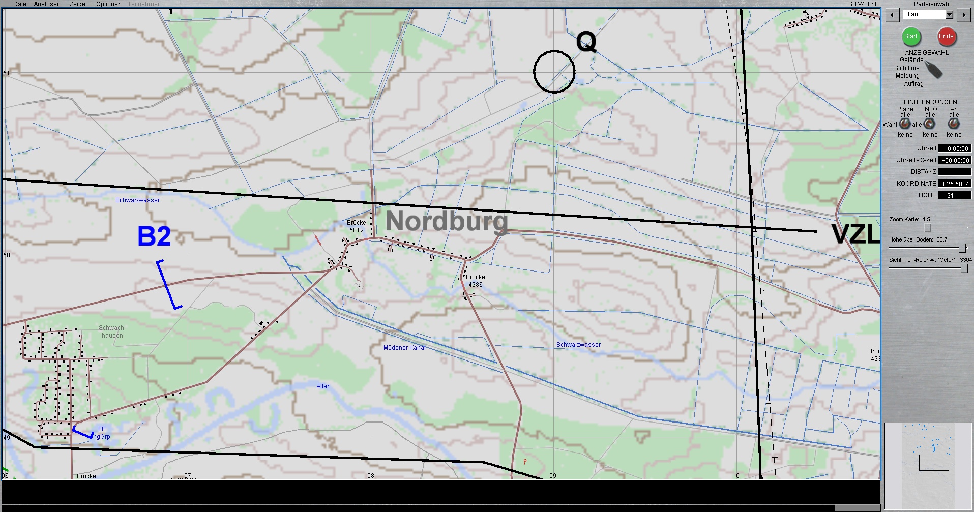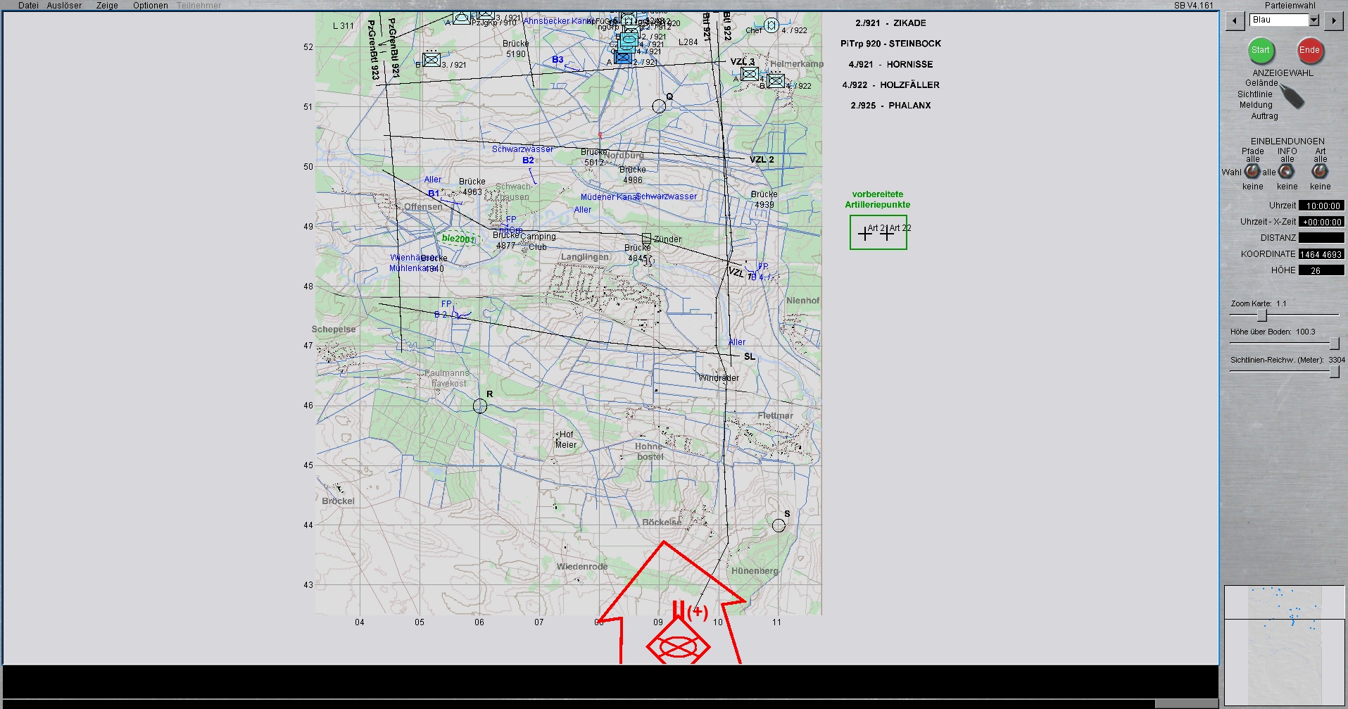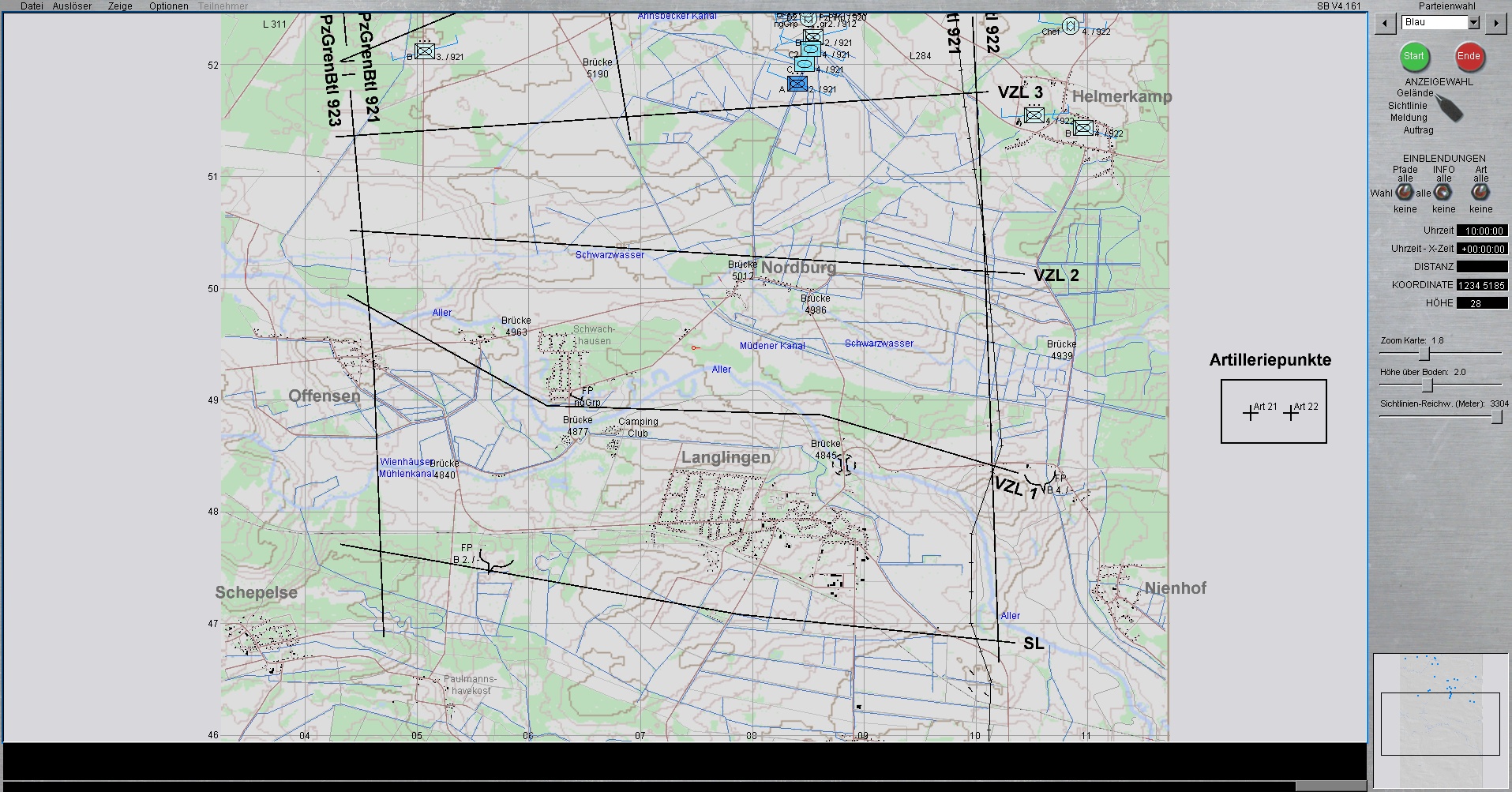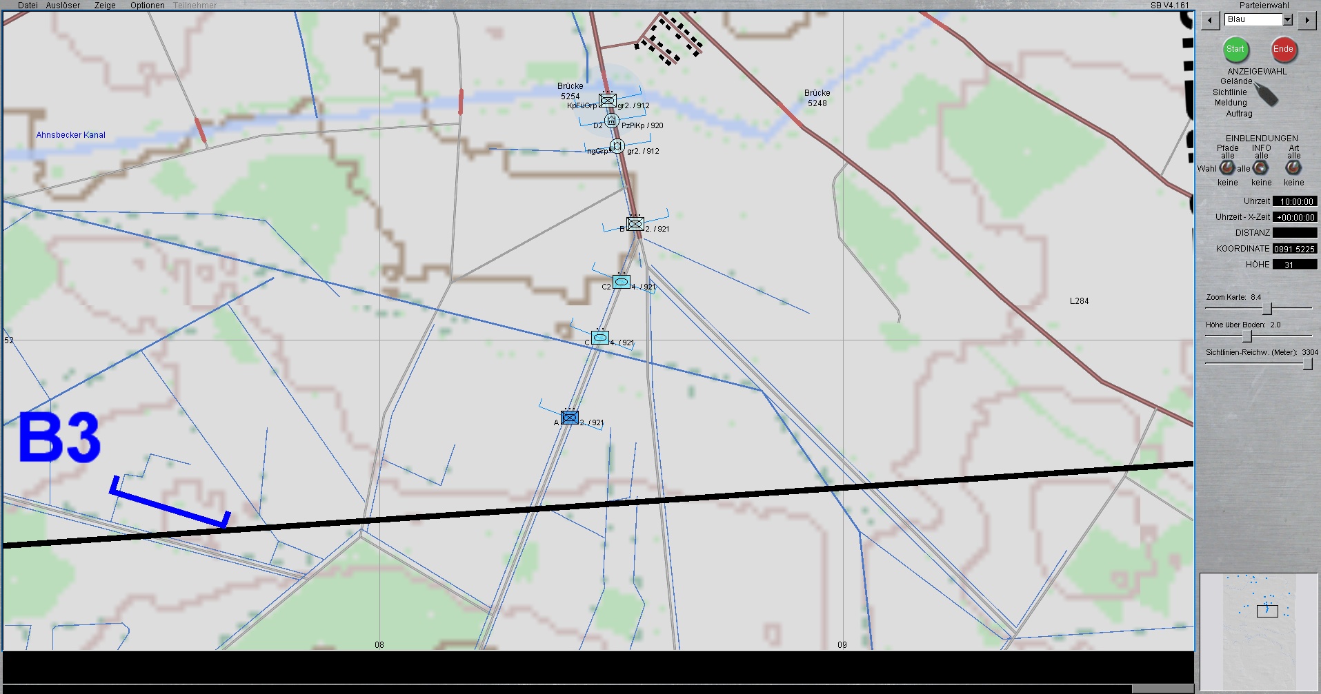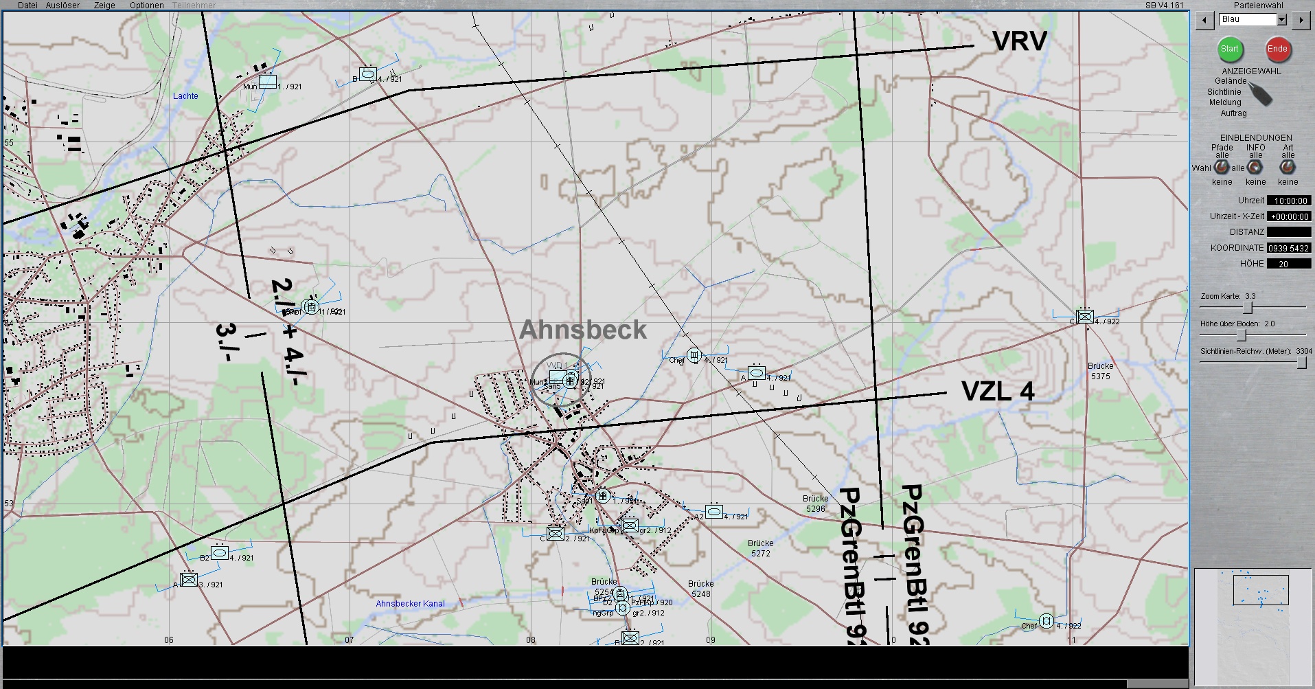 BLAU steht derzeitig mit PzGrenBtl 921 (Mitte) und mit linkem Nachbarn PzGrenBtl 922 auf Höhe AHNSBECK.