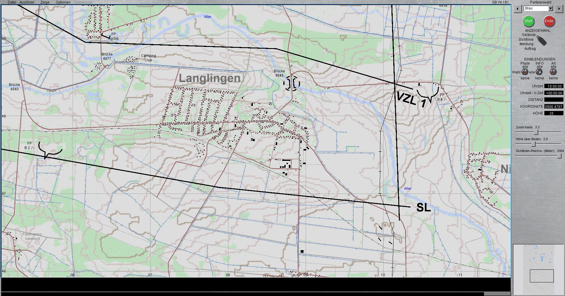Ein PiTrp wird die mittlere Brücke bei LANGLINGEN zur Sprengung vorbereiten (Dauert ca. 15min). Der Zünder wird nördlich der Brücke in der kleinen Häusergruppe bereitgestellt.