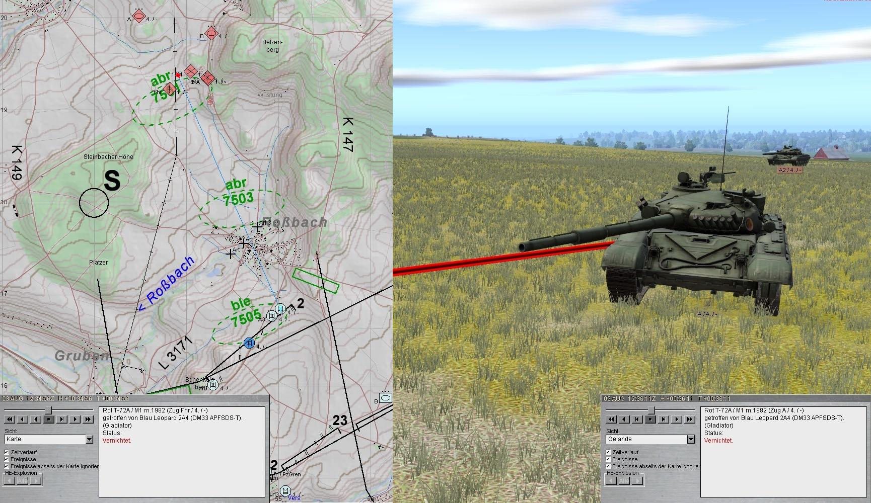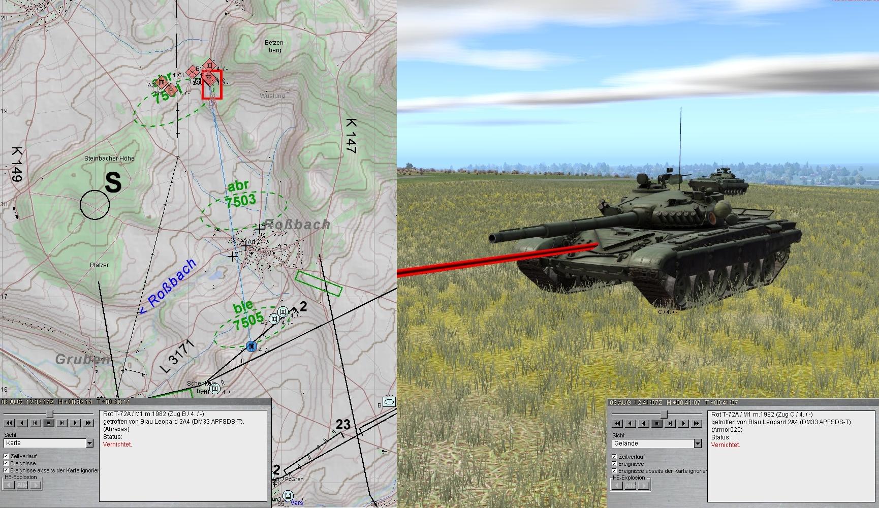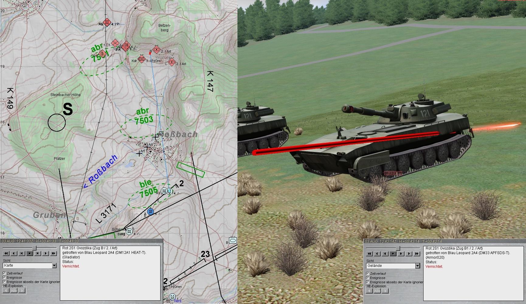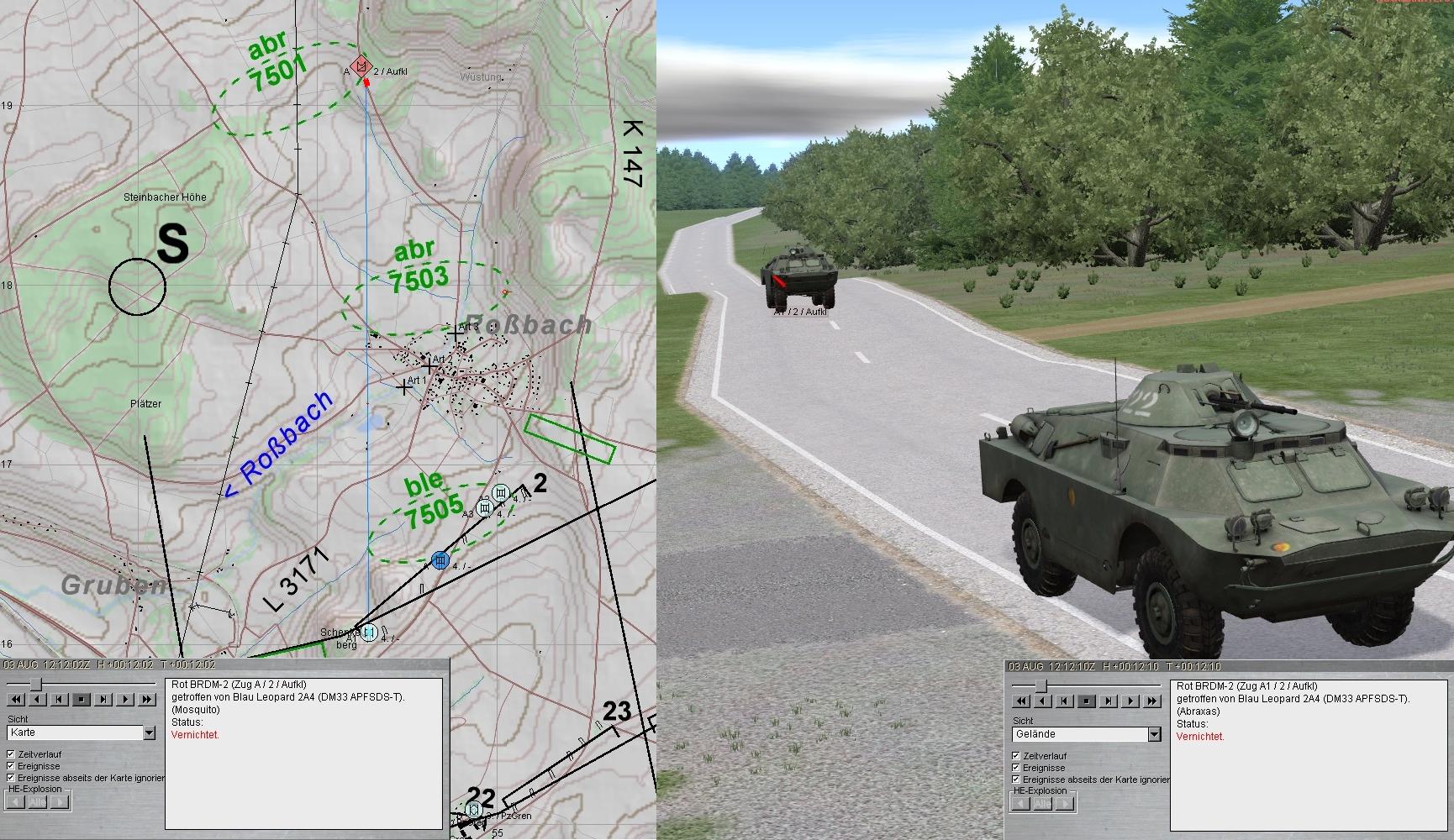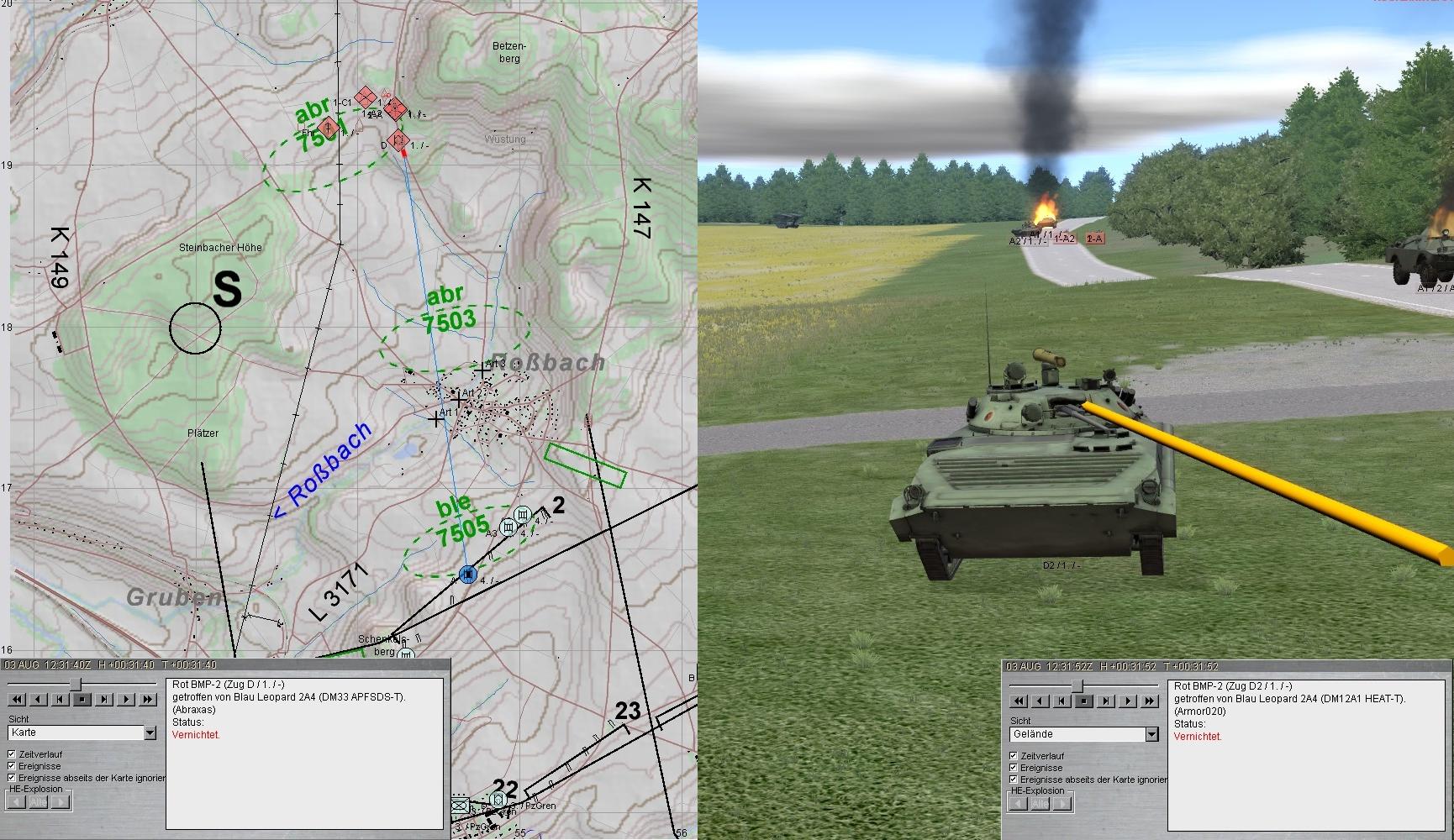 Nun griff eine zweite BMP-2-Kp an. Der Feuerkampf wurde eröffnet und im Ausweichen des A-Zuges konnte auch diese Feindkompanie zum Stehen gebracht werden: