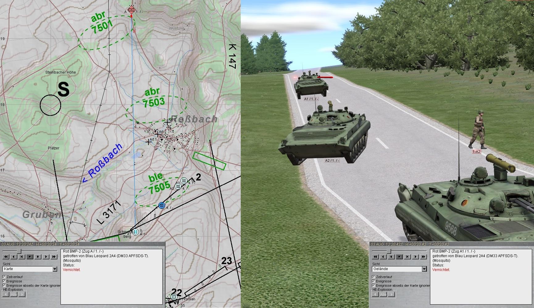 Nun griff eine zweite BMP-2-Kp an. Der Feuerkampf wurde eröffnet und im Ausweichen des A-Zuges konnte auch diese Feindkompanie zum Stehen gebracht werden: