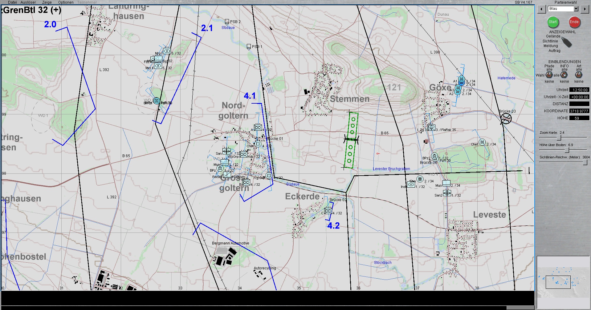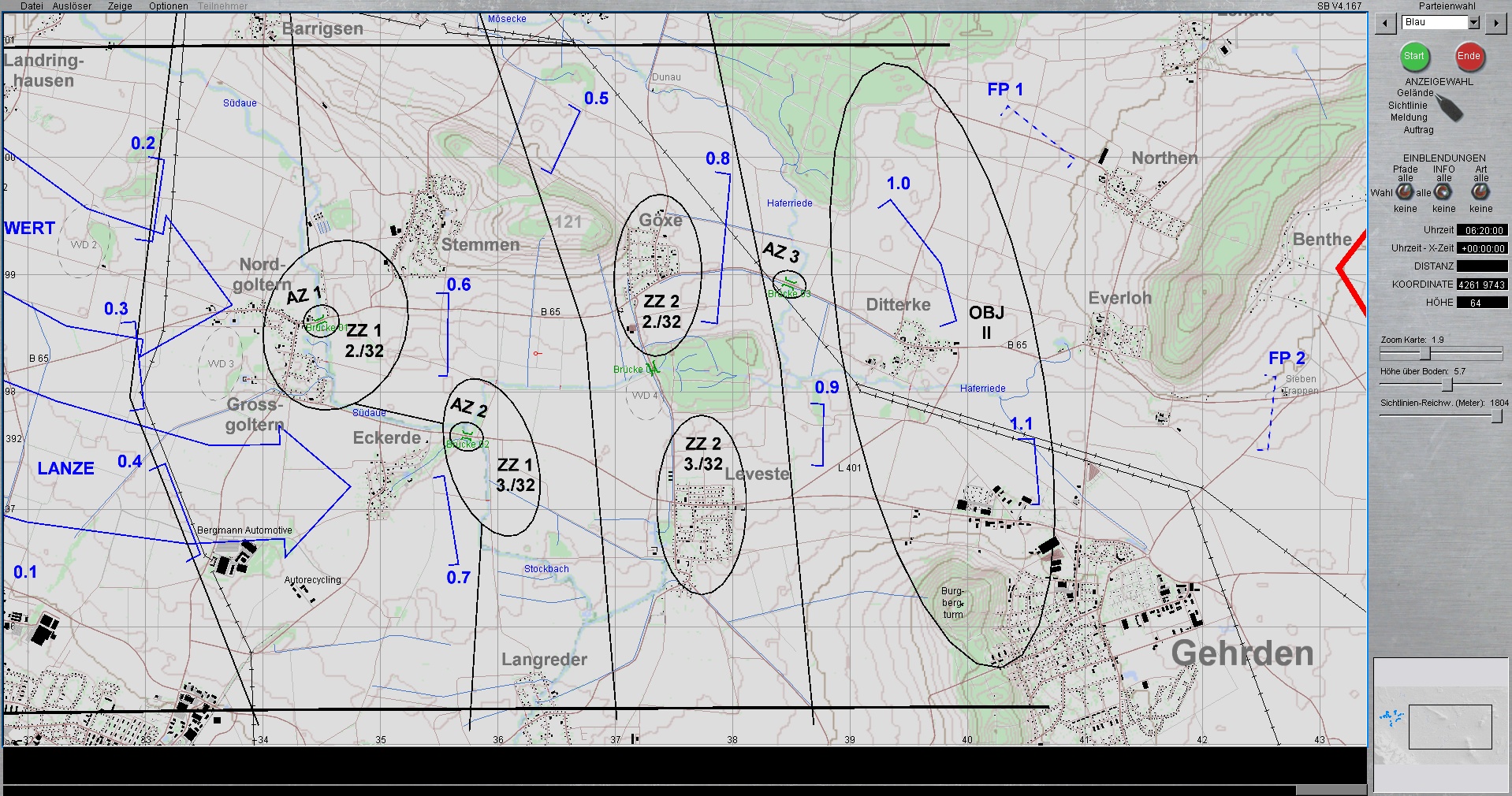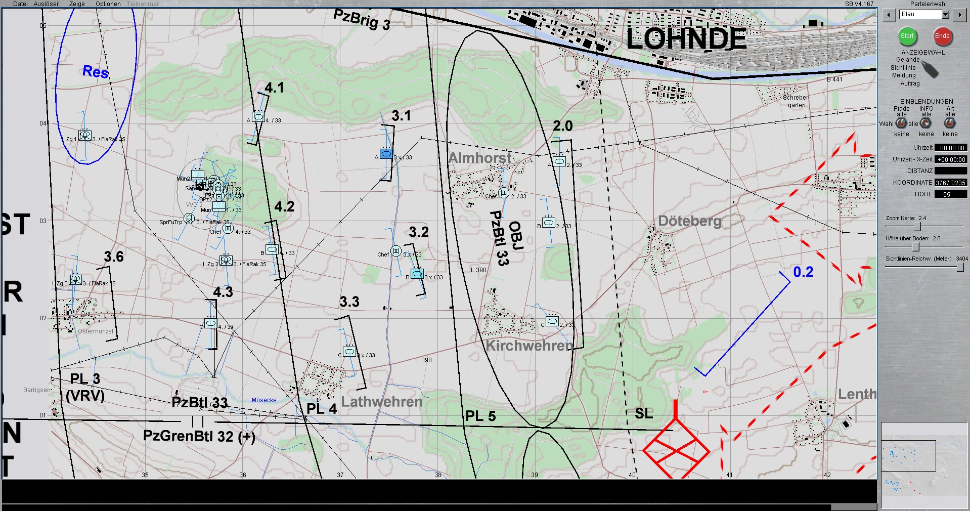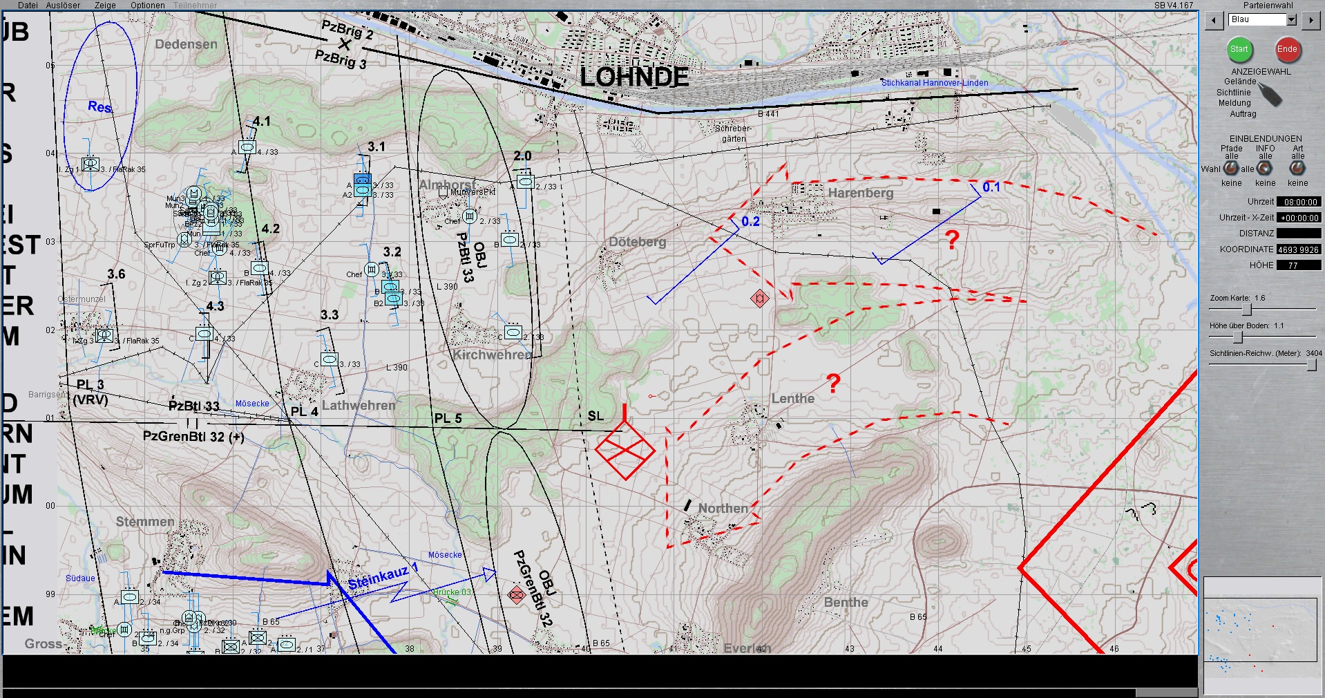 Die 1. PzDiv ist mit allen 3 Brigaden westlich von HANNOVER eingesetzt. Die PzGrenBrig 1 ist rechts, Die PzBrig 3 in der Mitte und die PzBrig 2 ist links eingesetzt.