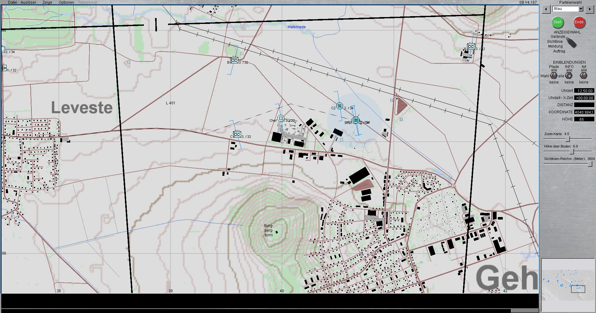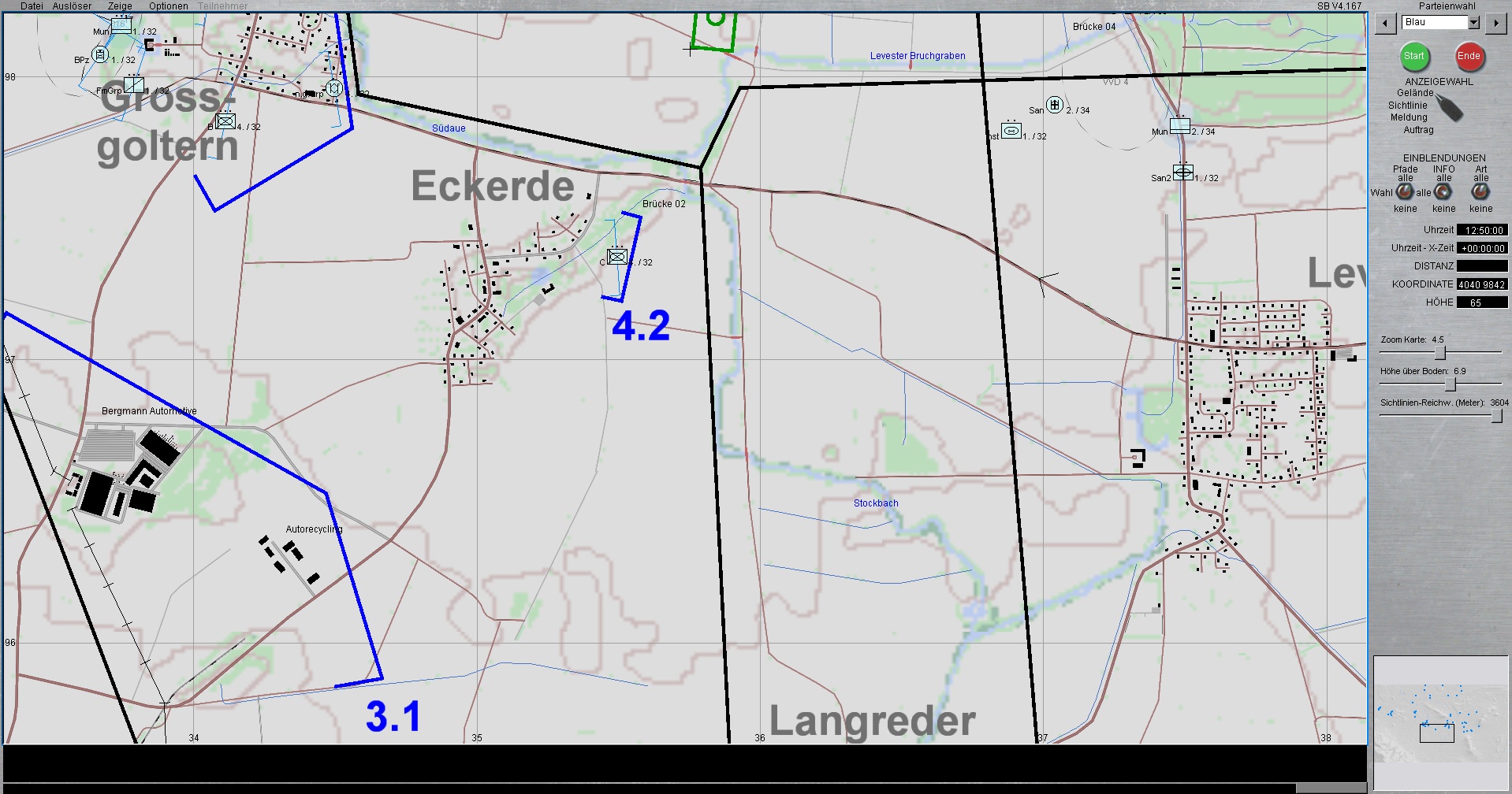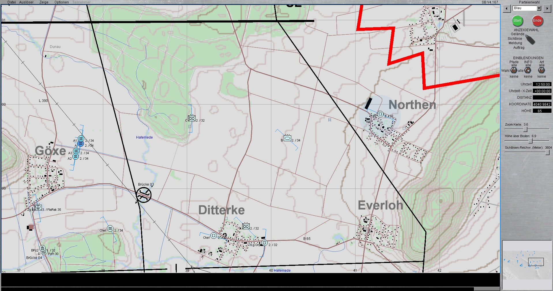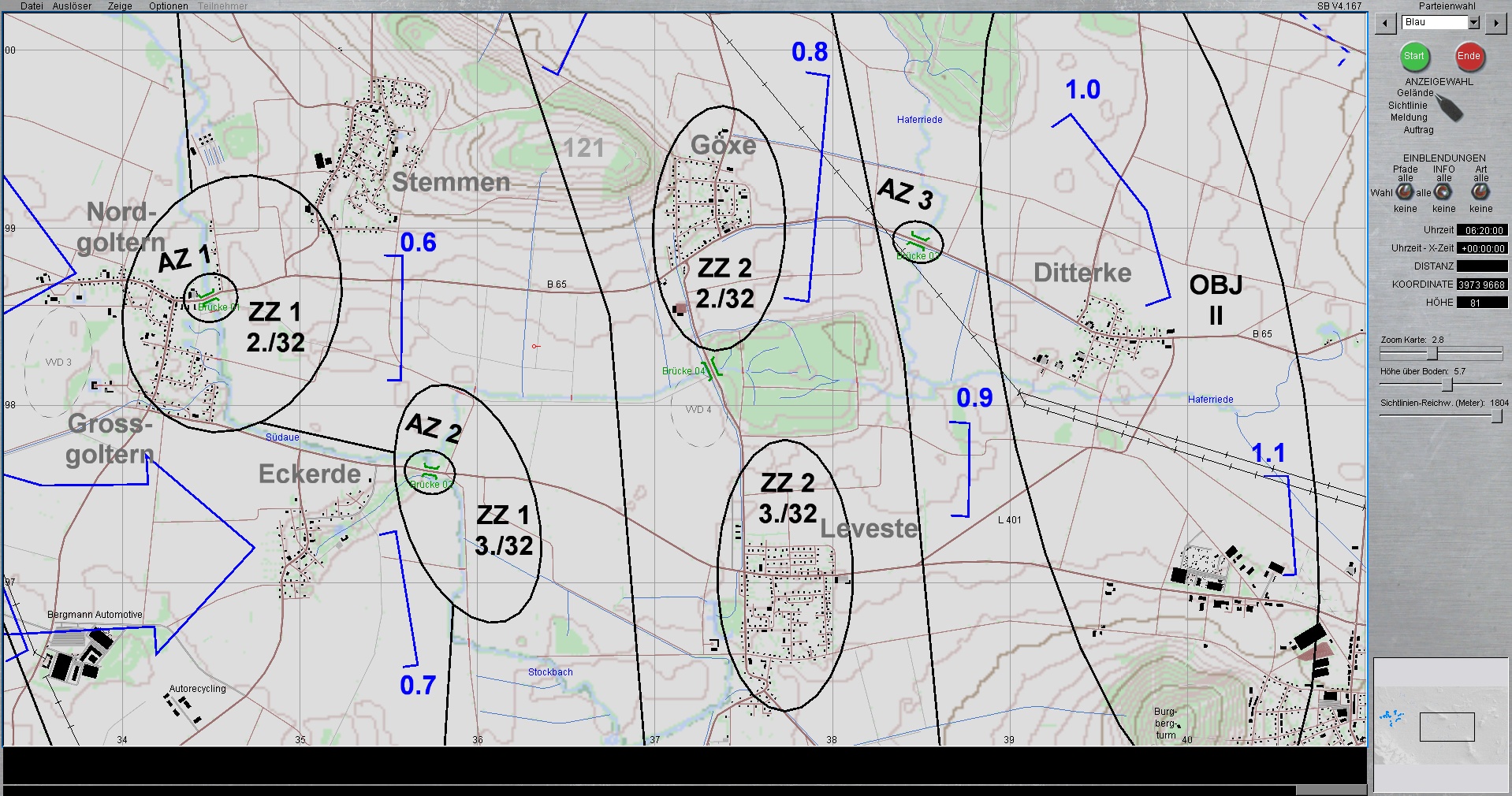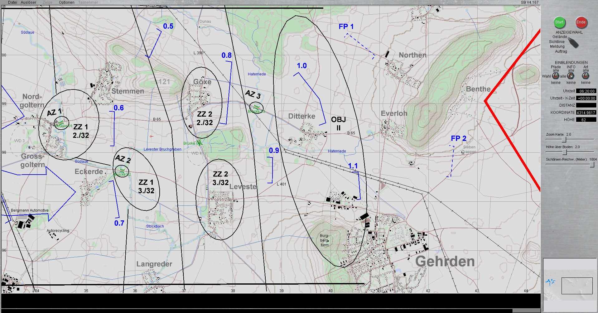 Die 1. PzDiv ist mit allen 3 Brigaden westlich von HANNOVER eingesetzt. Die PzGrenBrig 1 ist rechts, Die PzBrig 3 in der Mitte und die PzBrig 2 ist links eingesetzt.
