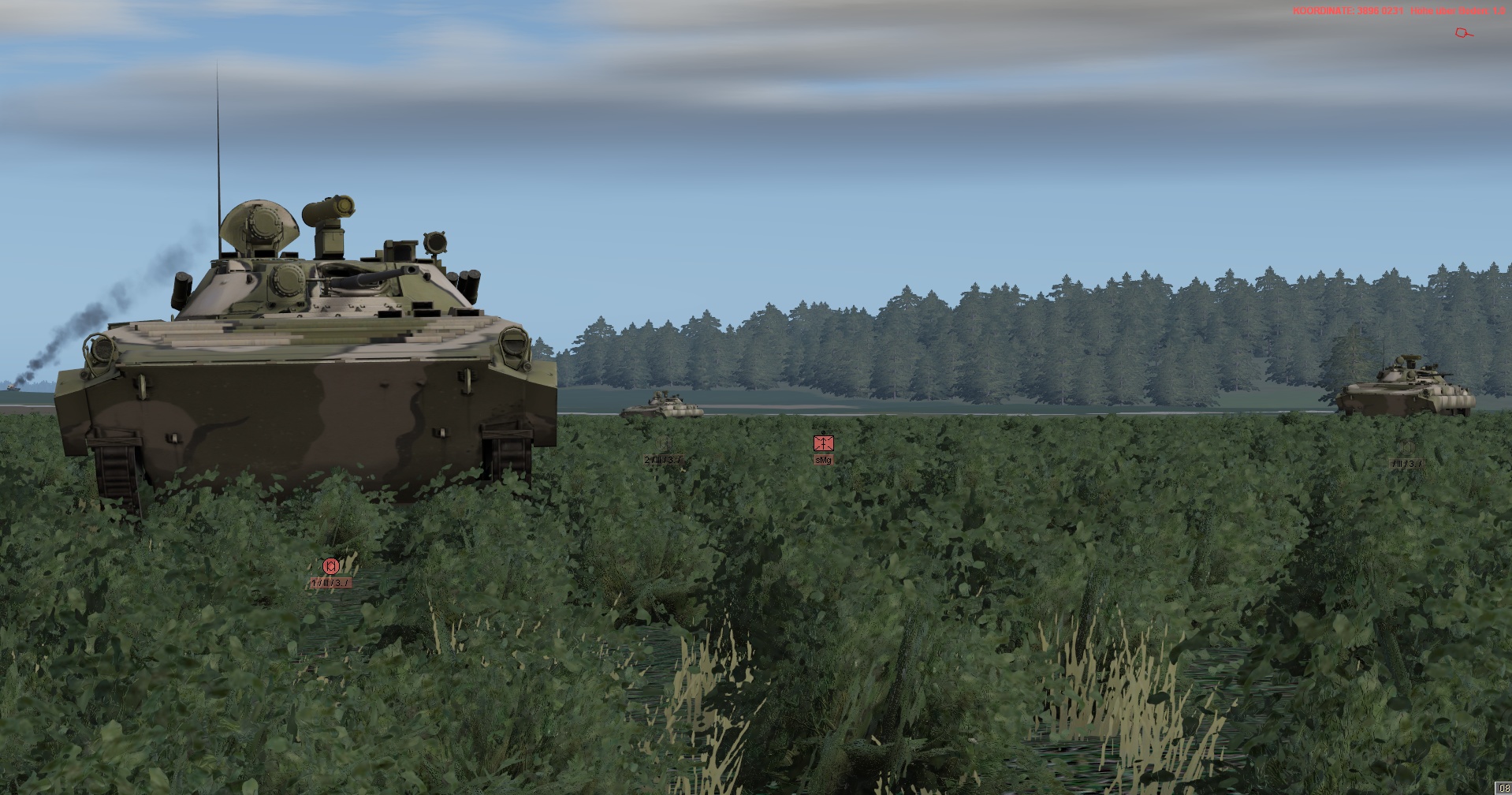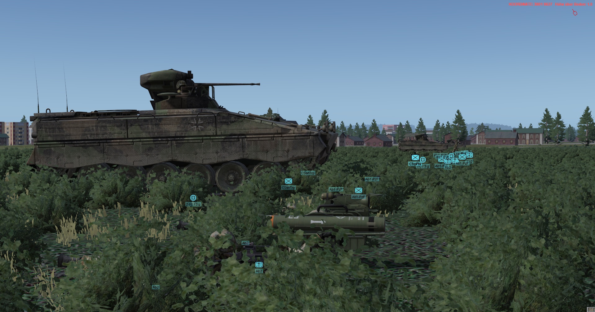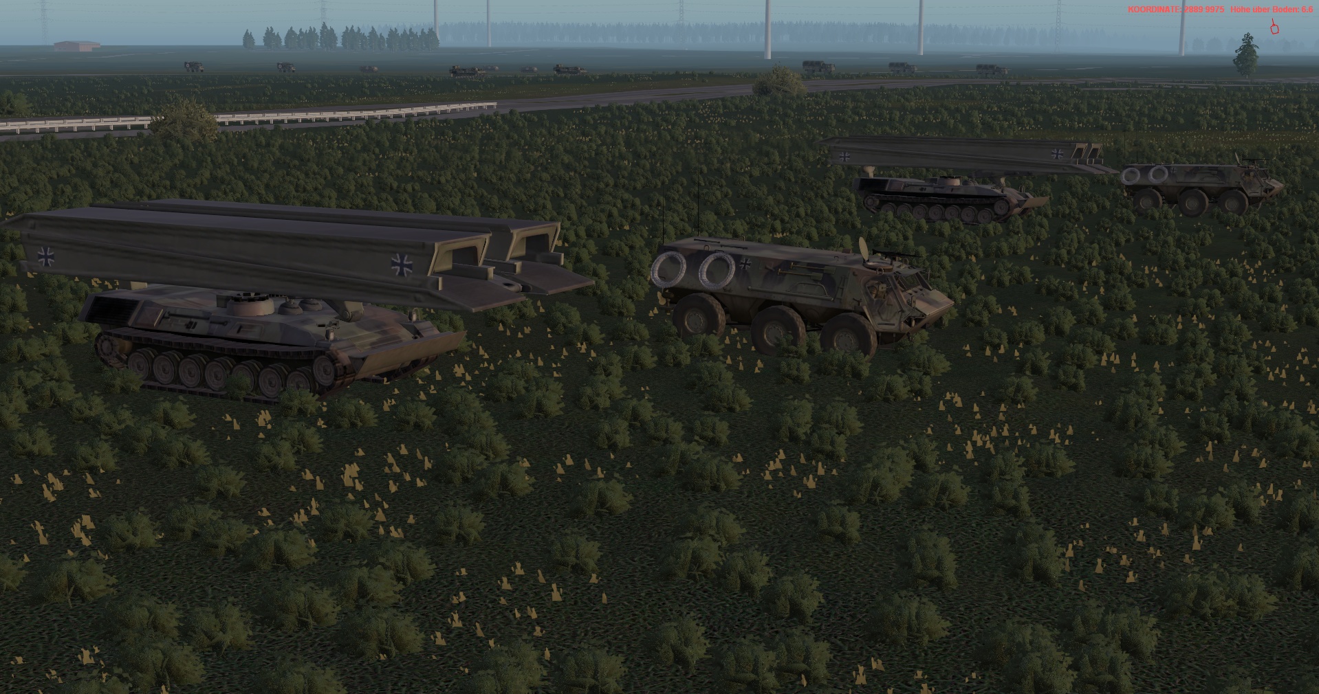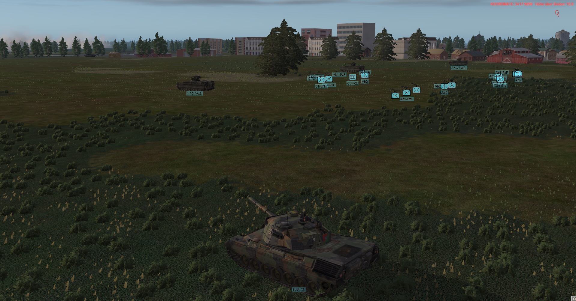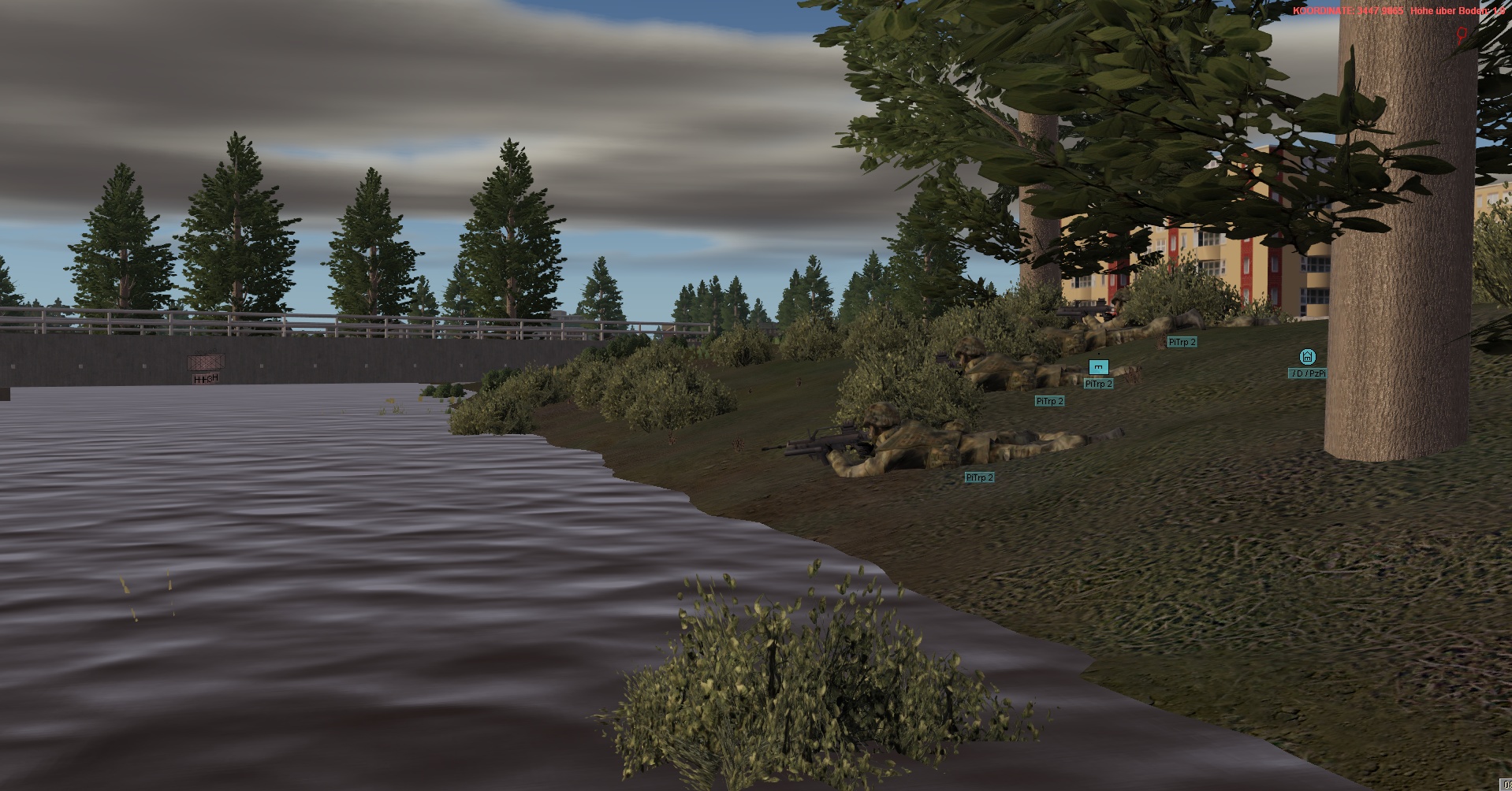 WIR im PzGrenBtl 32 eingesetzt, treten mit einem PzZg (2x 3 Leopard 1A5) des 2./ PzAufklBtl 1, dem Btl voraus als schwere GefAufkl an, vernichten Feind oder zwingen Diese zum Ausweichen, unterstützen & sichern eigene Pioniere bei den Brückenübergängen, legen ggf manuell Panzerschnellbrücken über zerstörte Brücken, um den eigenen Angriff voranzubringen, klären, nach nehmen des OBJs, weiter in allgemein nordöstliche und östliche Richtung auf.