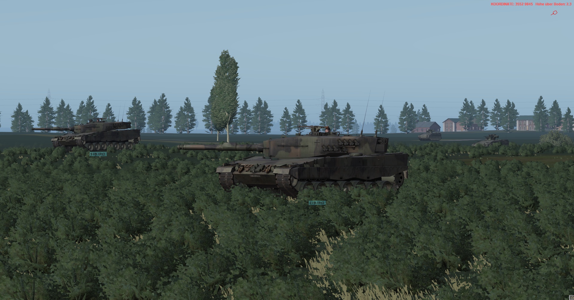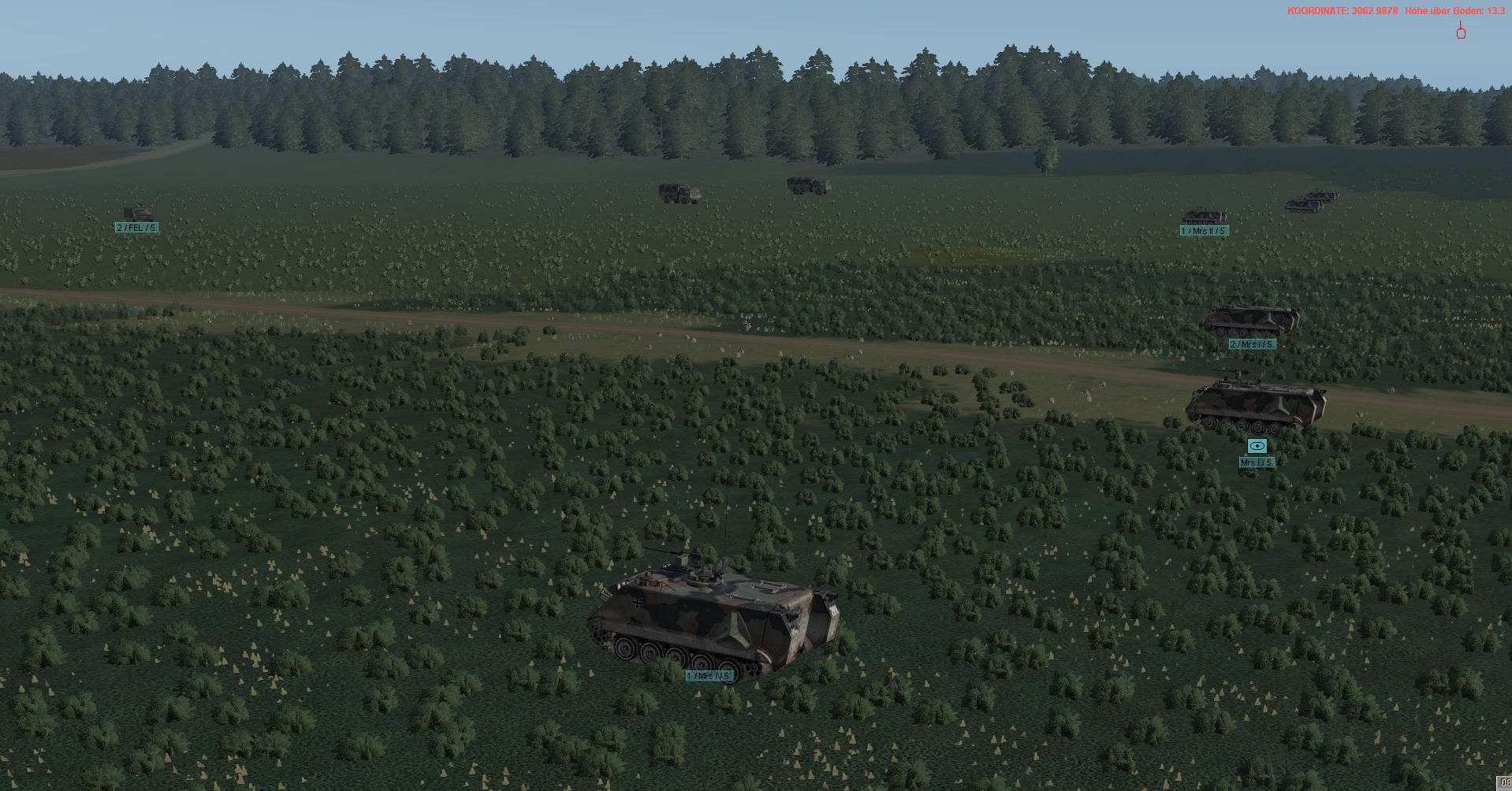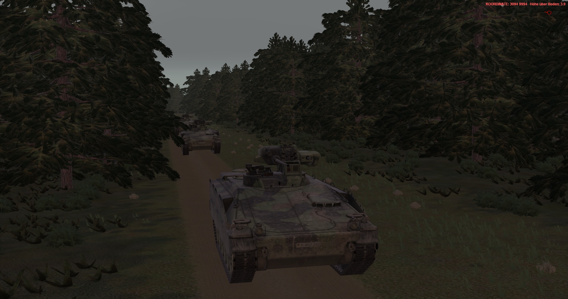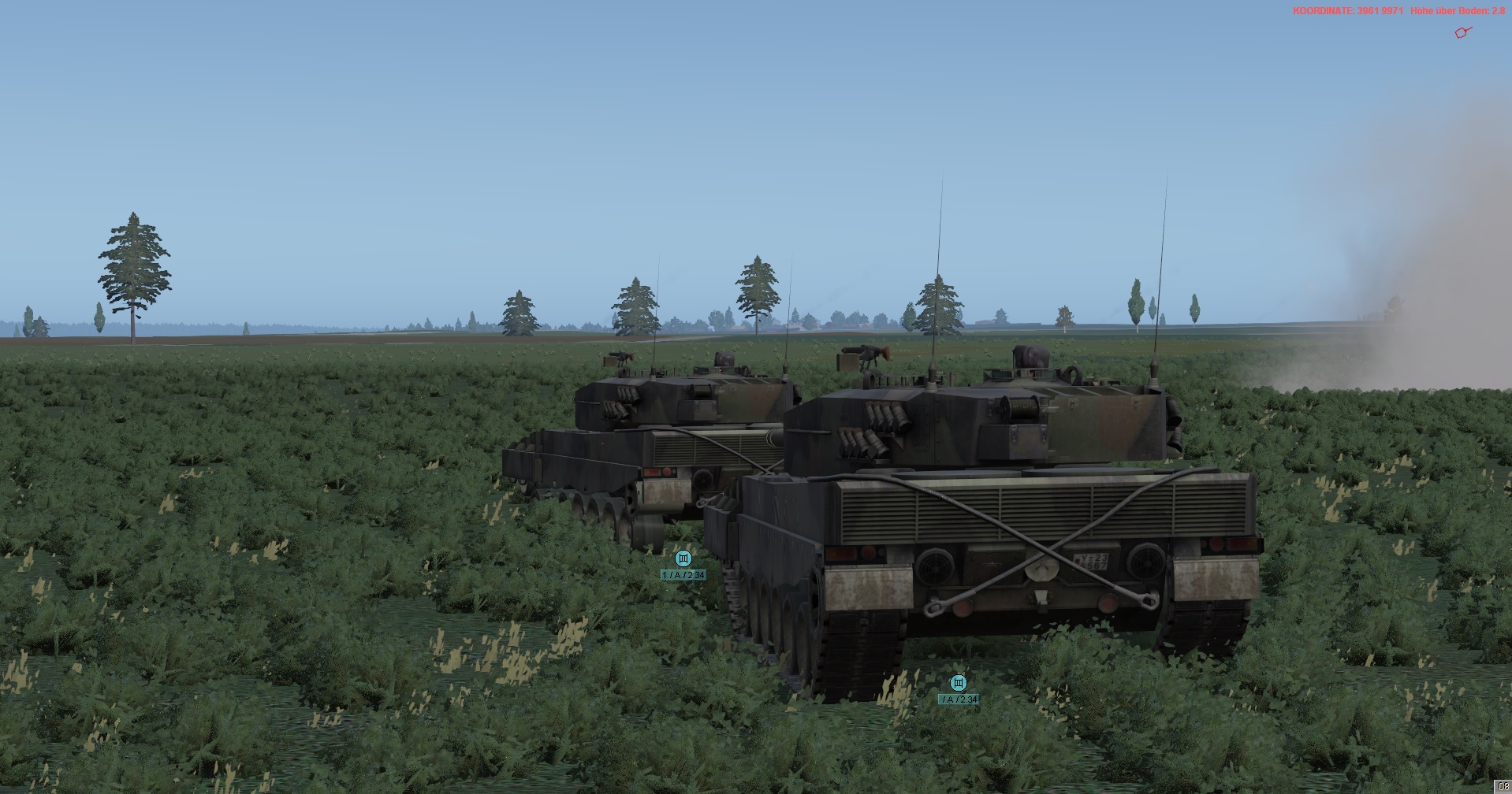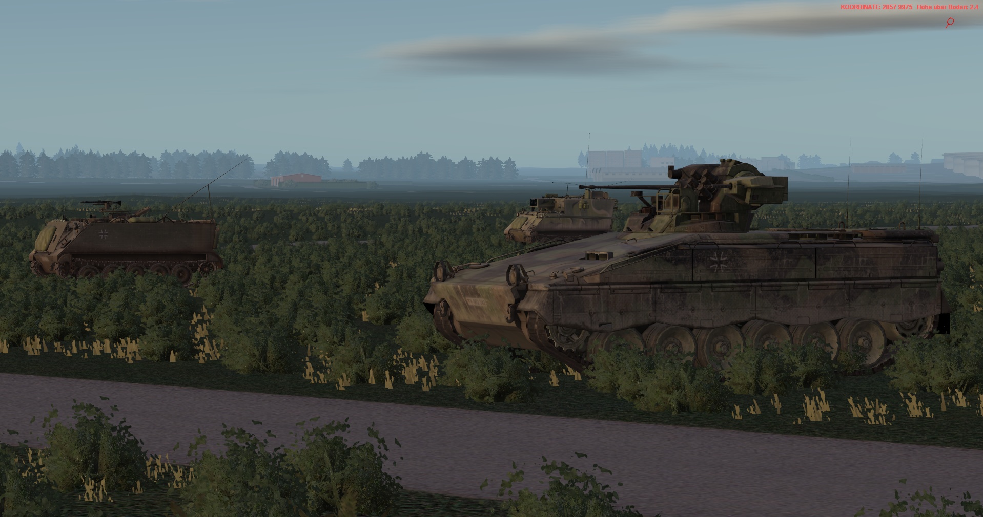 WIR im PzGrenBtl 32 eingesetzt, treten mit einem PzZg (2x 3 Leopard 1A5) des 2./ PzAufklBtl 1, dem Btl voraus als schwere GefAufkl an, vernichten Feind oder zwingen Diese zum Ausweichen, unterstützen & sichern eigene Pioniere bei den Brückenübergängen, legen ggf manuell Panzerschnellbrücken über zerstörte Brücken, um den eigenen Angriff voranzubringen, klären, nach nehmen des OBJs, weiter in allgemein nordöstliche und östliche Richtung auf.