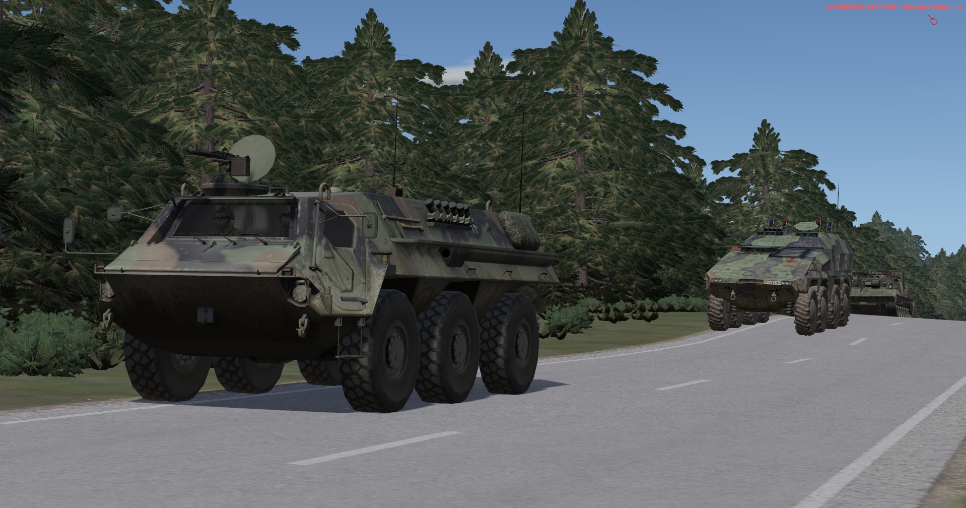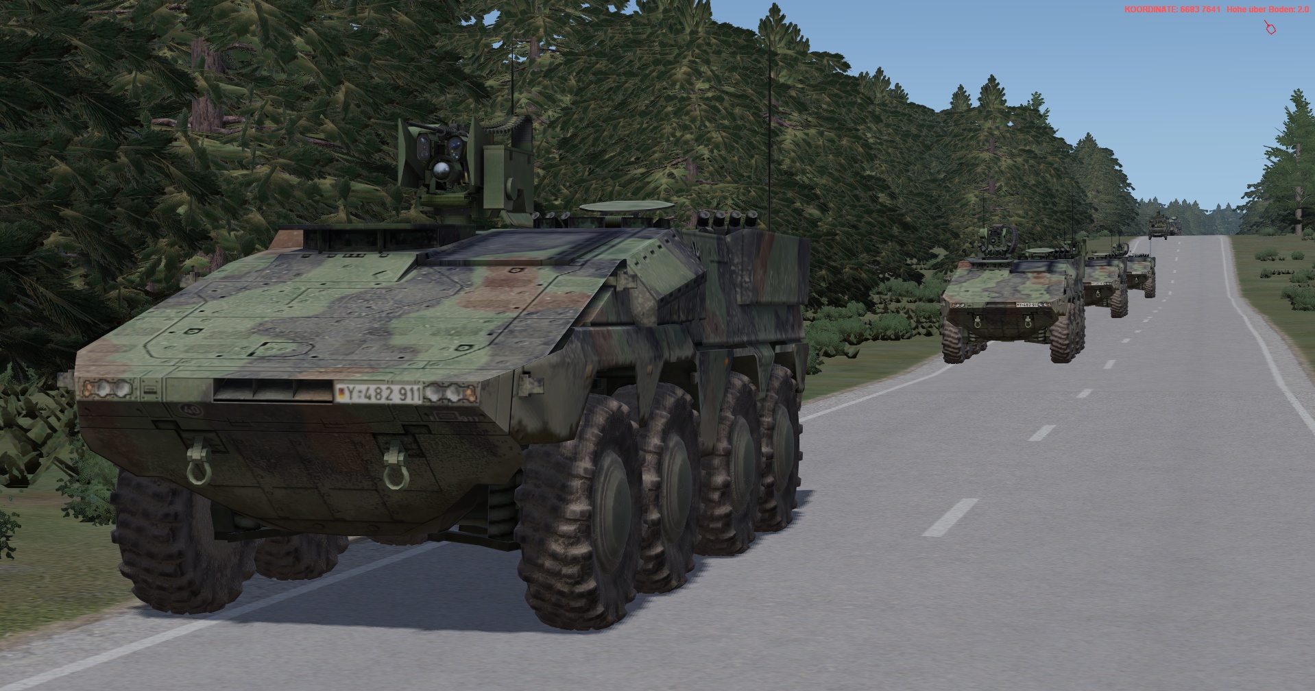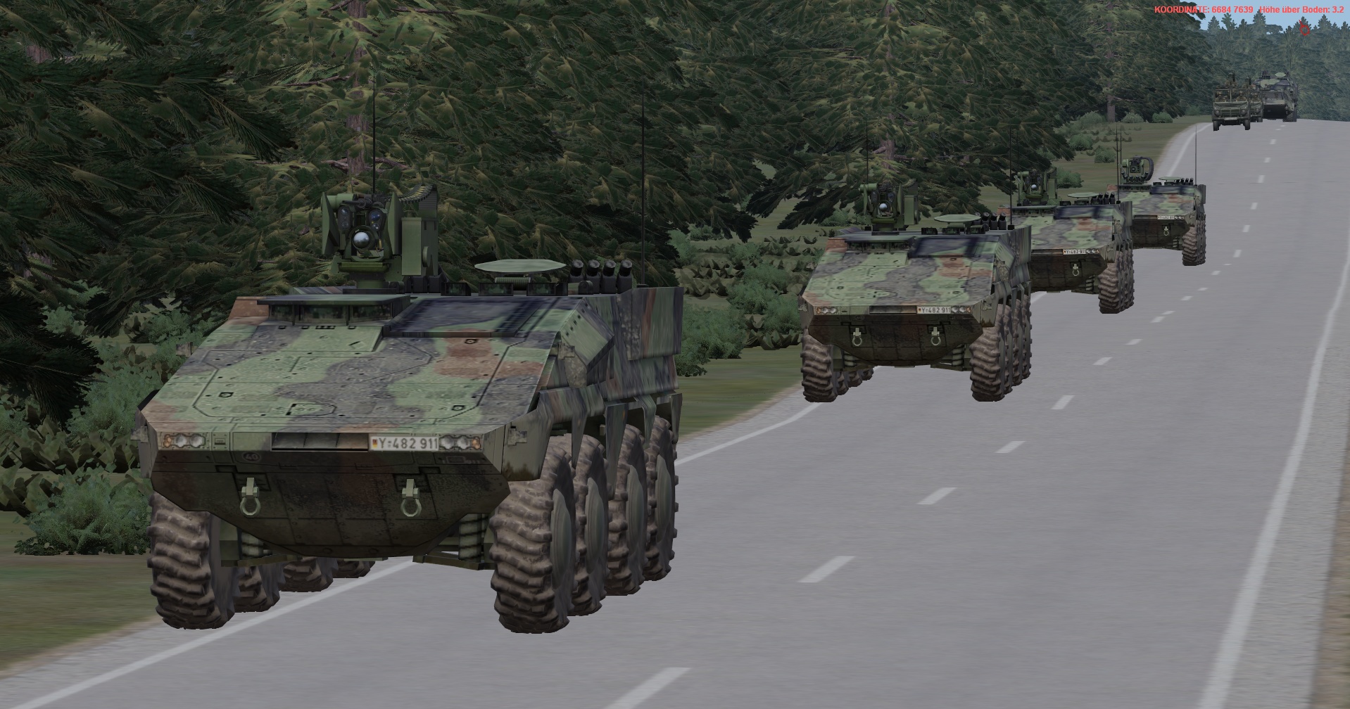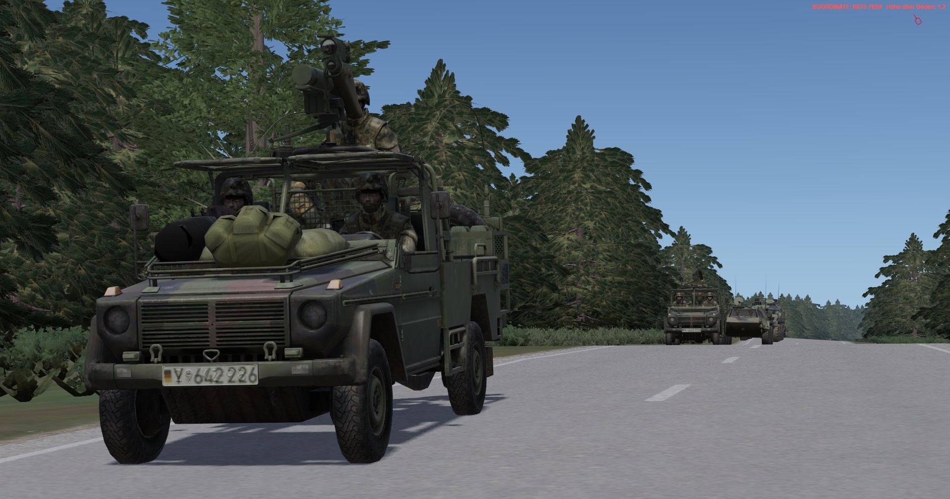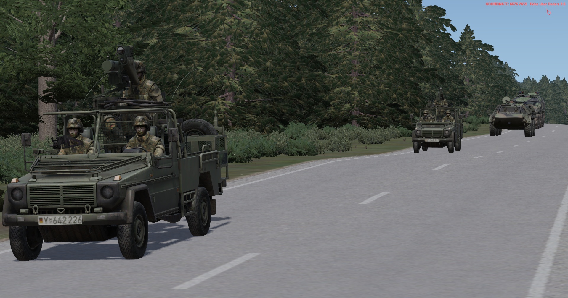 Ein vstk. JgZg mit 4 GTK Boxern, einem schw. Halbzug MB300 mit MILAN , einem TPz Fuchs Pi , einem MrsTrp (4x MB Wolf mit 120mm Mörser) + GTK San & BergeTrp