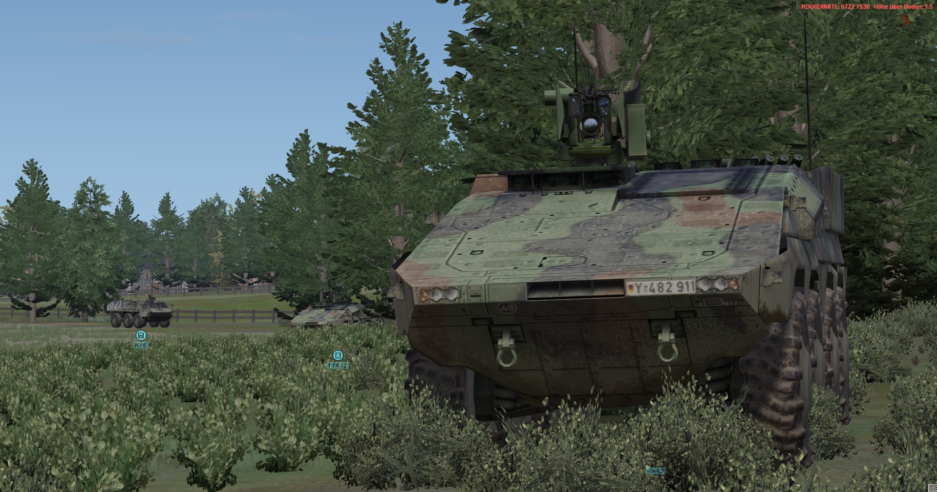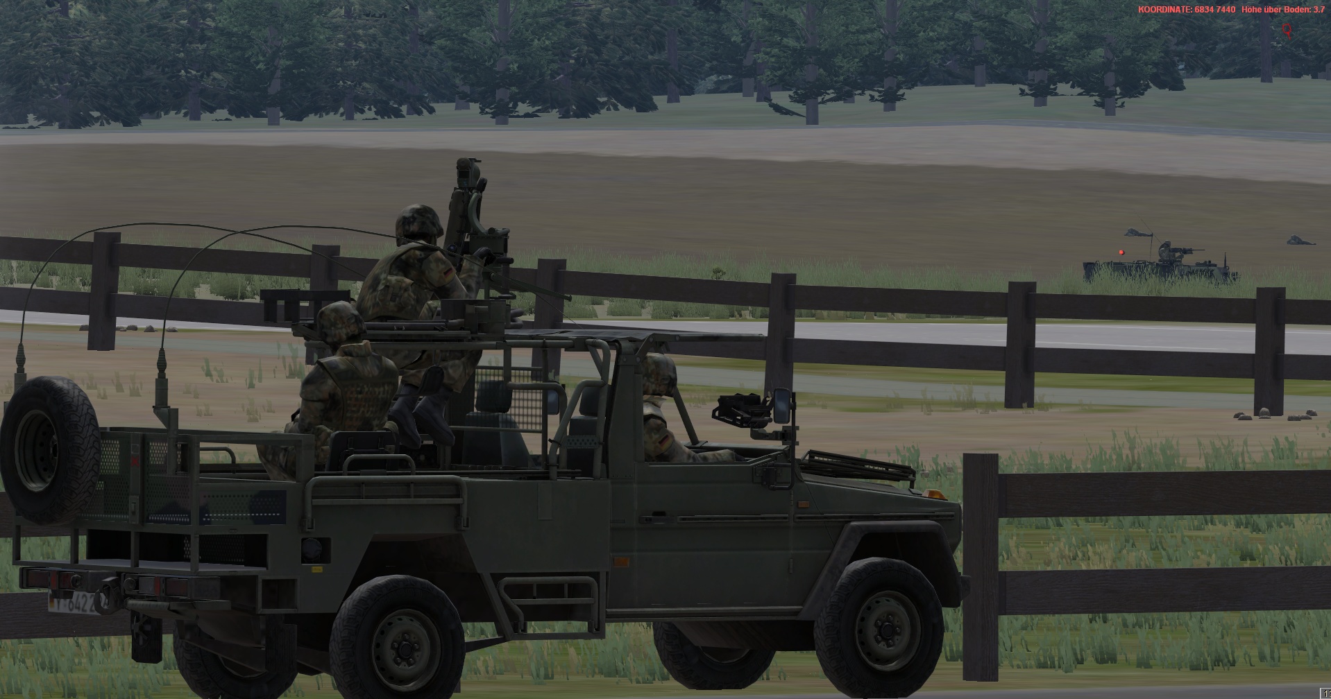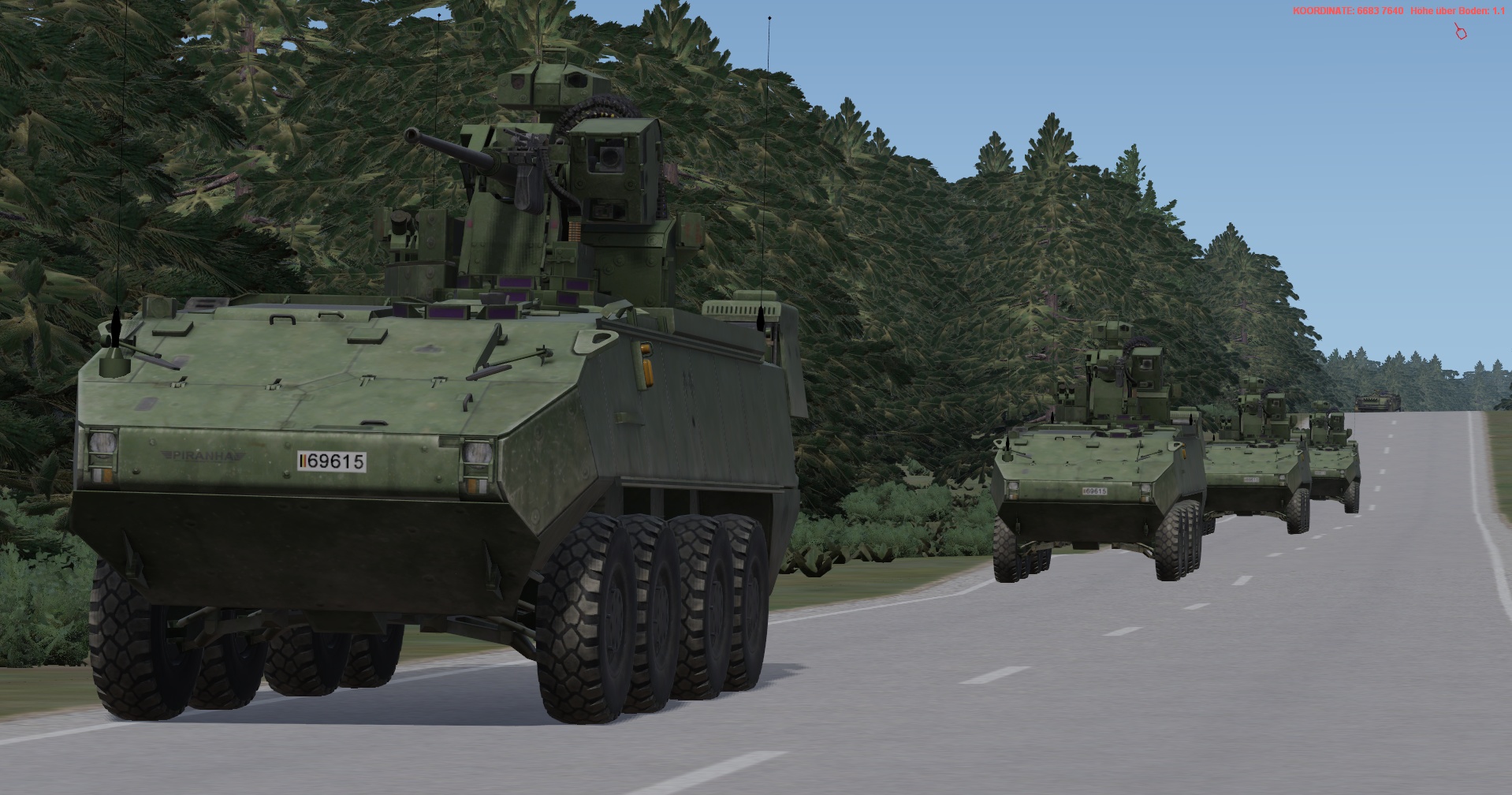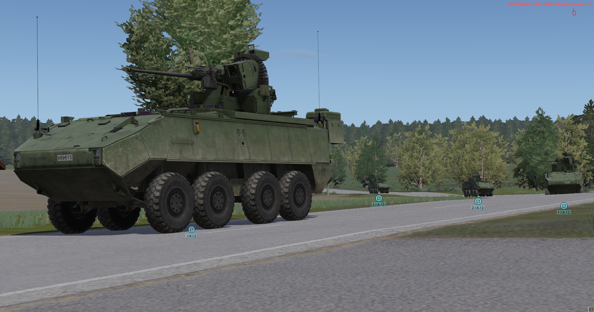 Ein vstk. JgZg mit 4 GTK Boxern, einem schw. Halbzug MB300 mit MILAN , einem TPz Fuchs Pi , einem MrsTrp (4x MB Wolf mit 120mm Mörser) + GTK San & BergeTrp