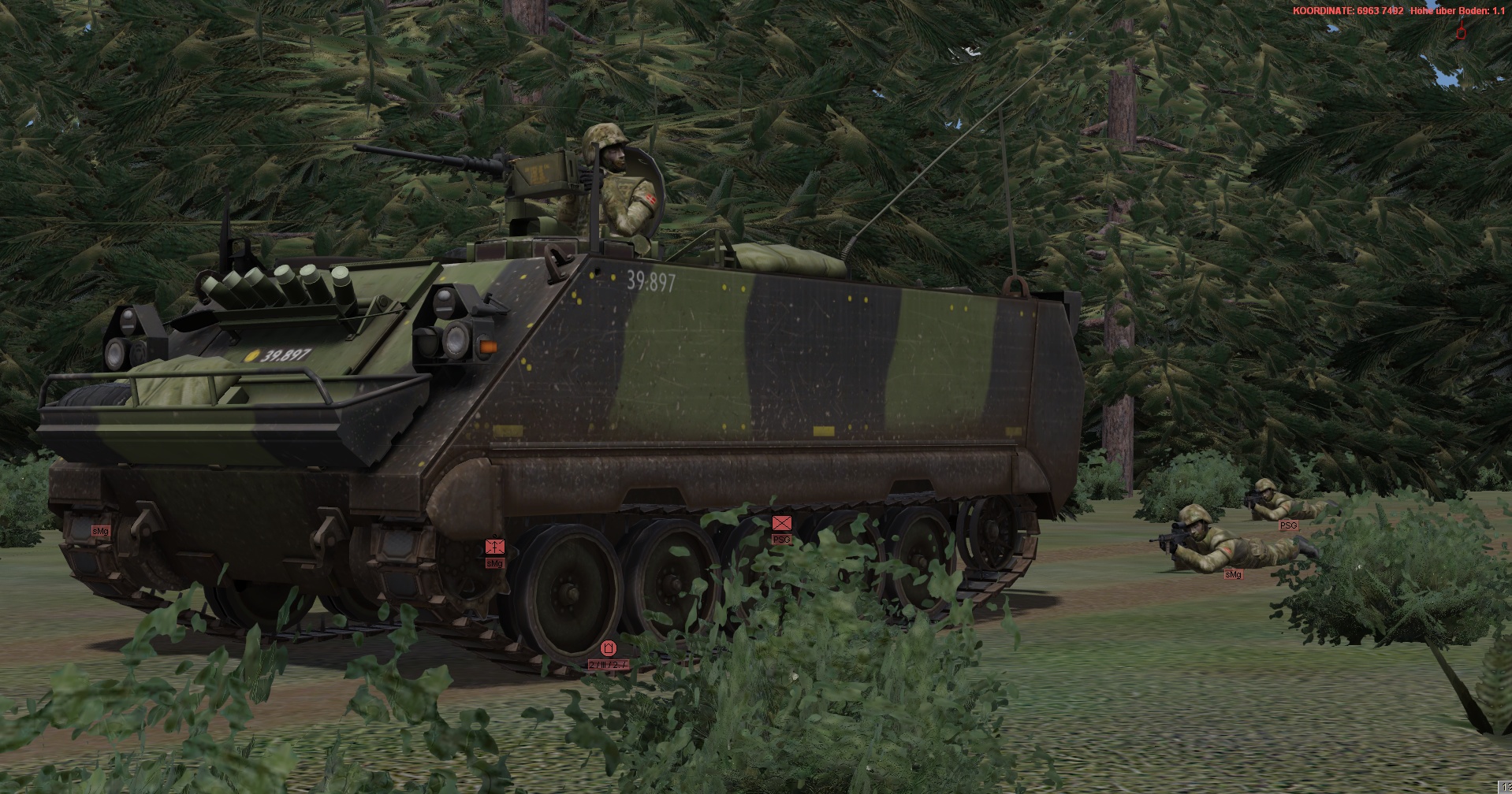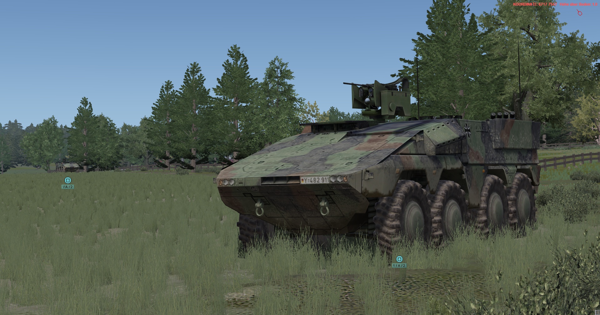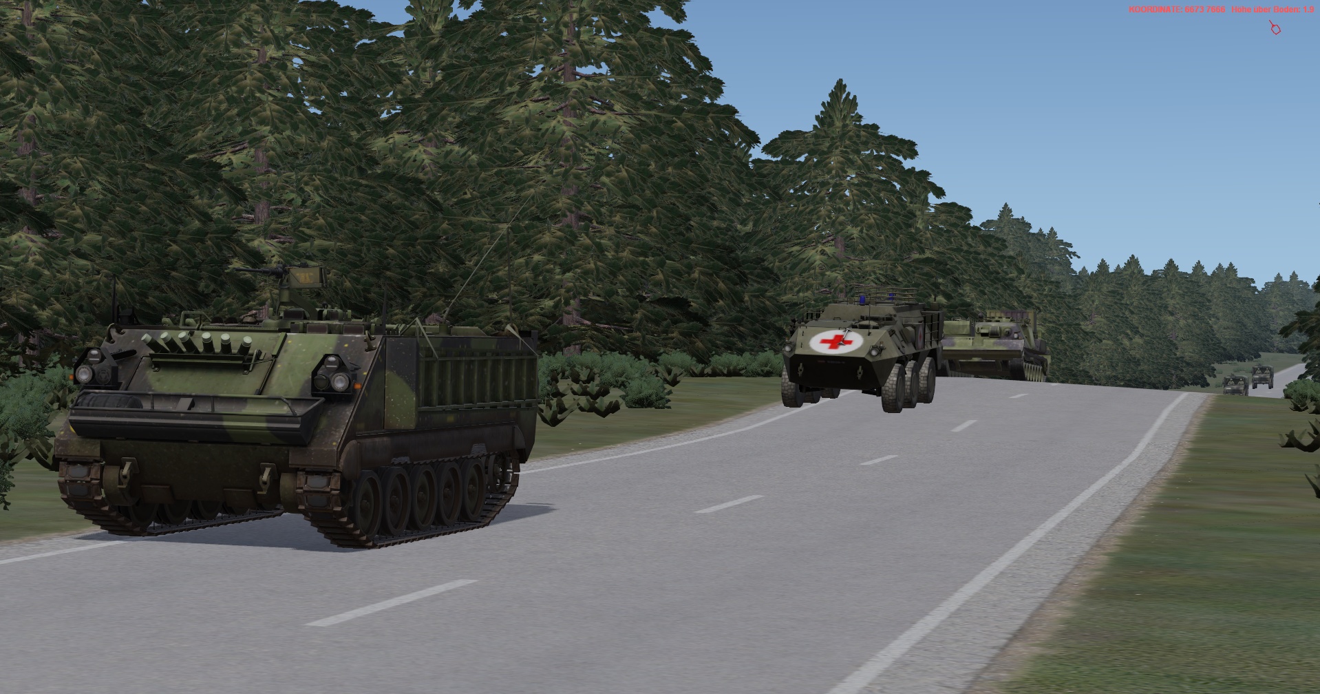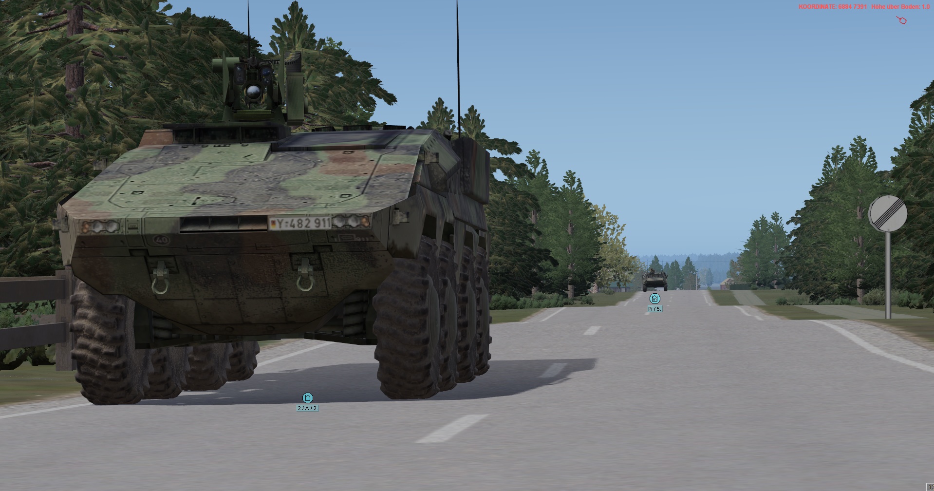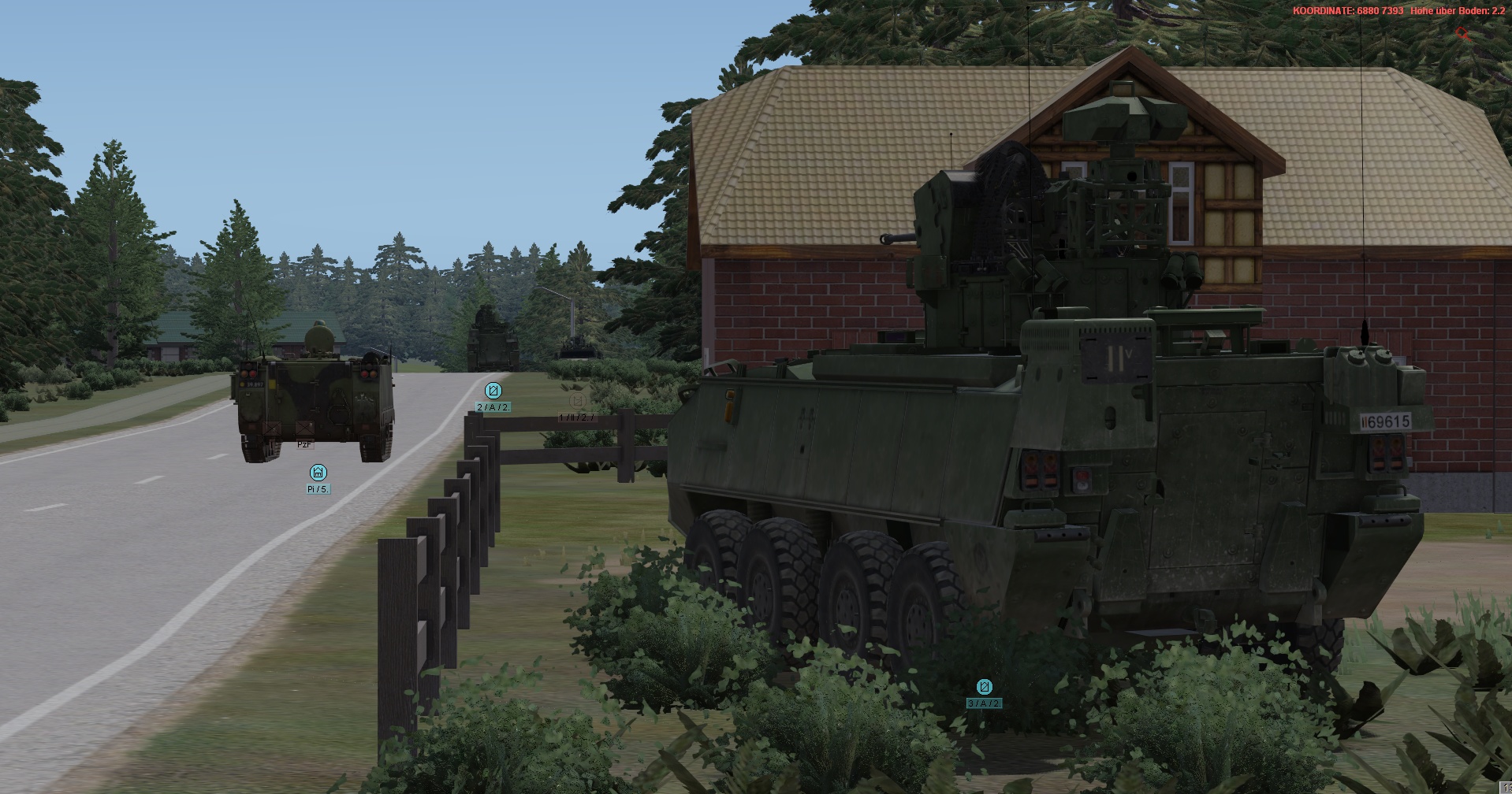 Ein vstk. JgZg mit 4 GTK Boxern, einem schw. Halbzug MB300 mit MILAN , einem TPz Fuchs Pi , einem MrsTrp (4x MB Wolf mit 120mm Mörser) + GTK San & BergeTrp