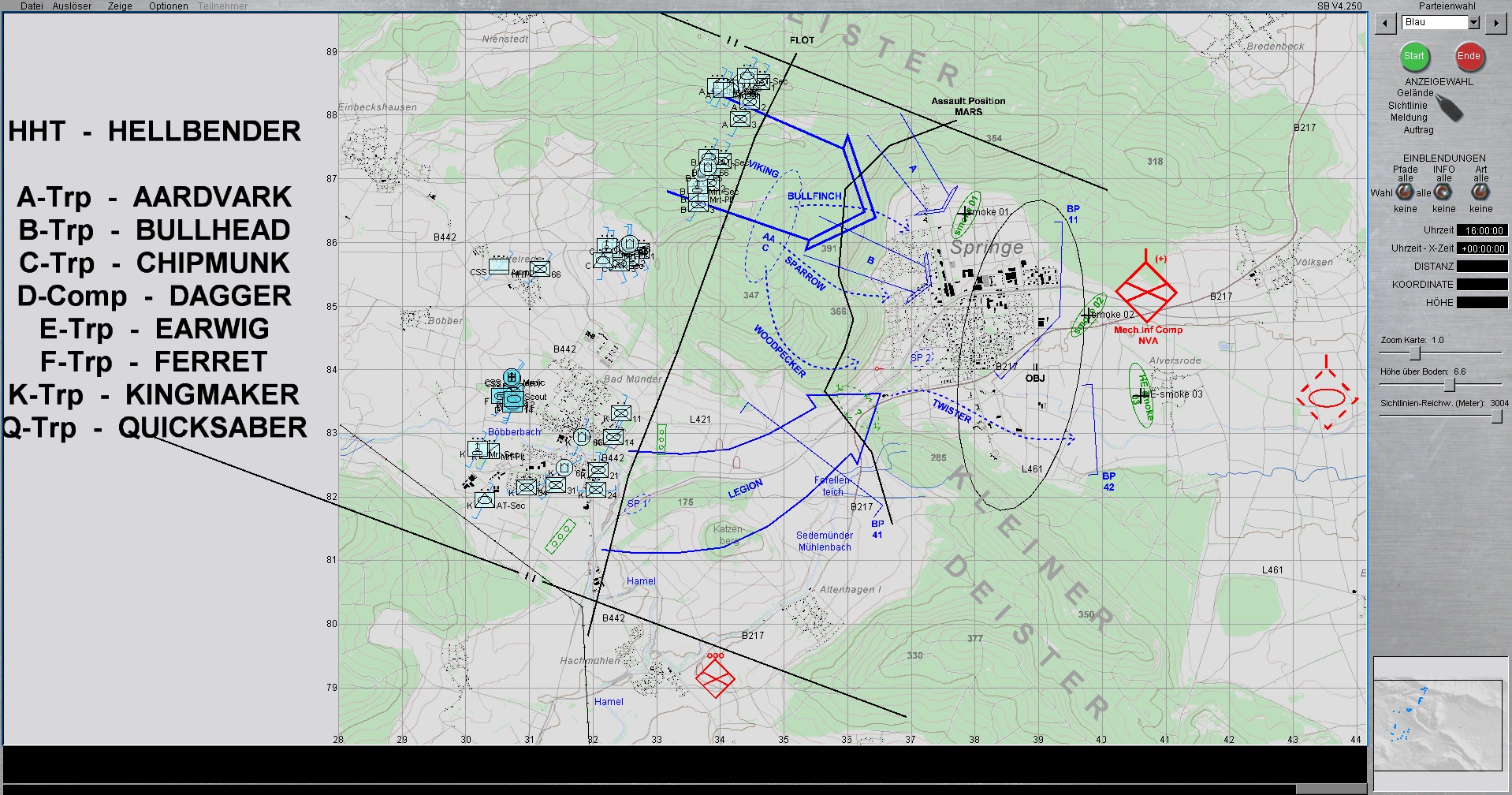 Das Btl hat den Auftrag, im Zuge des Hauptangriffspfeils VIKING mit 2 Inf Kompanien anzugreifen. Die Charlie Kompanie bildet die Reserve und wird flexibel eingesetzt.