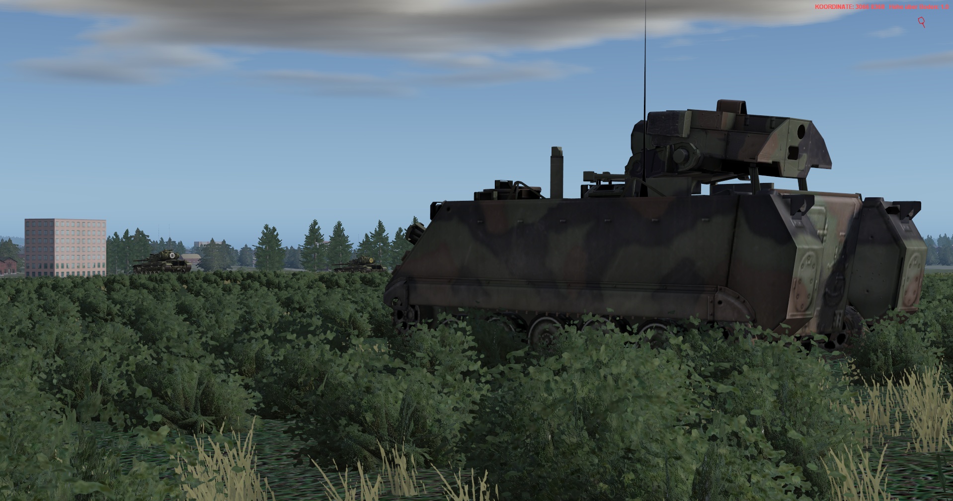 Einen Nebenstoß, (Spielbare Einheiten) gestellt durch einen PzZg (Delta1) M60A3 , einem Scout-Trp (Echo)(M113A2 & M981 FIST), sowie einem Eng-Trp (Foxtrott)(2x M113 (Miclic)), über LEGION, soll ebenfalls durchgeführt werden. Wir sollen bei LEGION den Feind glauben lassen, dass wir im Zuge dieser Enge versuchen anzugreifen, sodass diese ihre Flanken vernachlässigen, wo der Hauptstoß erfolgen soll.
