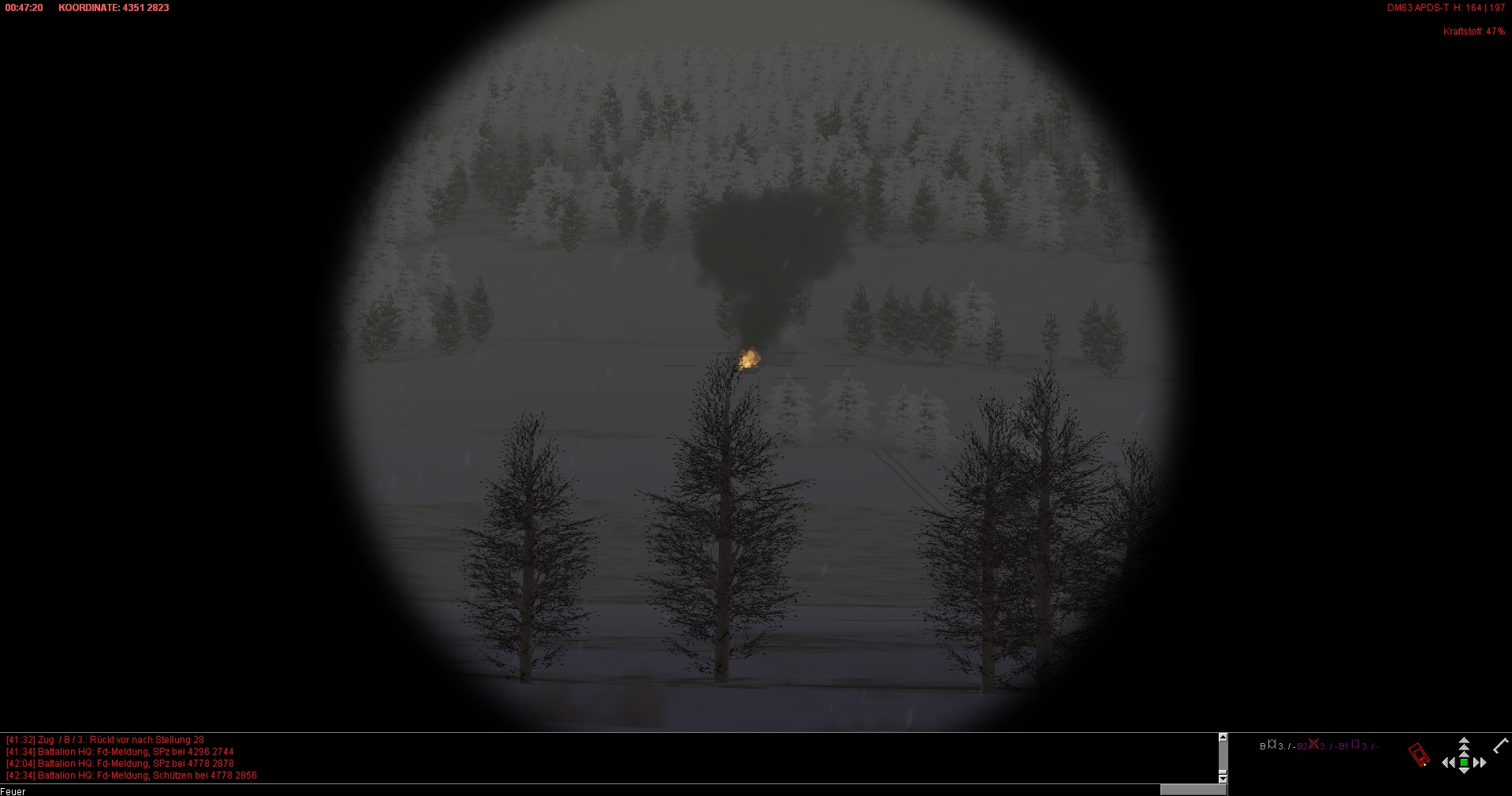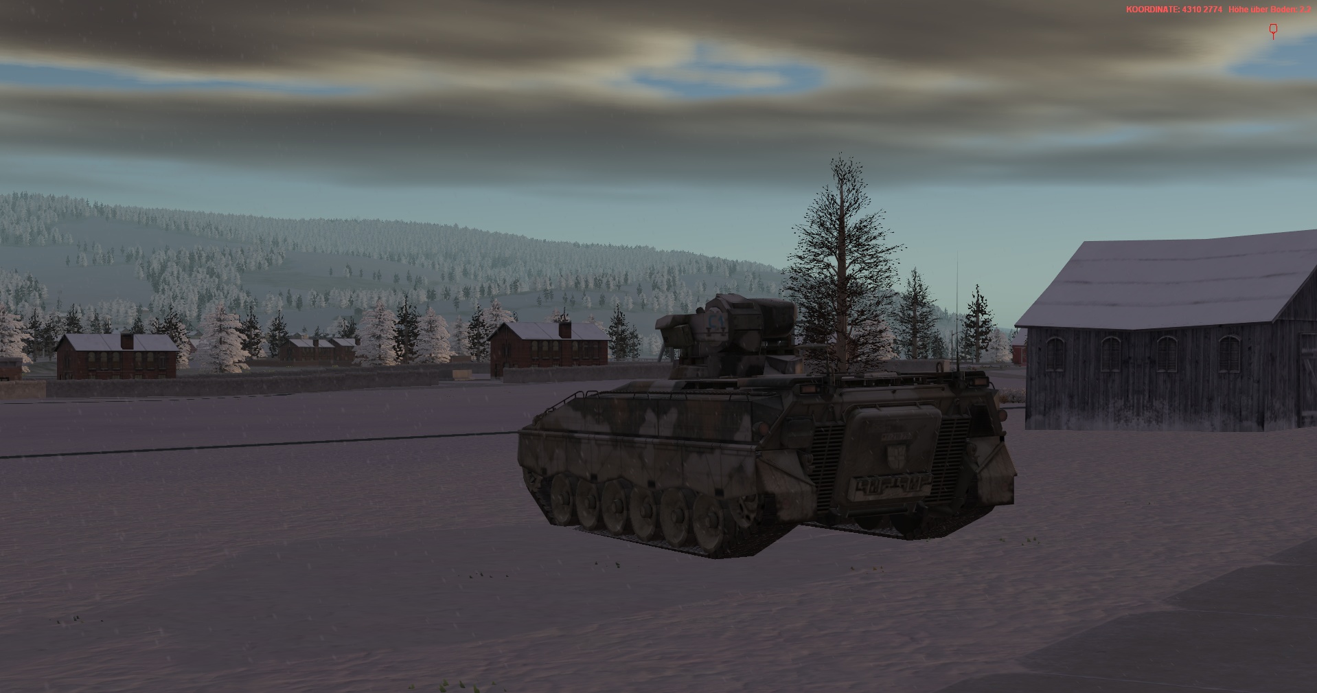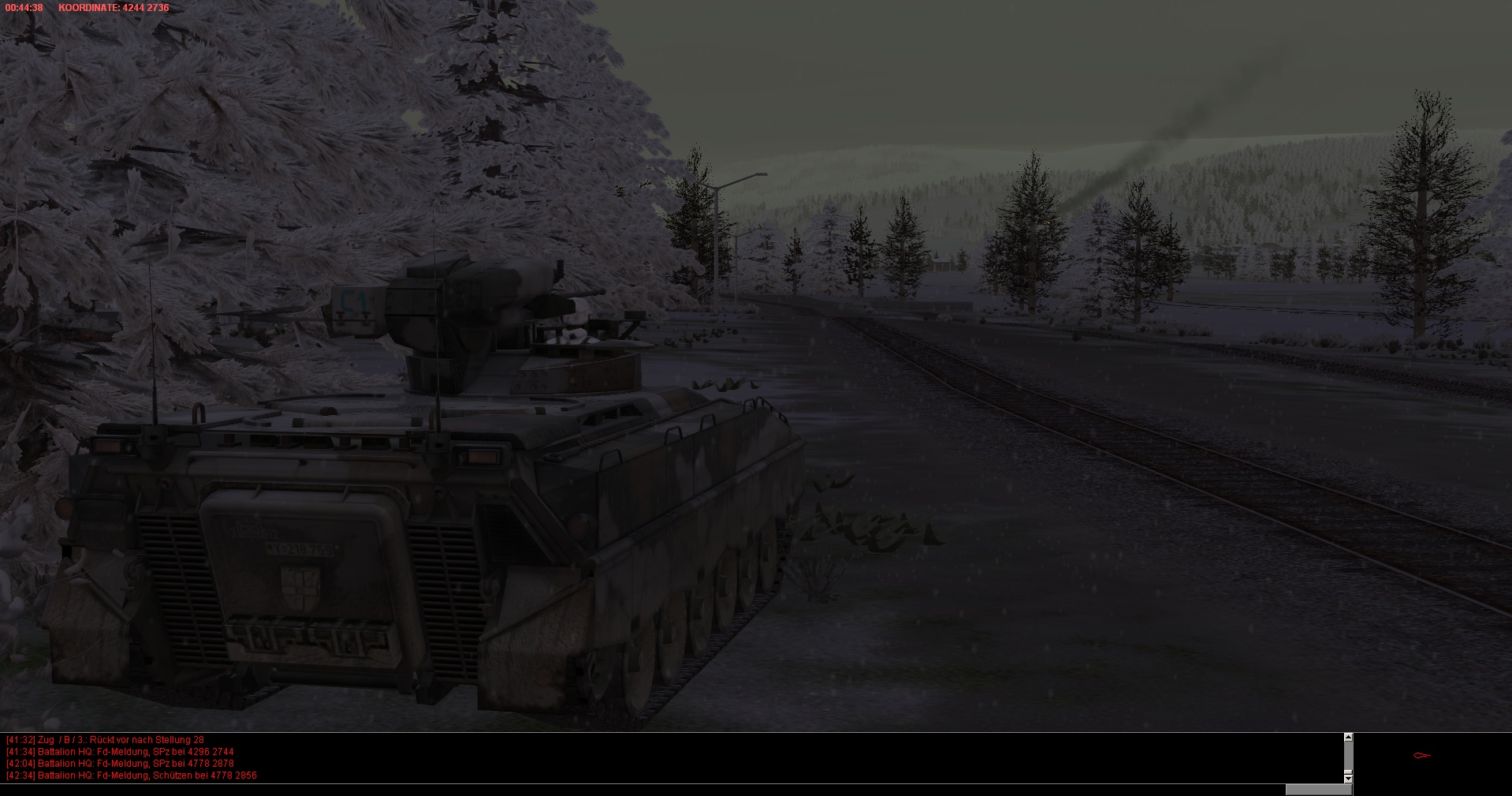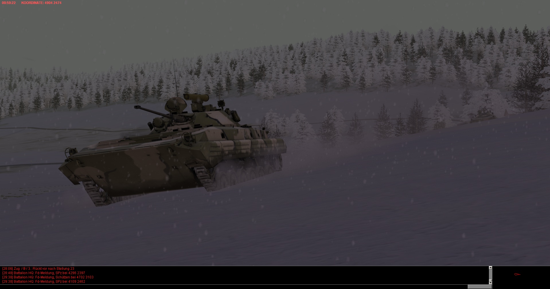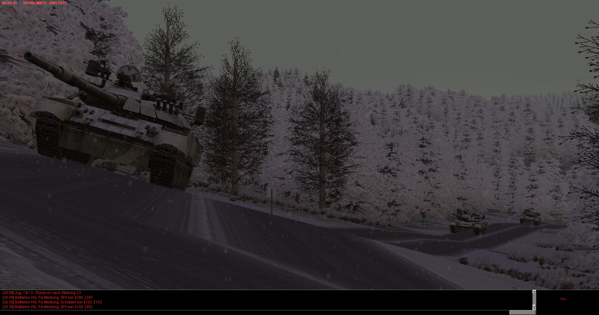 BRAVO ist durch fdl Artilleriefeuer, dass vor 2 Minuten vor ihm herunter kam, in eine gedeckte Position an der Ortschaft ausgewichen und hat auch seit dem keinen visuellen Kontakt mehr zum ALFA-Zg.