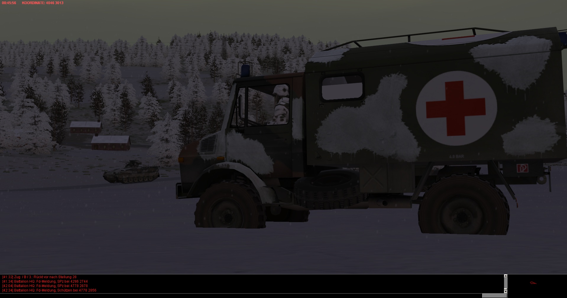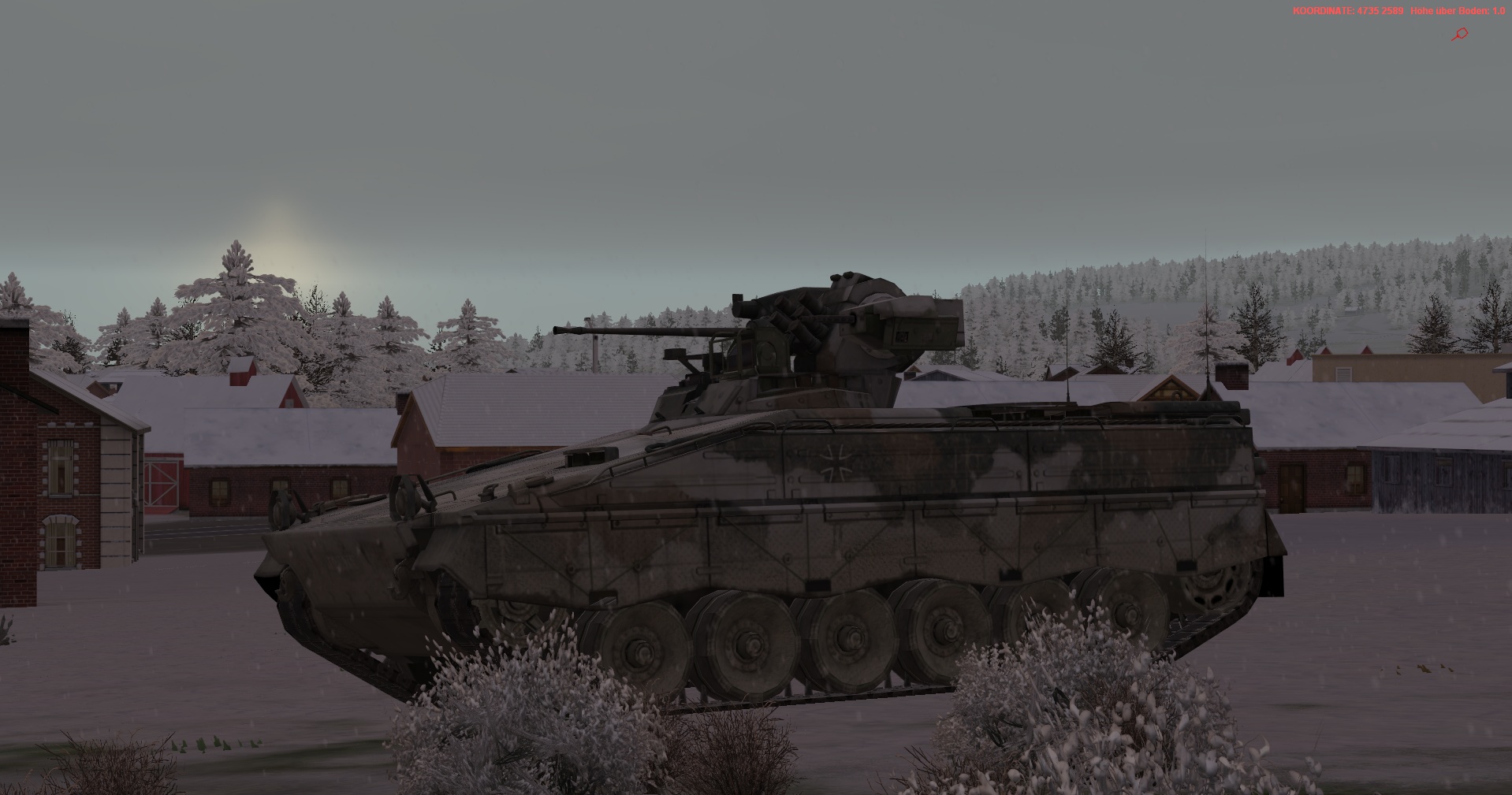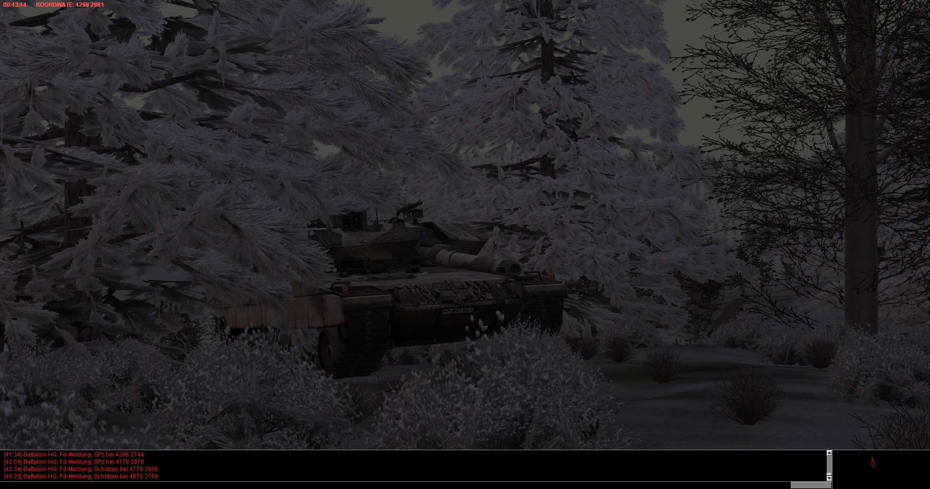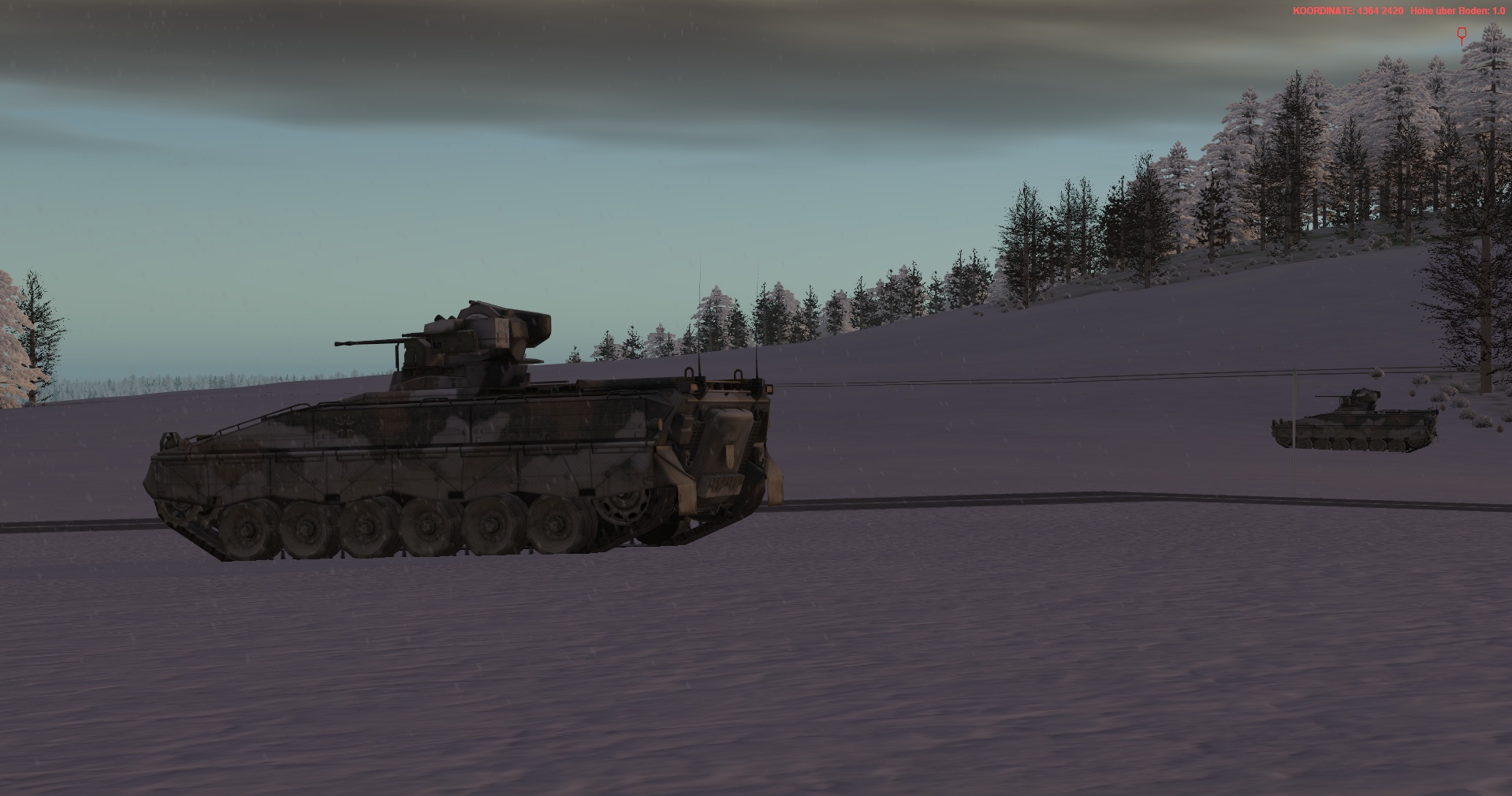 BRAVO ist durch fdl Artilleriefeuer, dass vor 2 Minuten vor ihm herunter kam, in eine gedeckte Position an der Ortschaft ausgewichen und hat auch seit dem keinen visuellen Kontakt mehr zum ALFA-Zg.