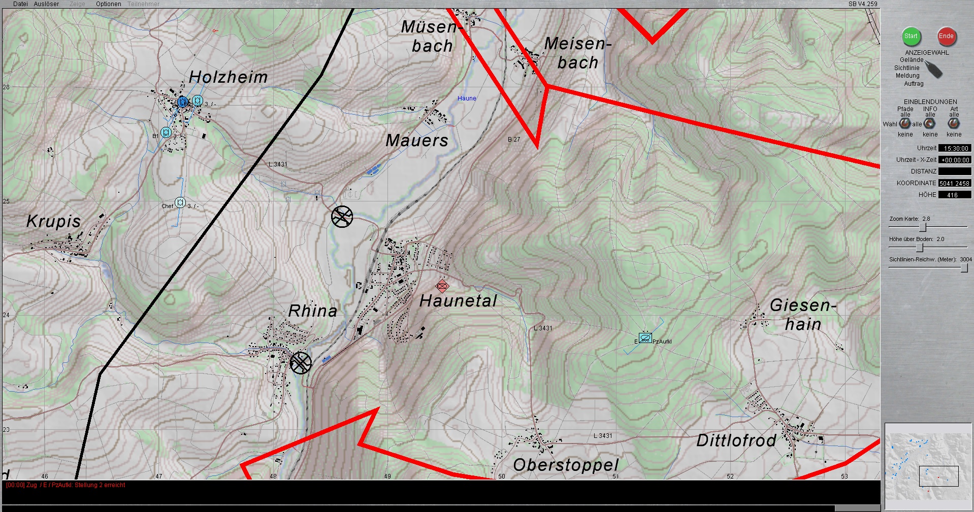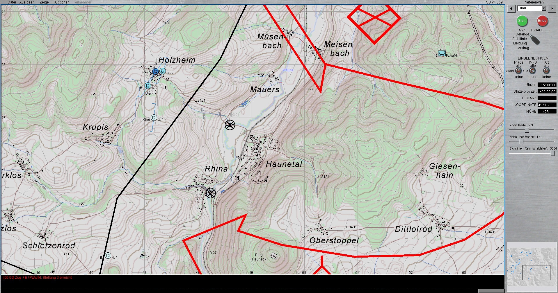 Der BRAVO-Zg und der Spähtrupp müssen jetzt also zusehen, dass sie wieder zur eigenen Trupp am VRV aufschließen, ohne möglichst vom Feind entdeckt zu werden, der ja bereits im vollen Angriff ist.