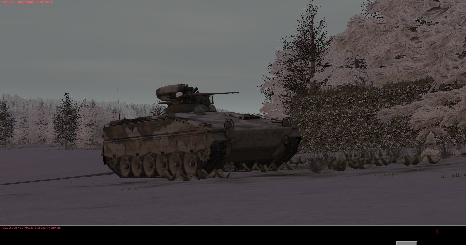 BRAVO ist durch fdl Artilleriefeuer, dass vor 2 Minuten vor ihm herunter kam, in eine gedeckte Position an der Ortschaft ausgewichen und hat auch seit dem keinen visuellen Kontakt mehr zum ALFA-Zg.