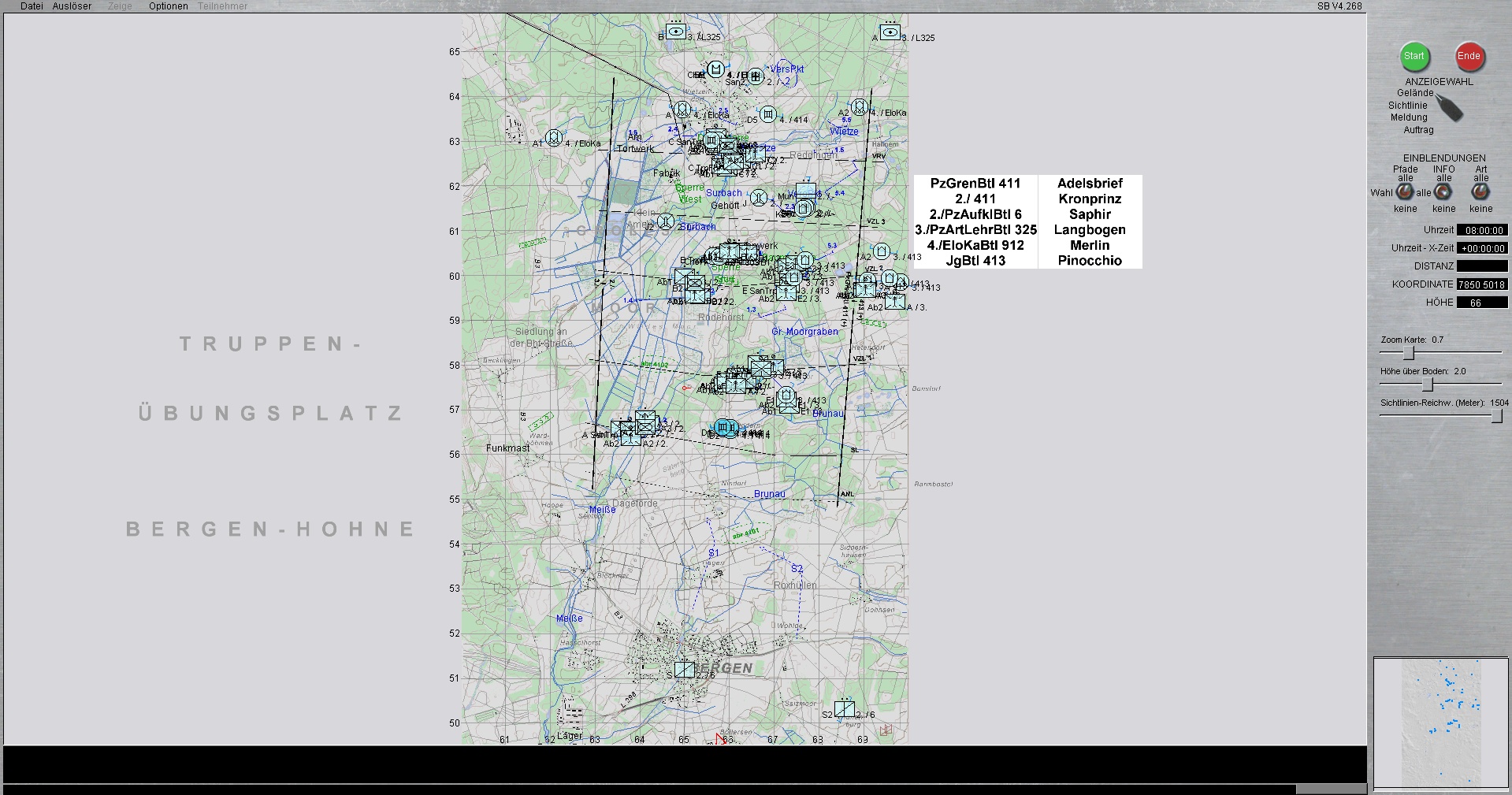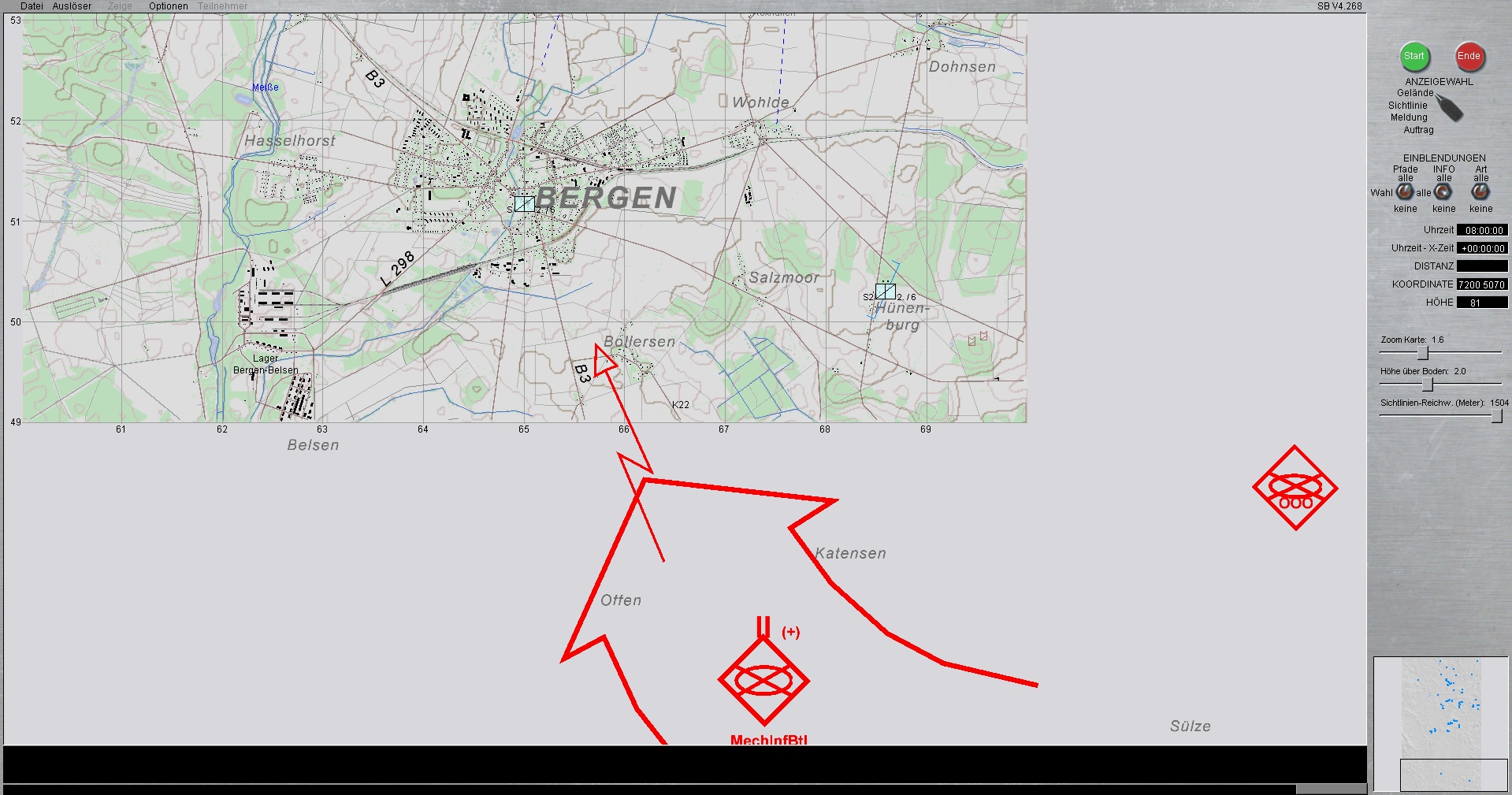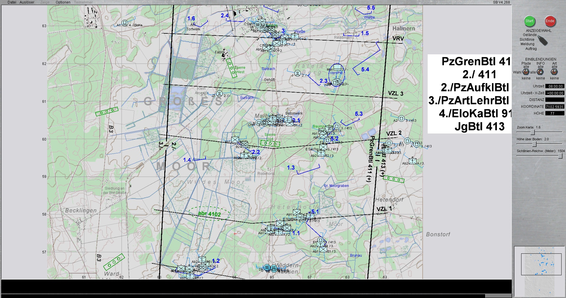Die PzLehrBrig 9 ist mit Schwerpunkt ostwärts MUNSTER eingesetzt. Die PzGrenBrig 41, verstärkt durch das deutsch-niederländische PzBtl 414, sind im Schwerpunkt bei BERGEN eingesetzt.