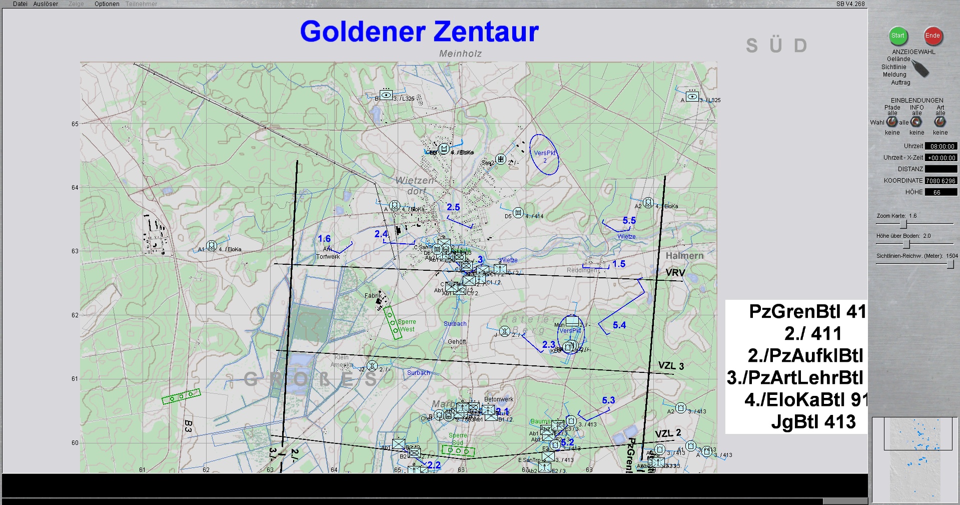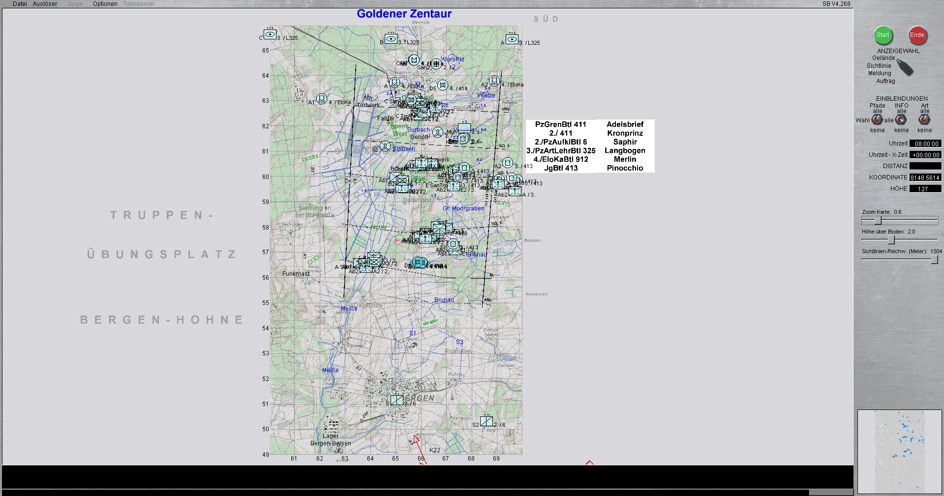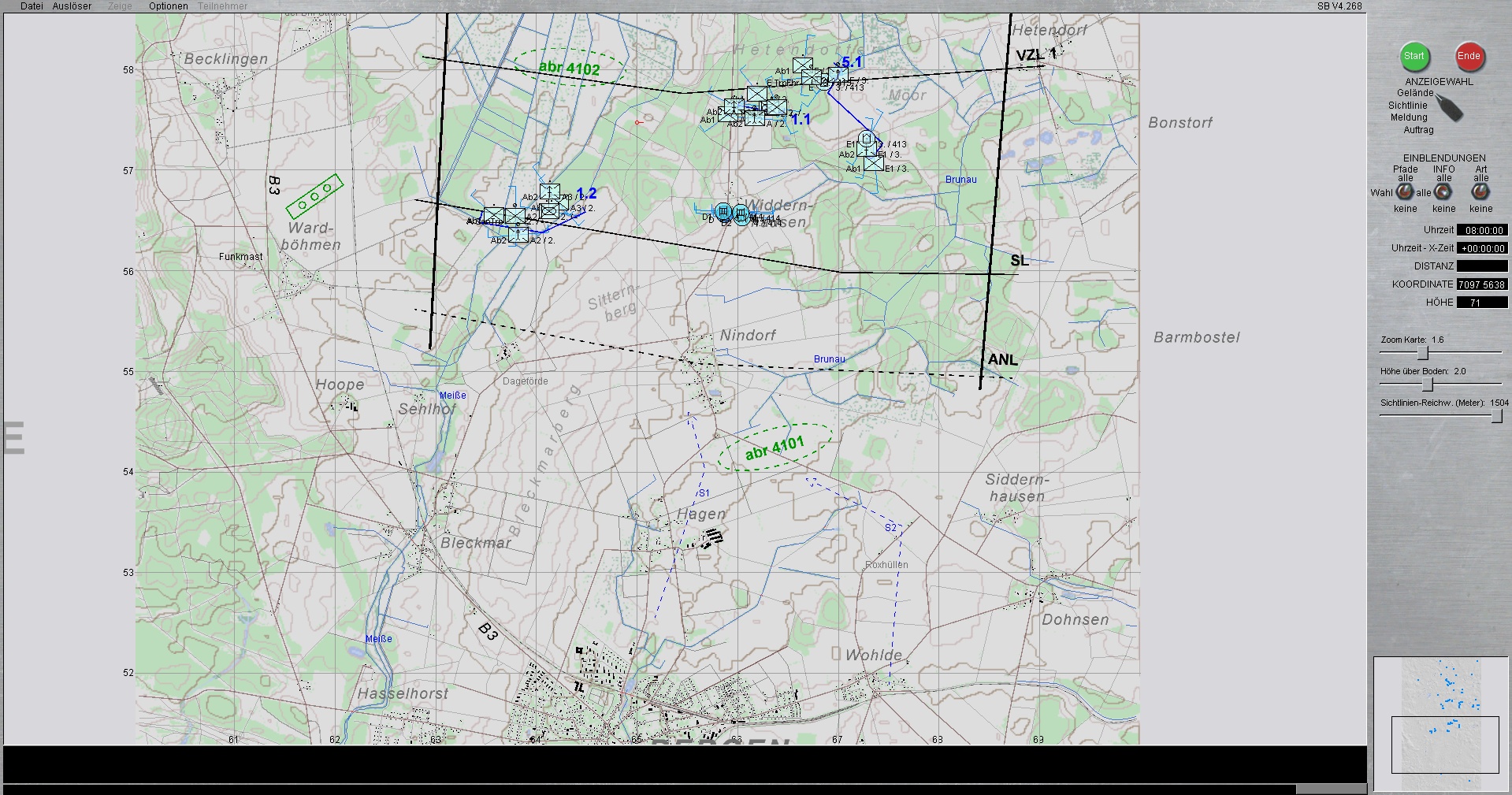 Die PzLehrBrig 9 ist mit Schwerpunkt ostwärts MUNSTER eingesetzt. Die PzGrenBrig 41, verstärkt durch das deutsch-niederländische PzBtl 414, sind im Schwerpunkt bei BERGEN eingesetzt.