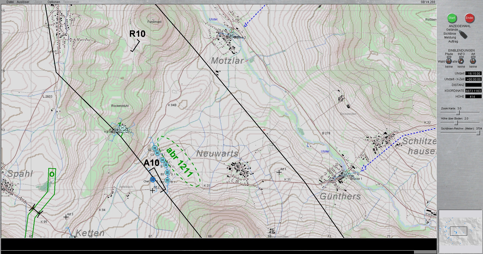 An den 2 einzigen panzertragbaren Brückenübergängen entlang der ULSTER, unseres Gefechtsstreifens, stehen jeweils ein Pioniertrupp, die die beiden Übergänge zur Sprengung vorbereitet haben und Diese erst dann Sprengen, sobald alle eigenen Teile über diese Brücken ausgewichen sind.