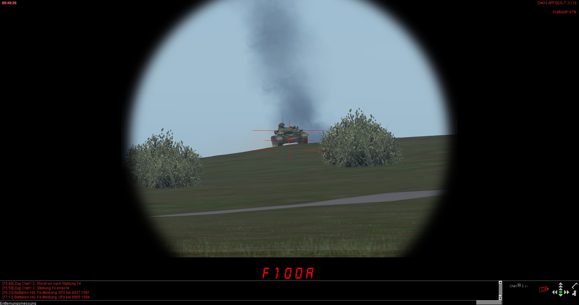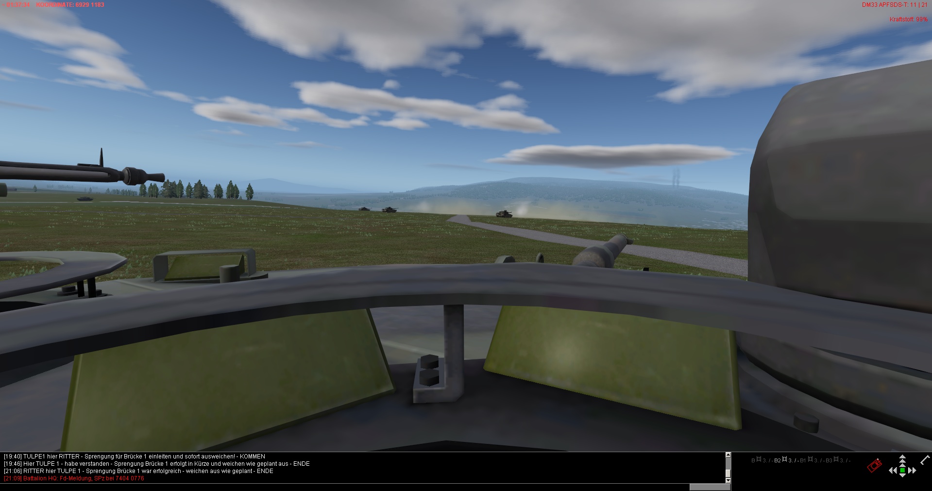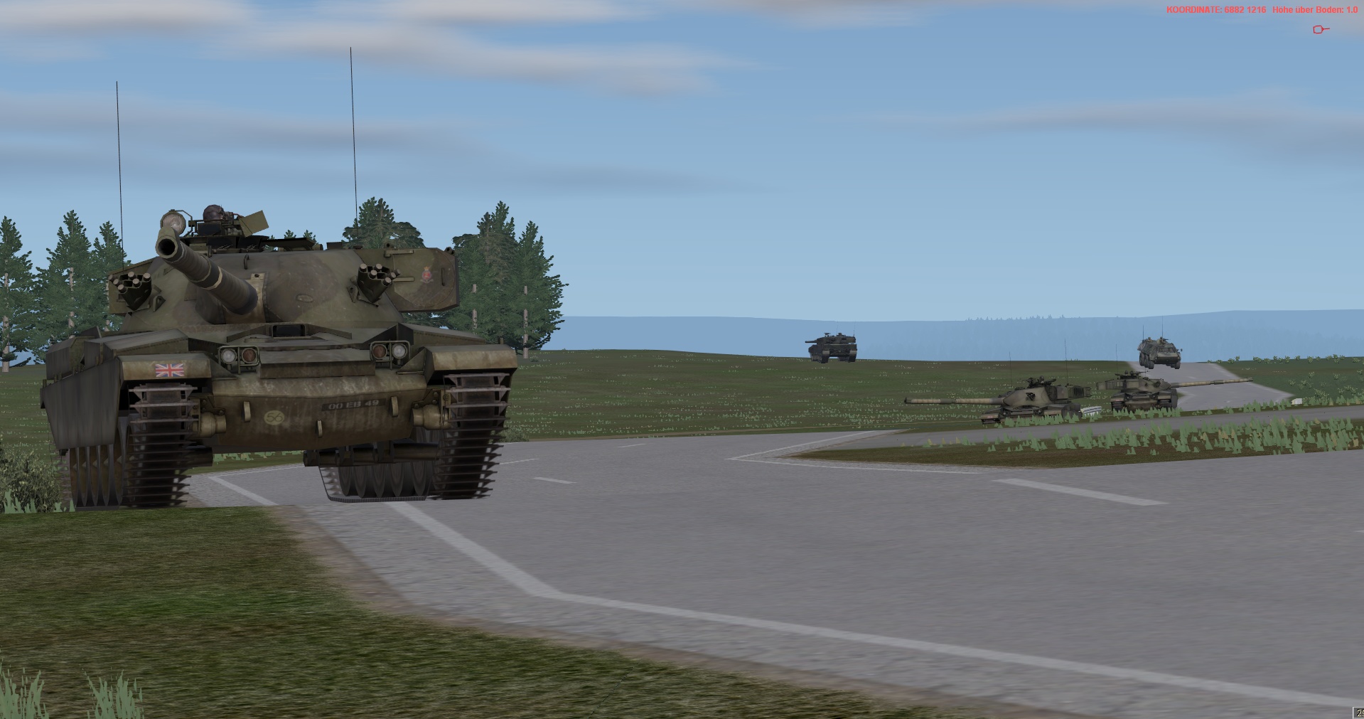 Die 3. PzKp (M48 A2G2) steht derzeit mit einem Panzerzug BRAVO und dem KpChef vor der PL1 ARCHER und hat den Auftrag, den Angriff von ROT so lange wie möglich zu verzögern, sodass die britische PzKp vollständig am VRV eingetroffen ist und anschließend gemeinsam mit dem Bataillon sich zur zeitlich begrenzten Verteidigung einrichtet.