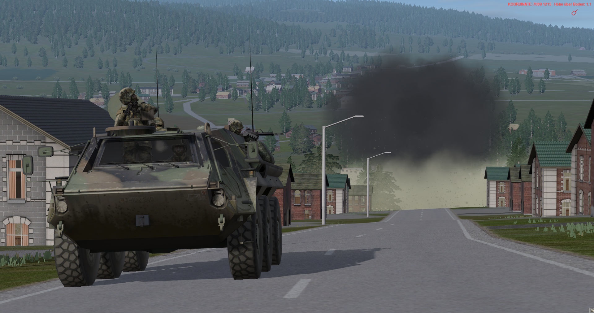 Die 2./121 ist im rechten Teil des Gefechtsstreifens am VRV eingesetzt. Lediglich der einzelne Marder der n.g.Grp sichert vorerst die Baumsperren an der PL2 BEAGLE und weicht dann anschließend zur eigenen Kompanie aus.