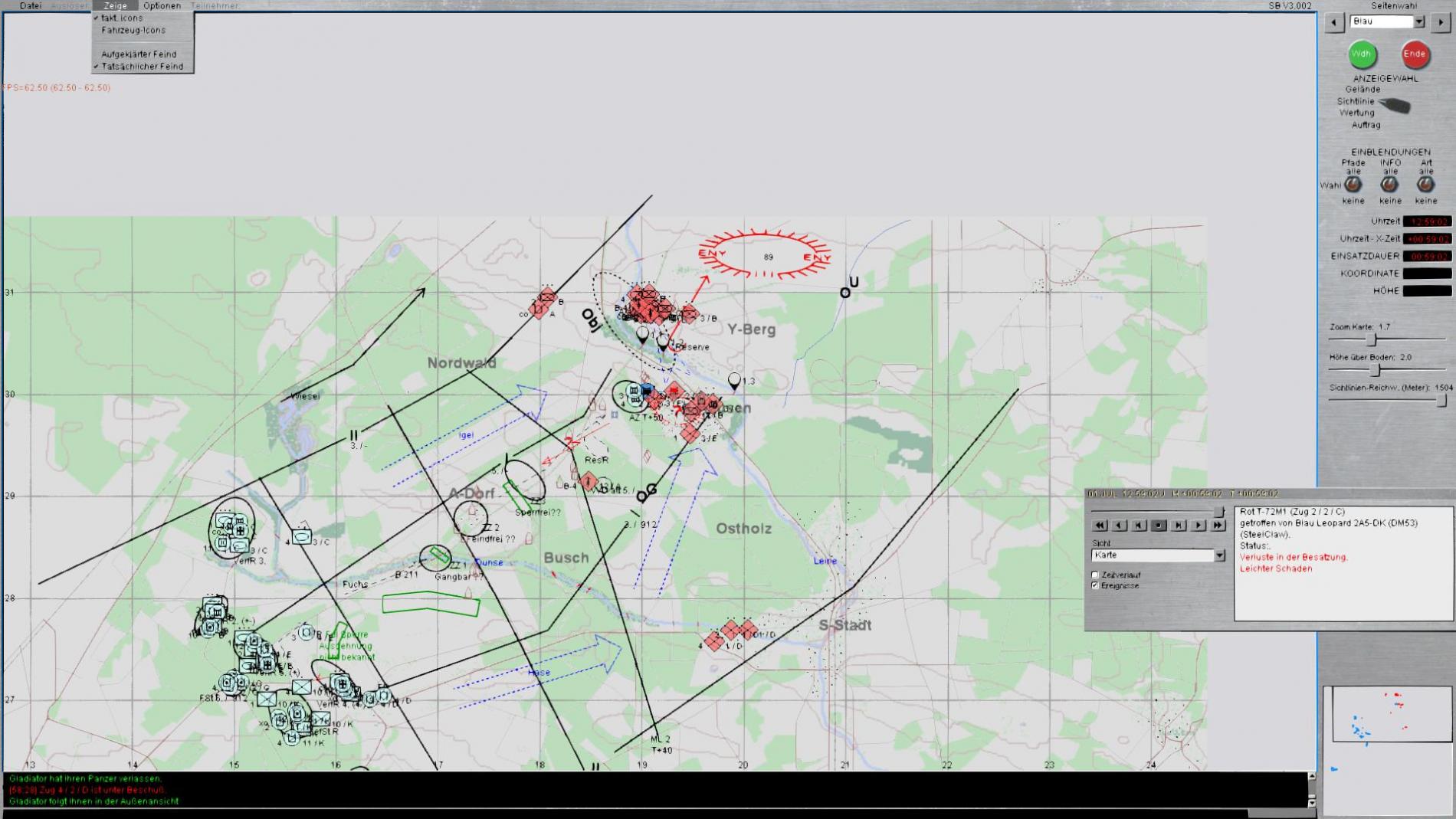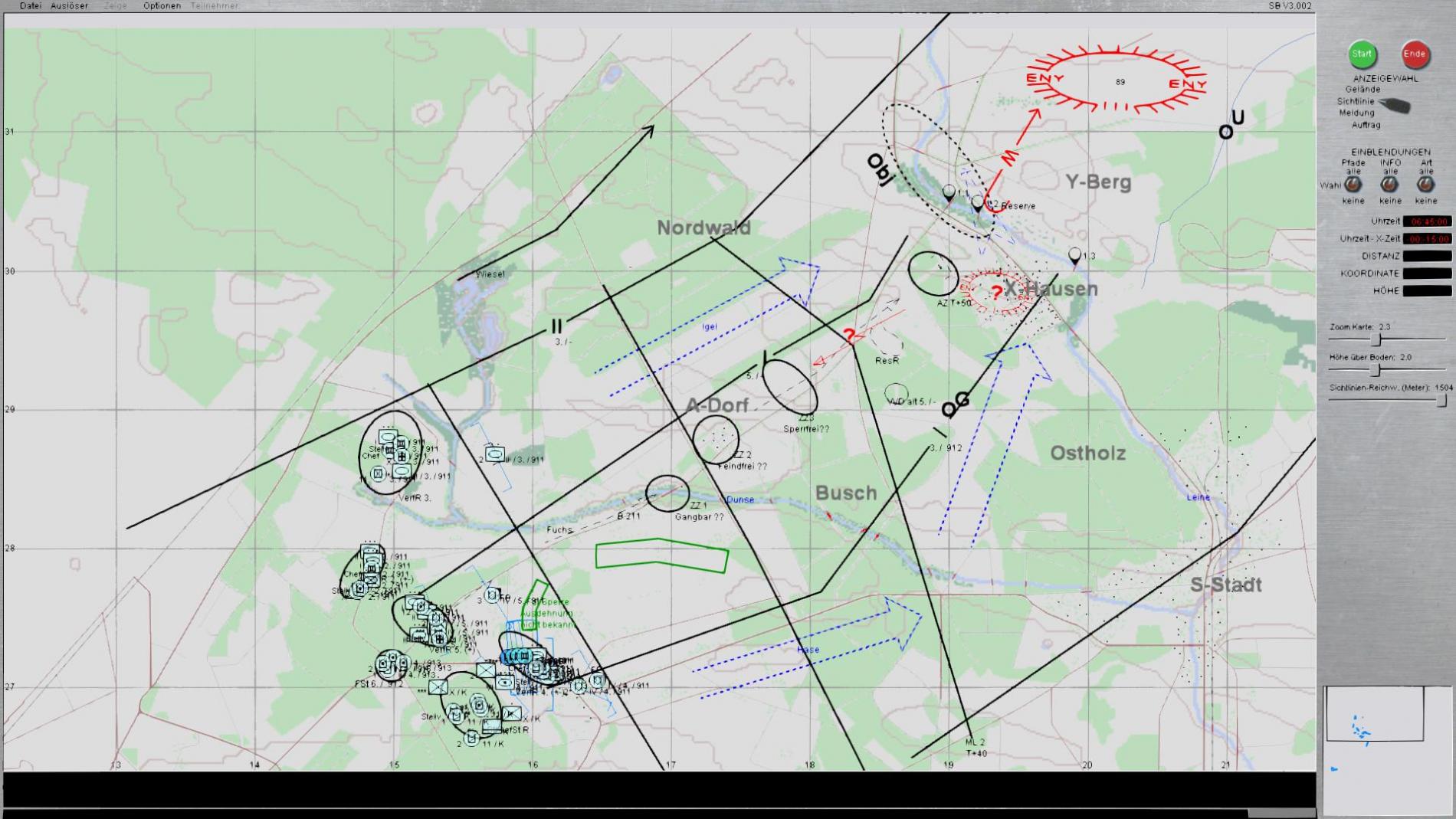 Karte bei Szenario Ende im AAR mit den Feindteilen die noch vorhanden waren.Wertung durch die Sim als Niederlage aber Trotzdem irgendwie doch ein Gefühlter Sieg da mit 3 Teilen im AZ.