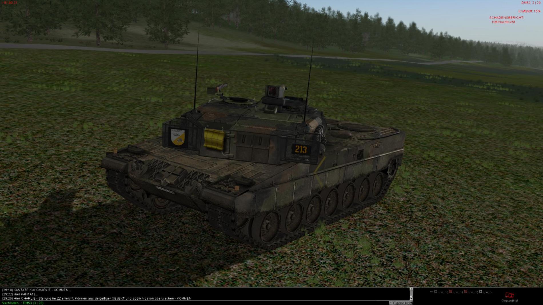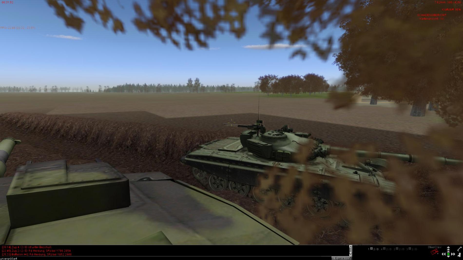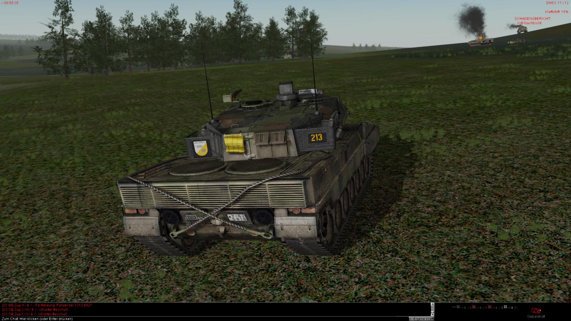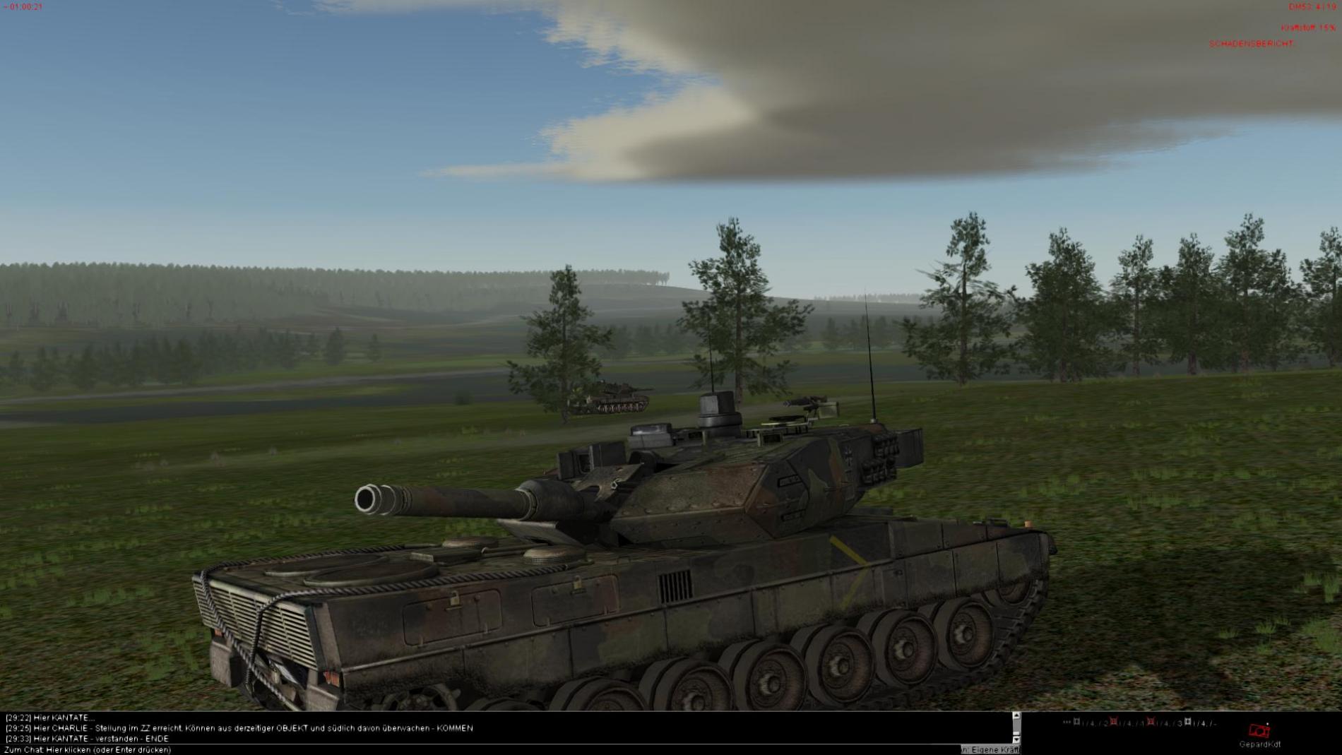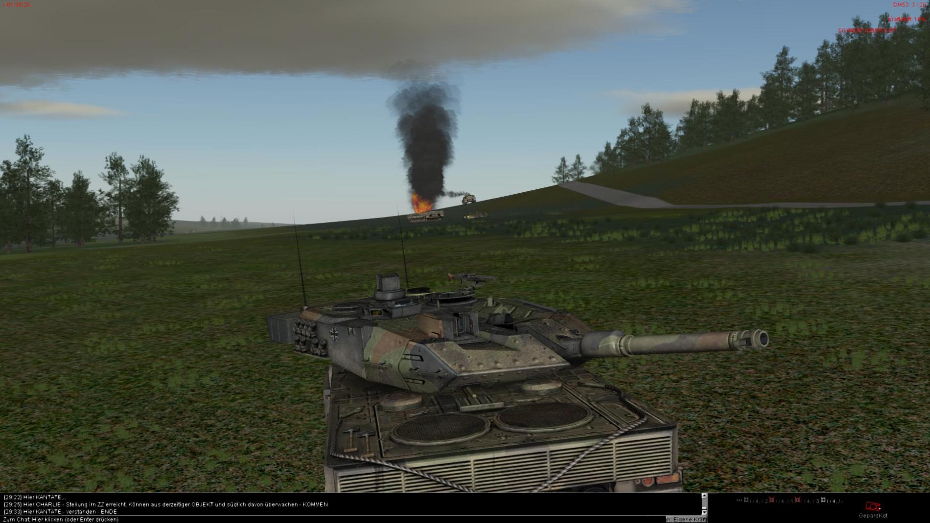 Nachdem der 2 Halbzug dann auch im AZ angekommen war und der 3 T72 aufgeklärt wurde wurde dieser durch den Stellv. ZgFhr vernichtet ein hierbei Aufgeklärter etwas zu Neugierieger Mi24 Hind wurde durch das Feuer von 2 Leopard Panzern Vernichtet.