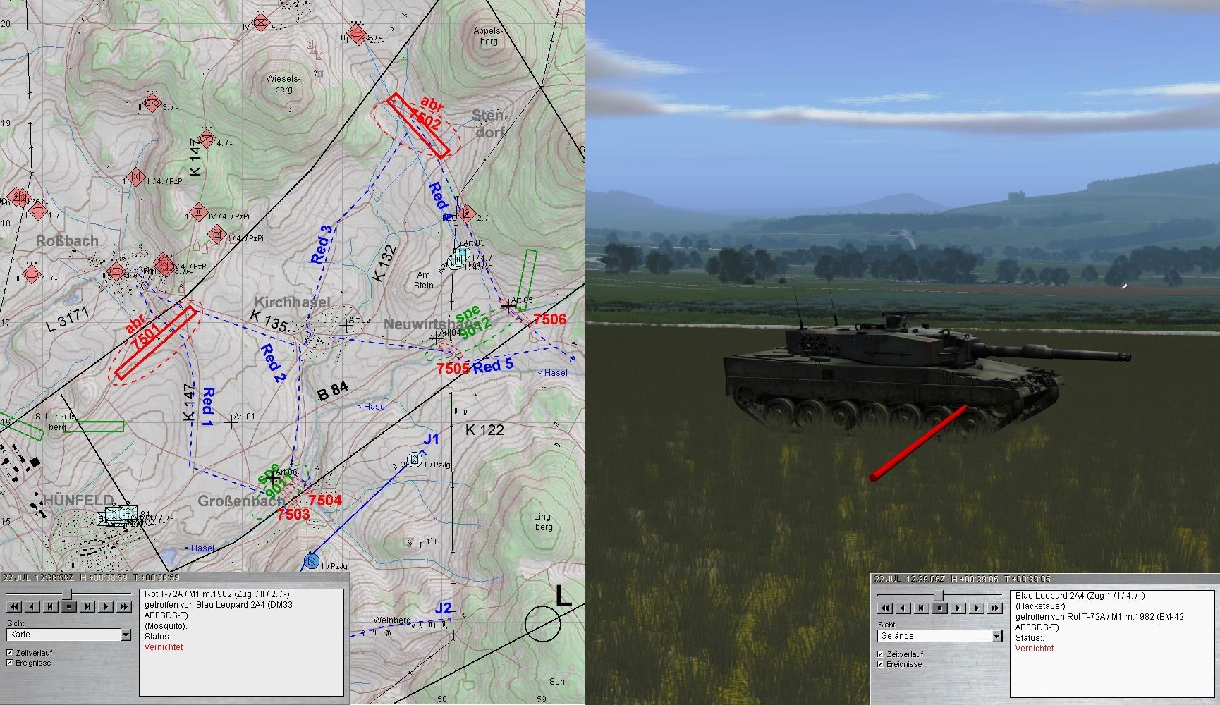 - Gefechtsfeldbeobachtung optimieren - zum Zeitpunkt des Treffers hatte ich die BMP-Kp nw von Kirchhasel am Wickel und habe die Kampfpanzer gar nicht wahrgenommen.