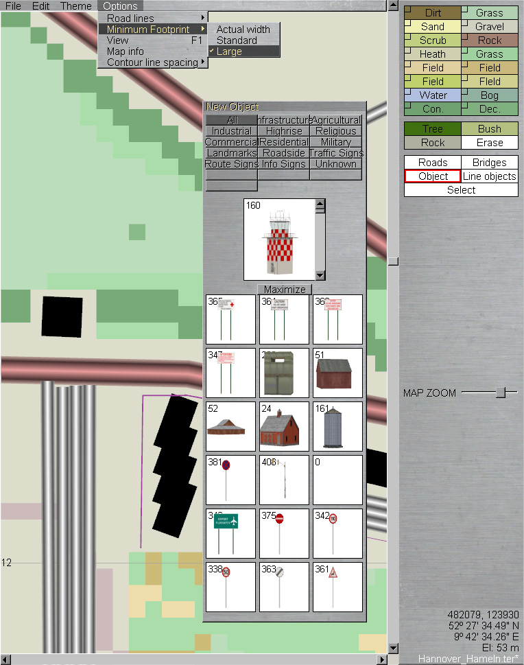 Zweitens gibt's jetzt einen Haufen Verkehrsschilder und ähnliches. Da die Objektbibliothek jetzt deutlich an Umfang zunimmt, haben wir uns entschlossen, dem Benutzer per Palette einen schnelleren Zugriff auch die zuletzt verwendeten Objekte zu geben: