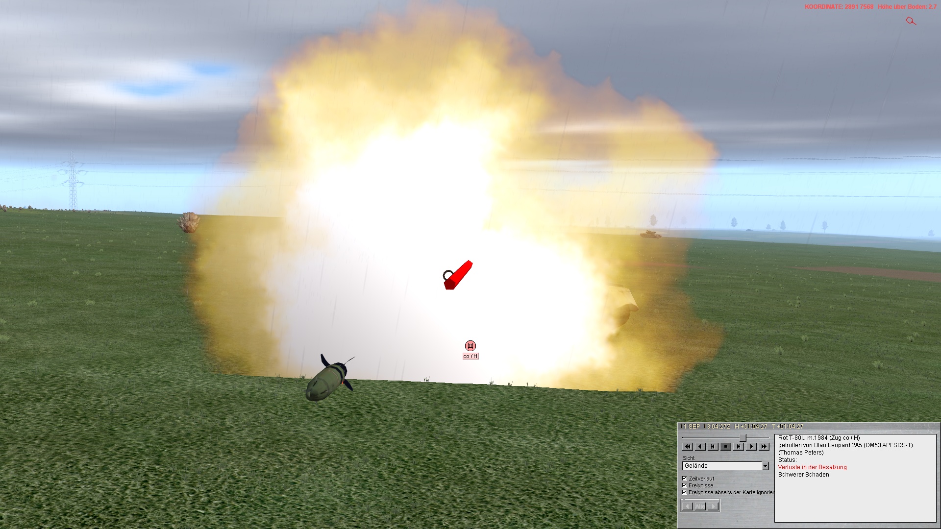 Beim letzten Gefecht habe ich als Halbzugführer einen Artillerietreffer kassiert und meine Aufhängung war beschädigt. Ich konnte allerdings normal weiterfahren.