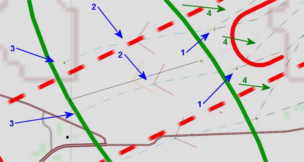 Da ich den Feldposten aber nicht immer an der gleichen Stelle haben möchte (Stichwort: "Jo, kenn ich da steht da und da immer ein Feldposten") setze ich nun den zweiten Feldposten (Erzeuge falls) und kopiere und füge die Pfadkette des ersten Feldposten an (siehe unten). Gegebenenfalls müssen die Pfade dem unterschiedlichen Gelände angepasst werden (Deshalb immer auf genügend Wegpunkte beim erstellen achten !!)