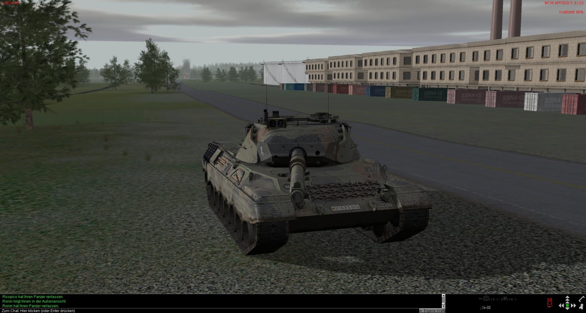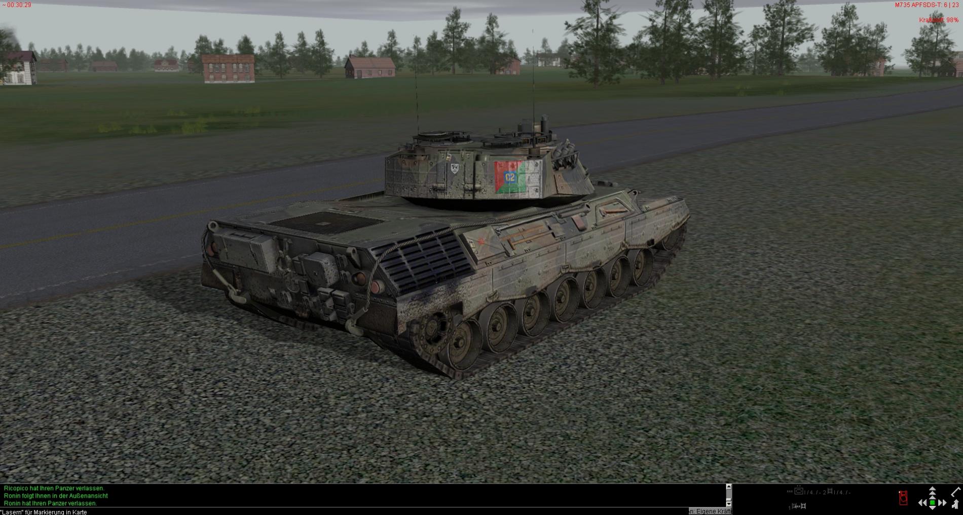 Da mit Masse nicht mehr als 6 bis 8 Teilnehmer mitfahren, ist das Sce. auf diese Anzahl ausgelegt (4 x Leop 2A7 und 2 x Ulan mit LFK Trupp SPIKE).Was wann passiert ist also abhängig von Verhalten der Führer und zu 100% zufällig.
