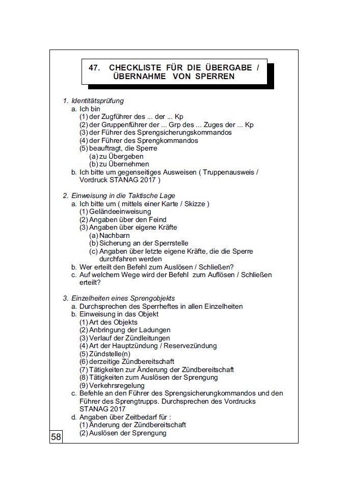 Übernimmt dann die Sprengobjekte 3347 und 3352 vom Wallmeistertrupp und stellt sich darauf ein, auf Befehl, beide oder eine der beiden Übergangsstellen zu sprengen.Für ALLE TEILE BLAU gilt bis auf weiteres für ALLE TRUPPEN ROT in der NEUTRALEN ZONE FEUERVORBEHALT, beachte Sie die R O E !!!