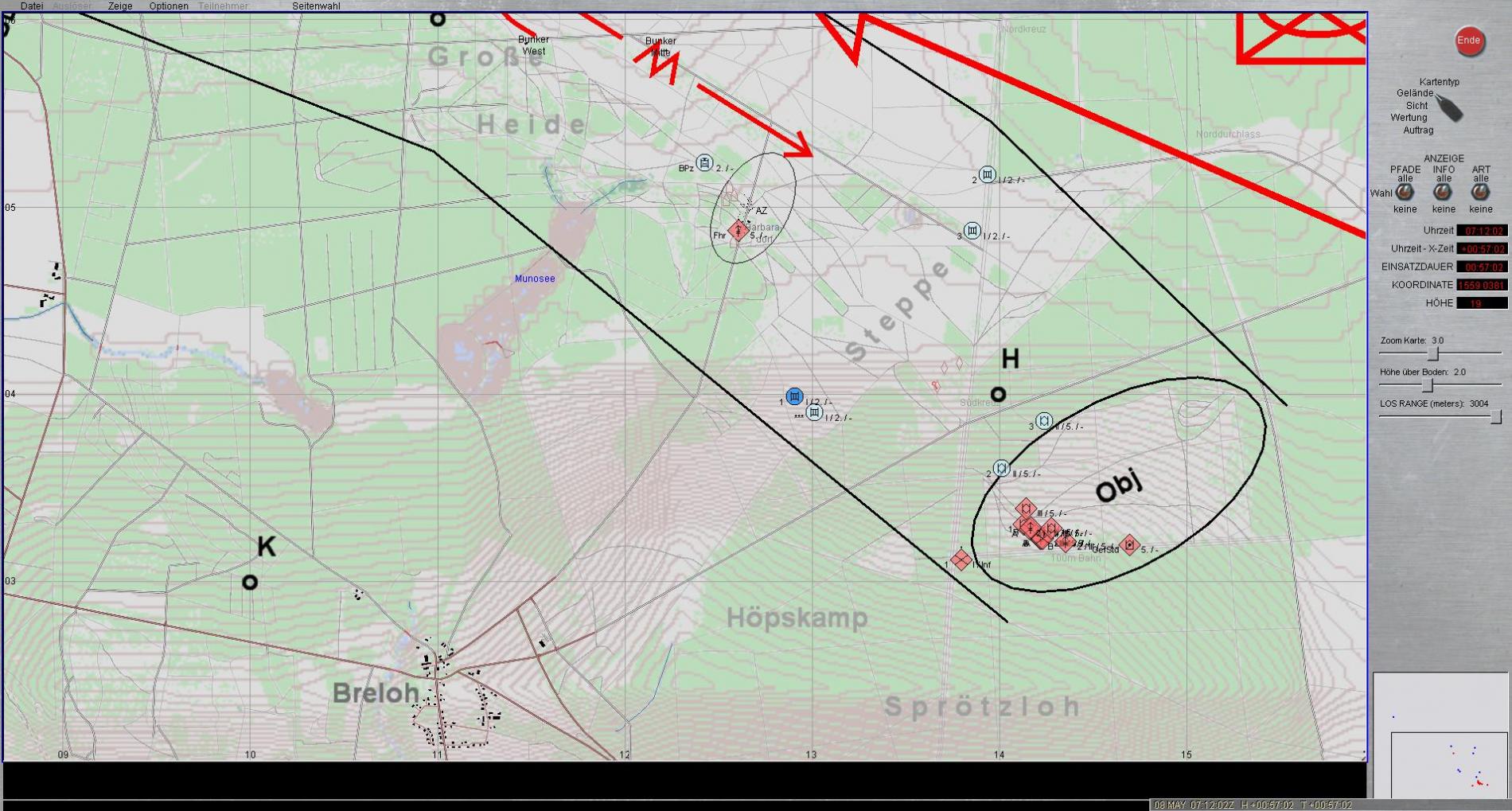 Zweiter PzHZg hat Stellungen westlich NORDDURCHLASS erreicht und überacht NORDDURCHLASS.
