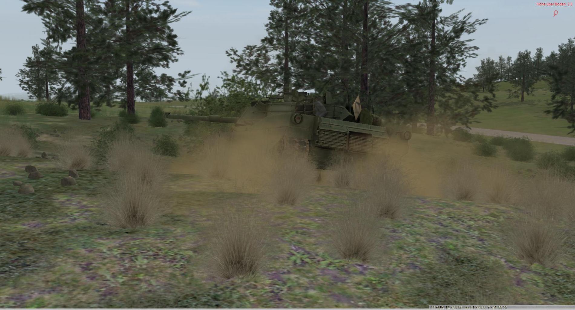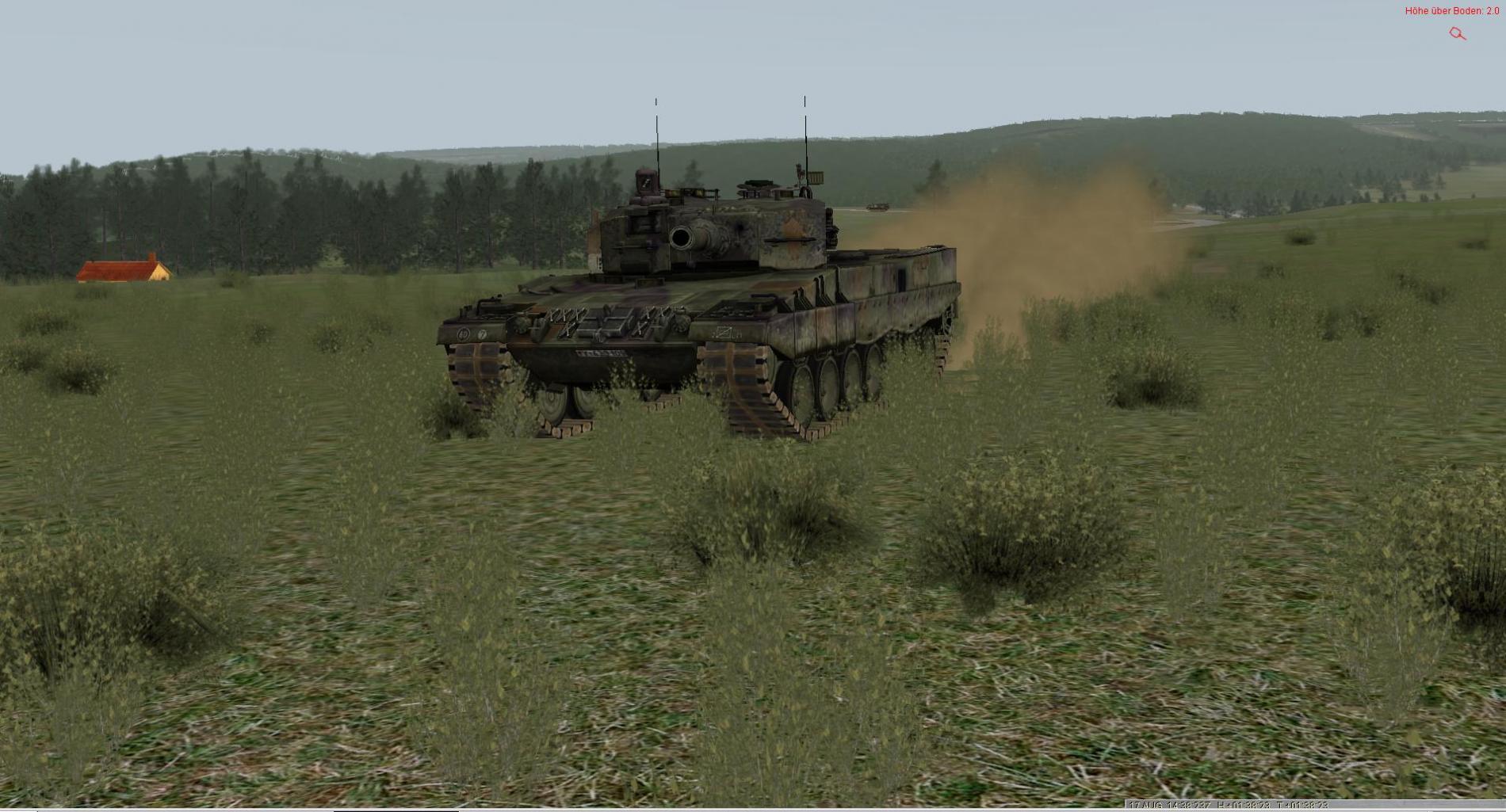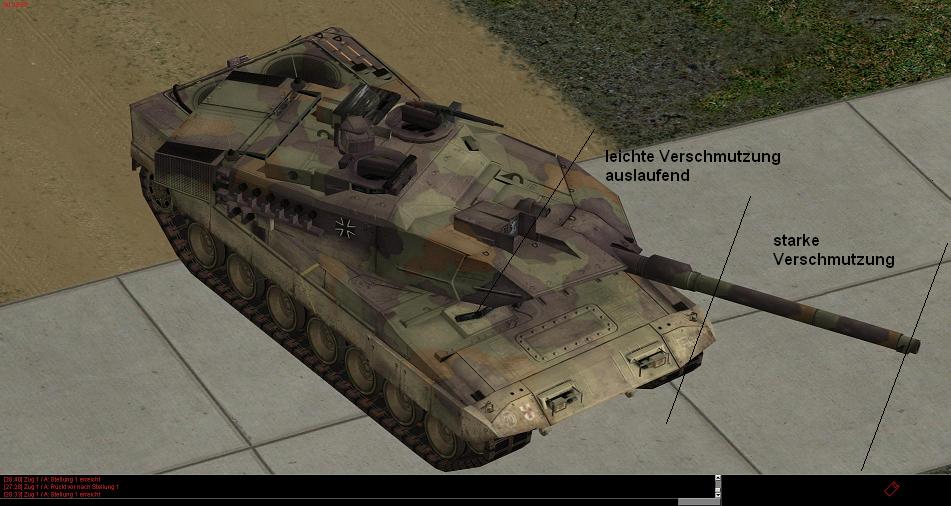 Wie gestern schon gesagt, ist der Leop 2 an sich und der Leop 2A6 im ganz speziellen, eine Dreckskarre ;-=Durch die große mobilität und die sehr schräge Bugplatte, saut sich dieser Panzer meist bis Höhe HZF Ausblick komplett ein. Durch den großen Rohrüberhang beim 2A6 bekommt die BK jedesmal auch einen vollen Schwall ab und hängt bei Rückwärts Fahrten voll im aufgewirbelten Dreck.
