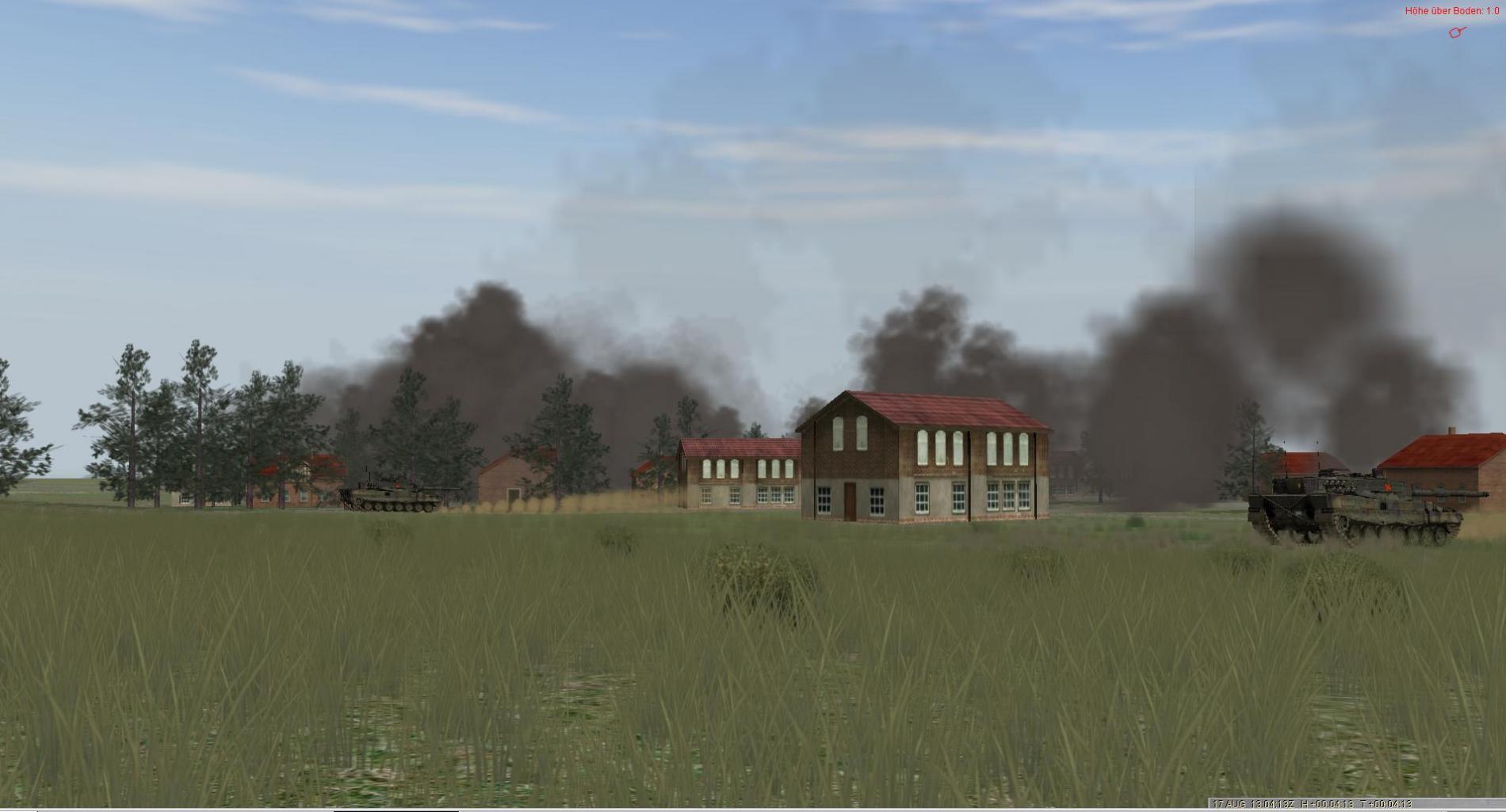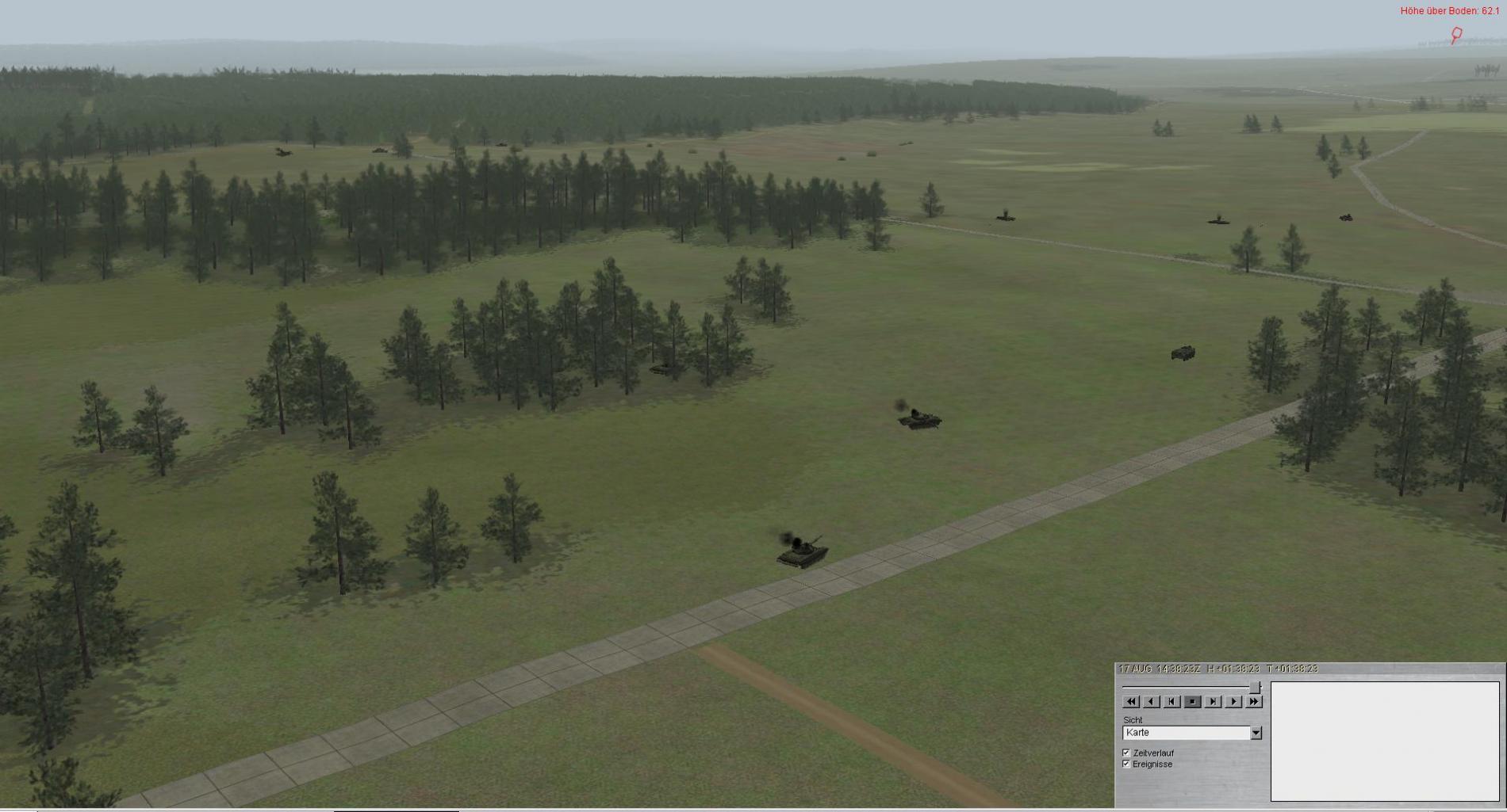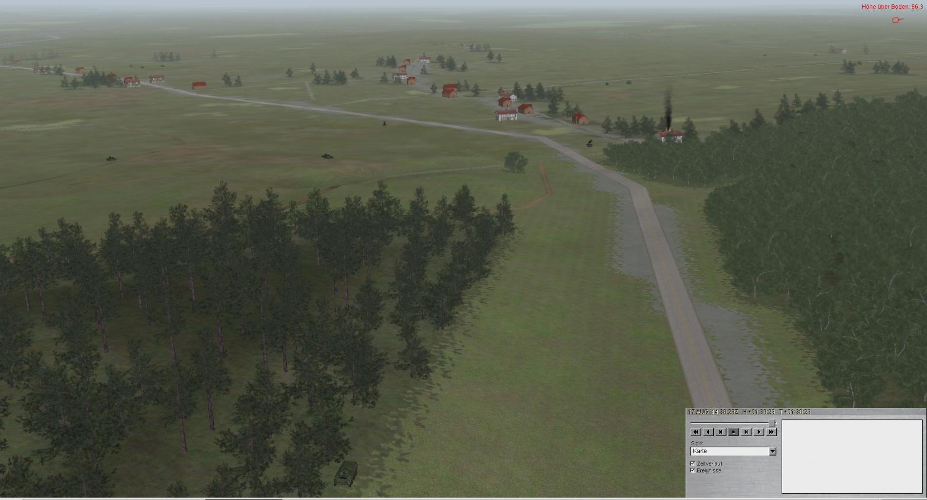 Eigener Panzerzug klärt Fd frühzeitig auf und nimmt den Feuerkampf auf, kann aber aufgrund seiner Stärke von nur 3 Leopard 2 Feind nicht nachhaltig verzögern und wird schnell zum ausweichen gezwungen.