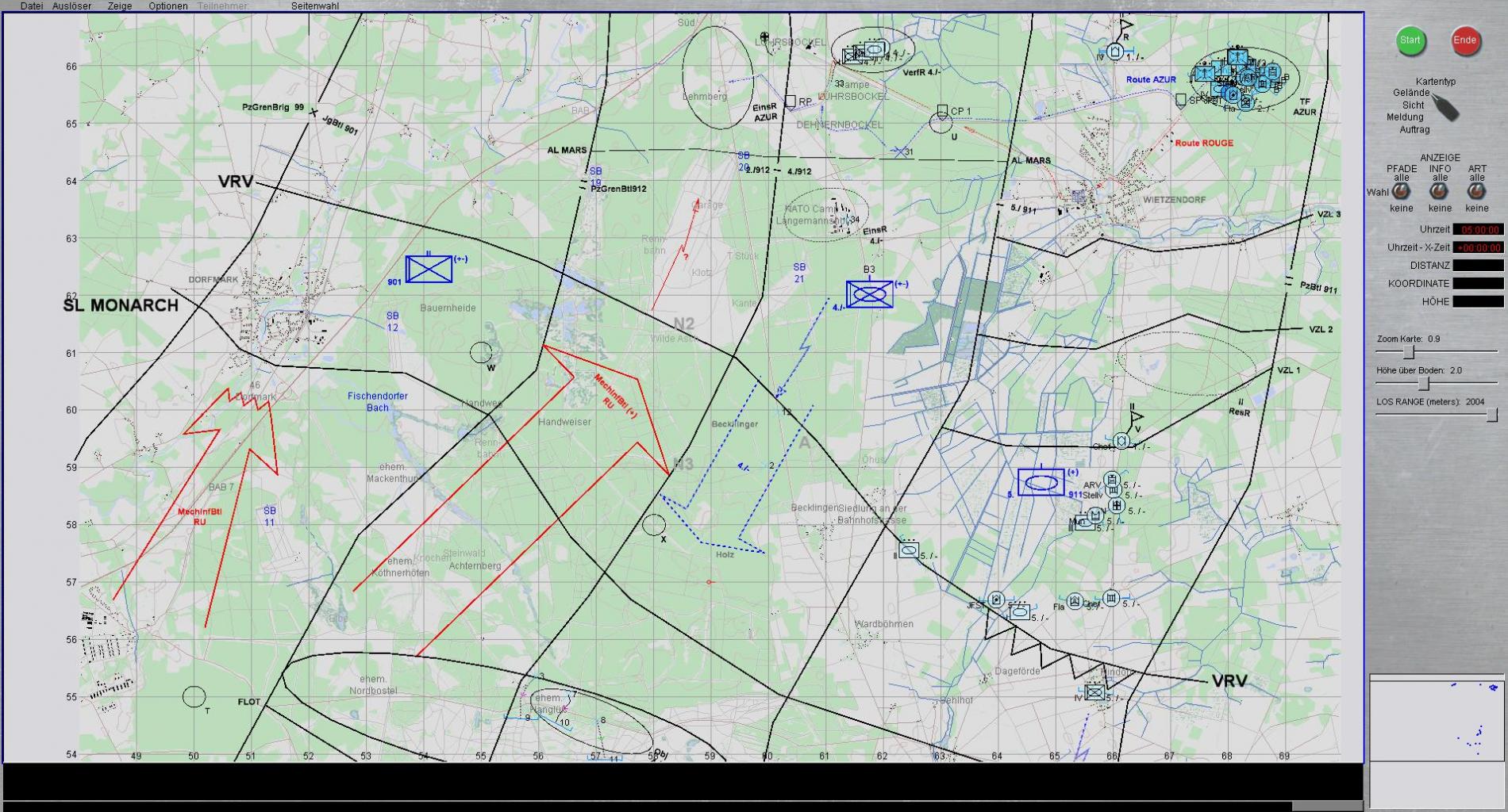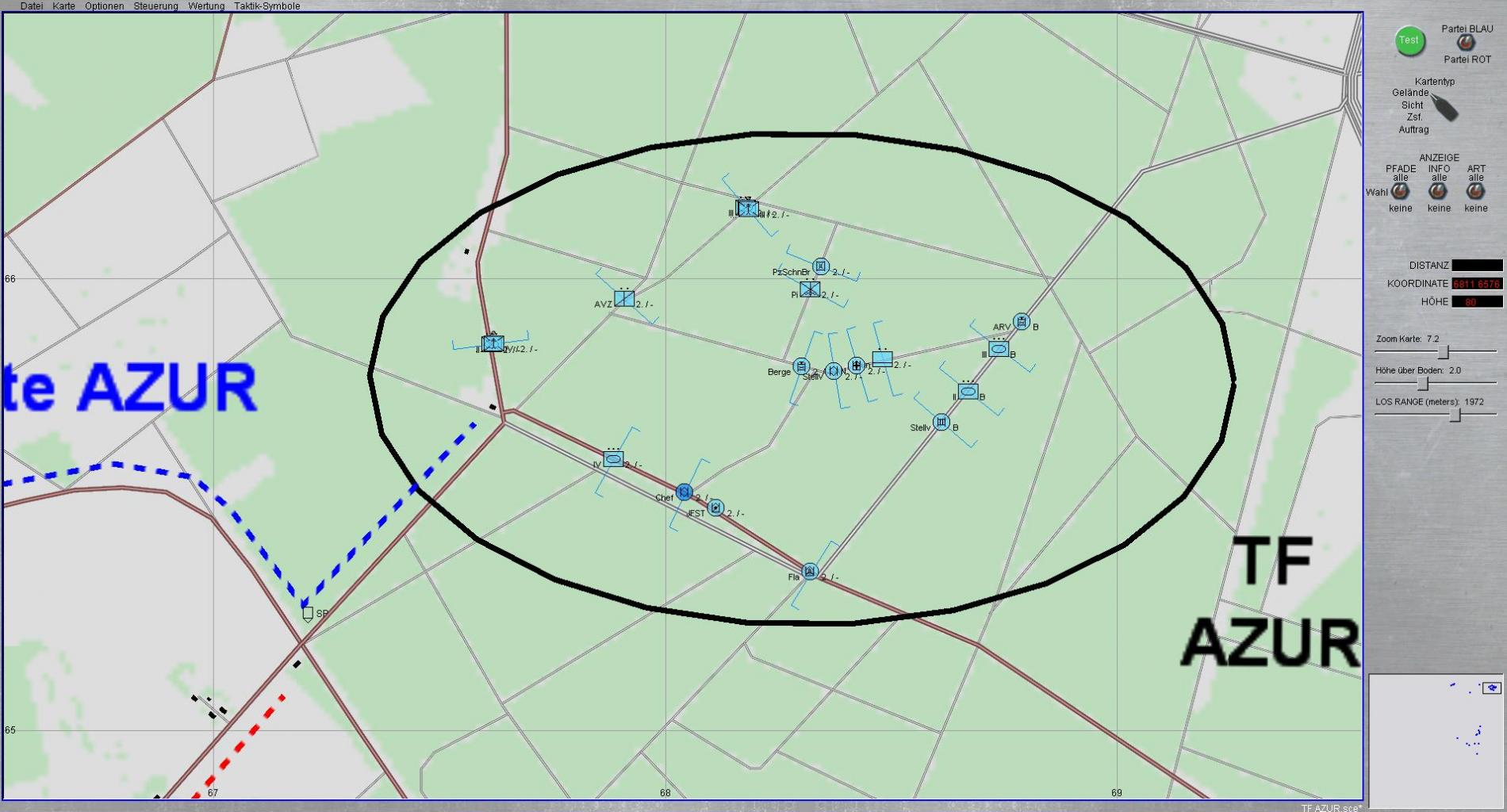 - Meine Absicht ist es, durch entschlossenen Stoss der TF AZUR, hier Schwerpunkt, und der 4./PzGrenBtl 912 bis Verbindungsstrasse FALLINGBOSTEL / BLECKMAR Feind überfallartig zu werfen,