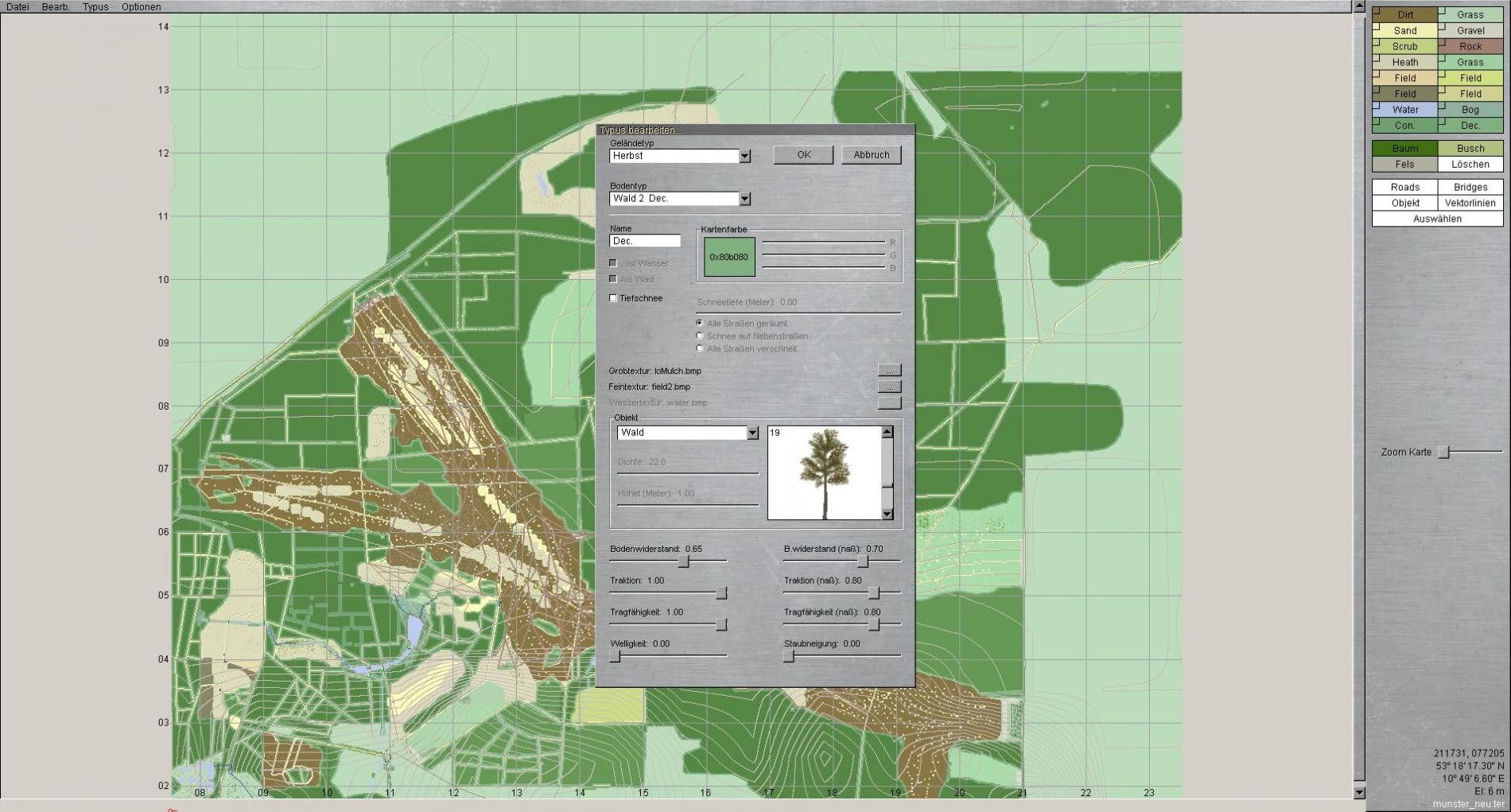 Der "Meister" dieses Sce. hat den Bodenwiderstand in beiden Wäldern so hoch angesetzt, dass KEIN Fahrzeug diesen passieren kann.
