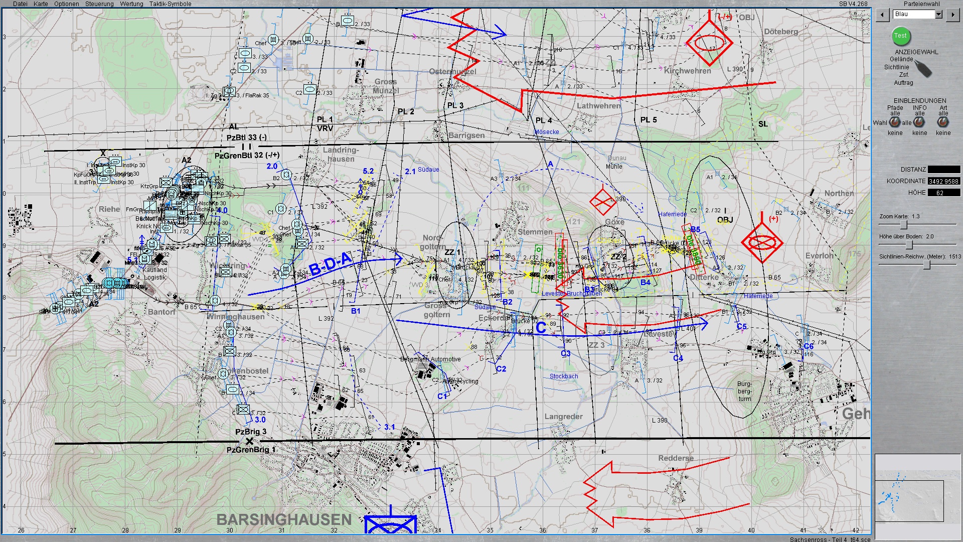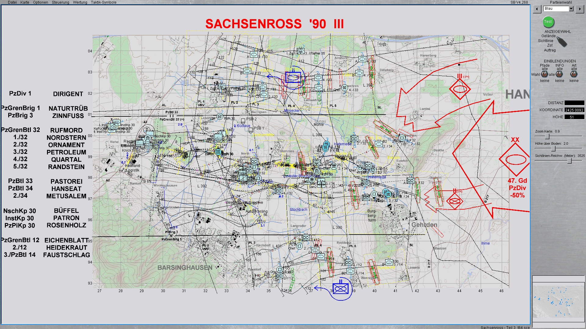 Hier mal so nebenbei ein Beispiel, wie meine Szenarien bei BLAU (im Editor) aussehen können, die idR so zwischen 100-250 Pfade und Stellungszeichen haben. ROT hat dementsprechend immer 3-5x mehr Pfade etc.