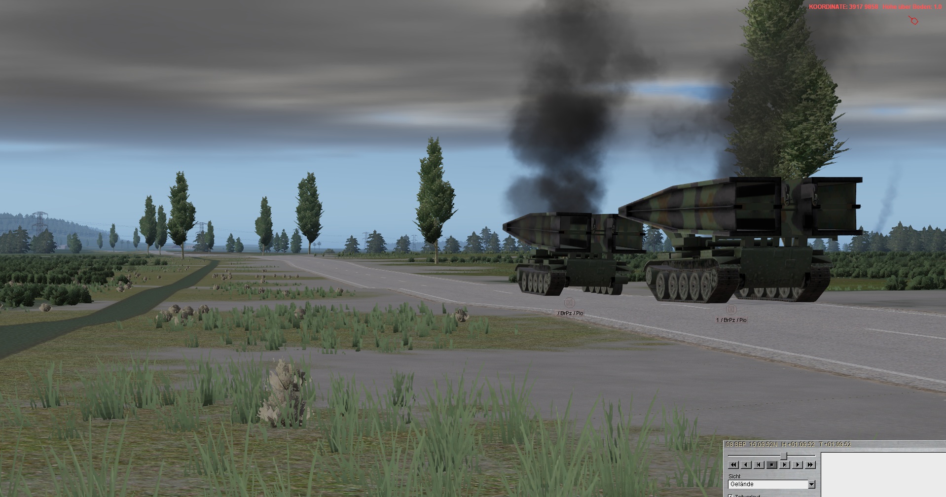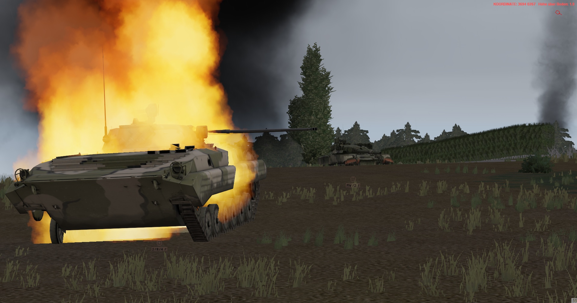 A1 wurde später in einer anderen Stellung flankierend von einem T72 (Pio) per Erstschusstreffer vernichtet.