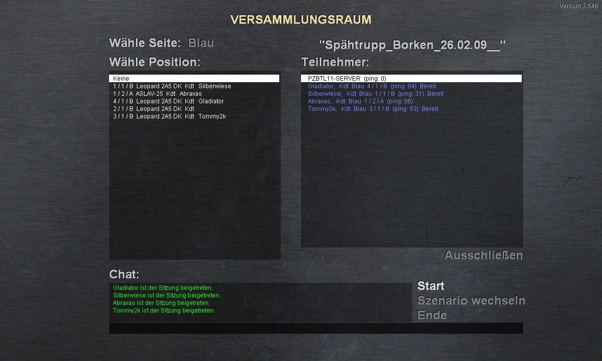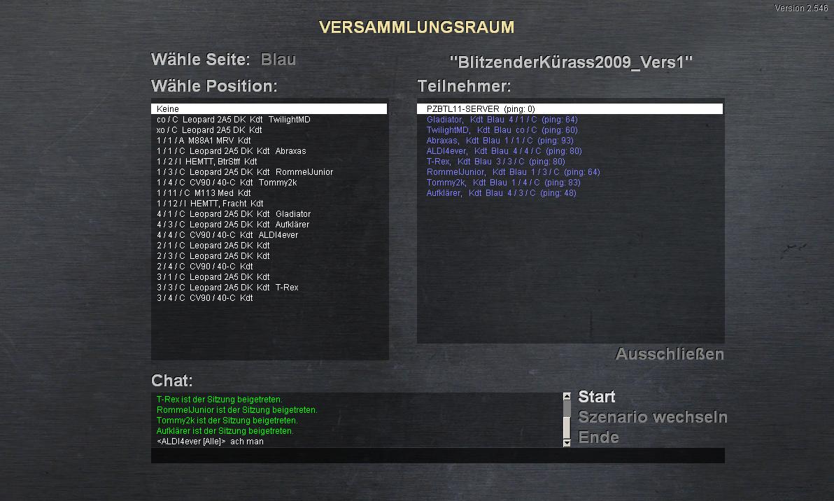 Rot: BMP-2, BRDM-2, (entweder eine Kompanie ->T80 o. T72M1 o. T72M4)Zeit: 90min