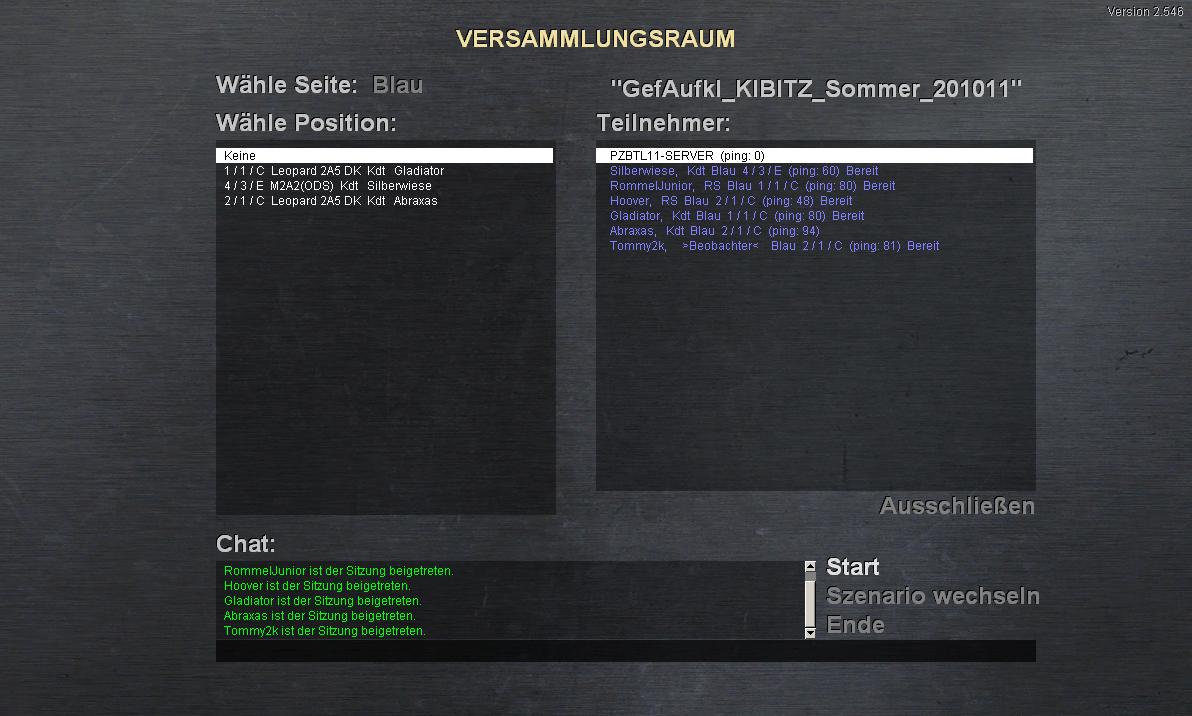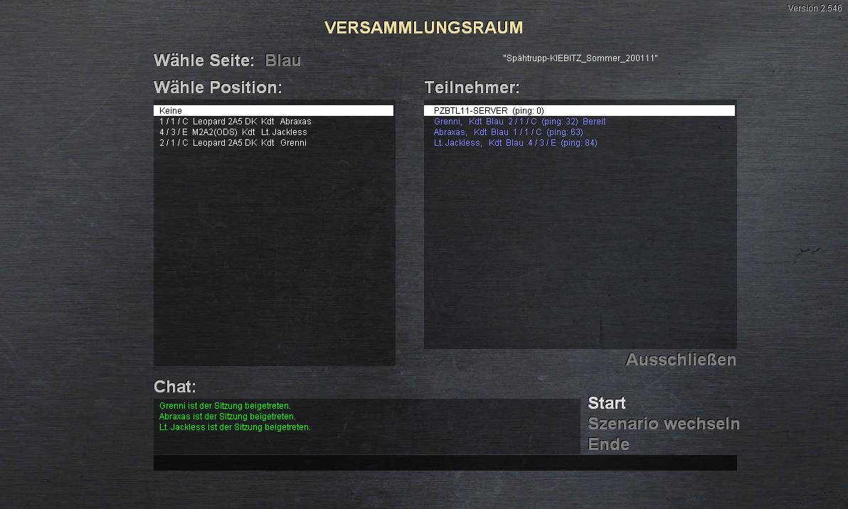 Nach kleineren Justierungen (Dauer jetzt 70 Min + 10%-Zufall) ist das Szenario unter dem Namen "Spähtrupp_KIEBITZ_Sommer_200111" abgelegt unter Coop/Zug. Viel Spaß nach dem Motto: Viel sehen ohne selbst gesehen zu werden!